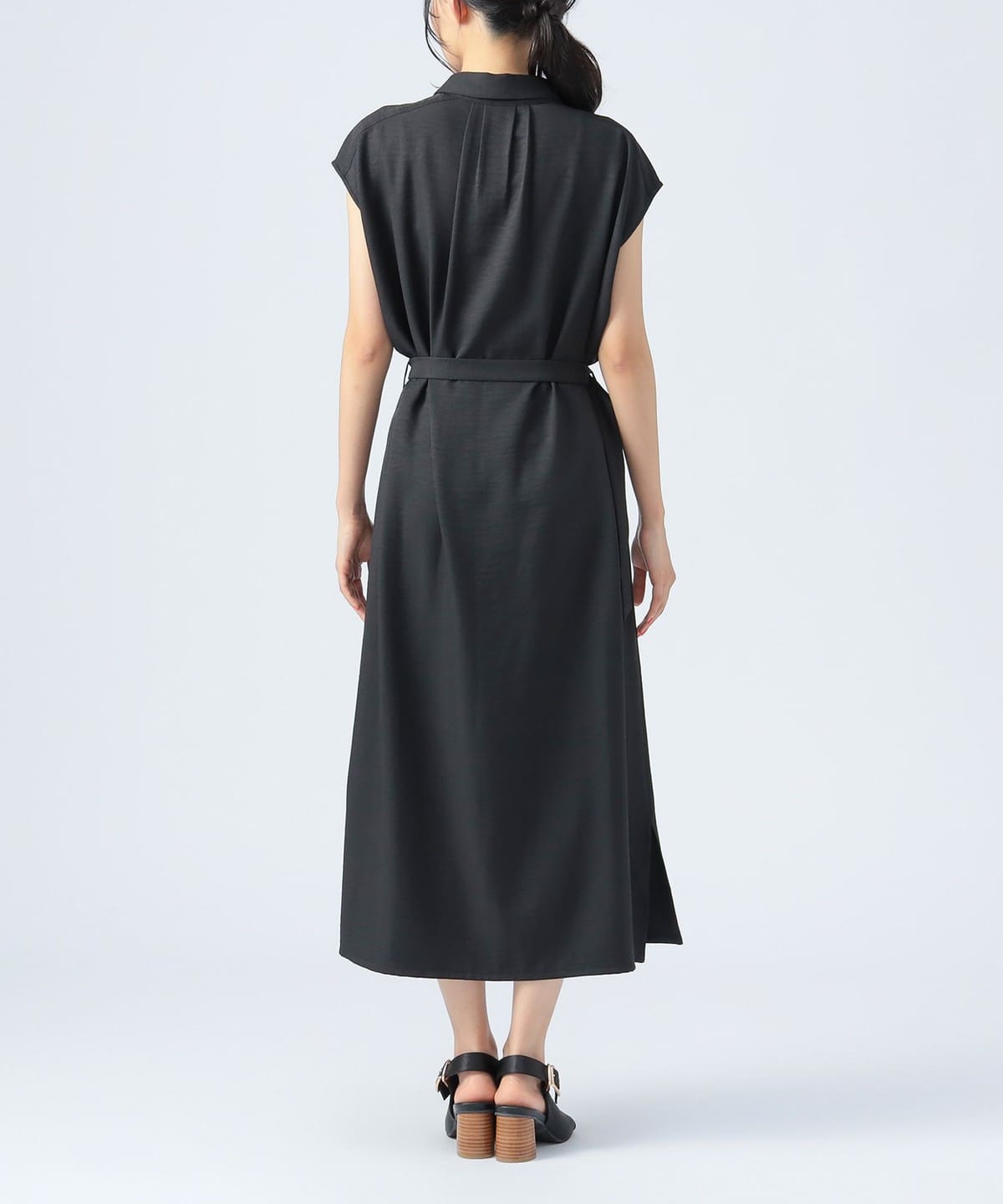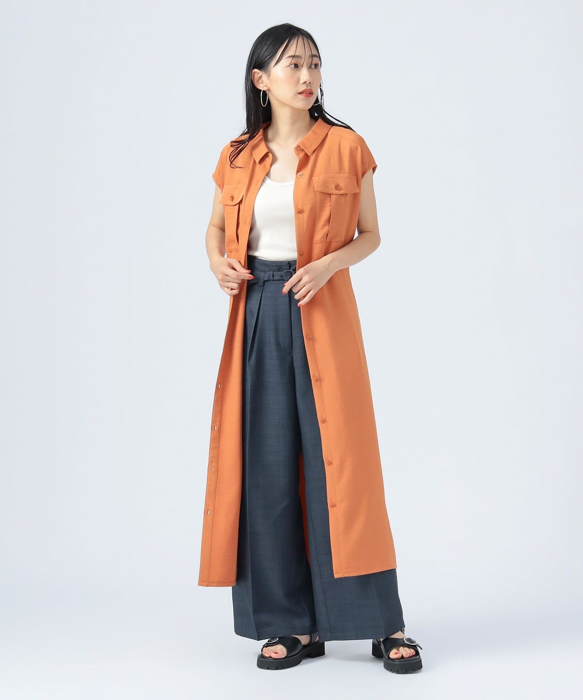 사파리 분위기의 롱 셔츠 원피스.