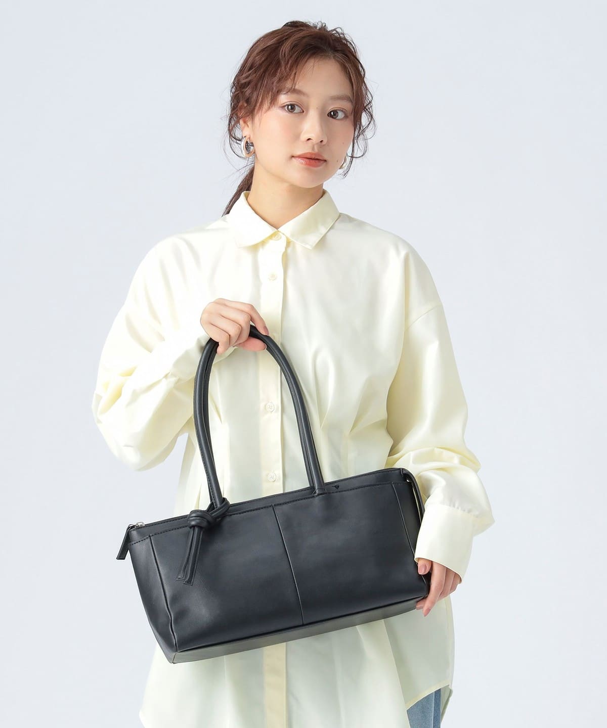가로로 길고 슬림한 스퀘어 디자인의 토트백입니다.