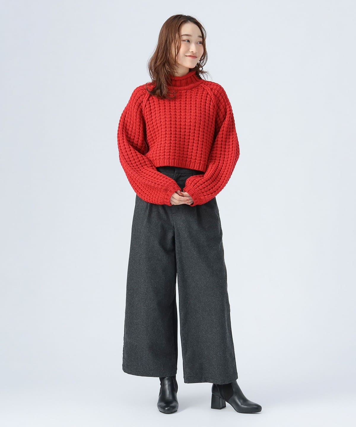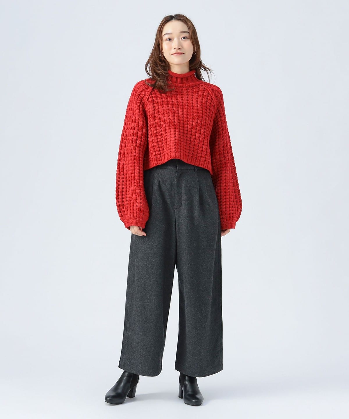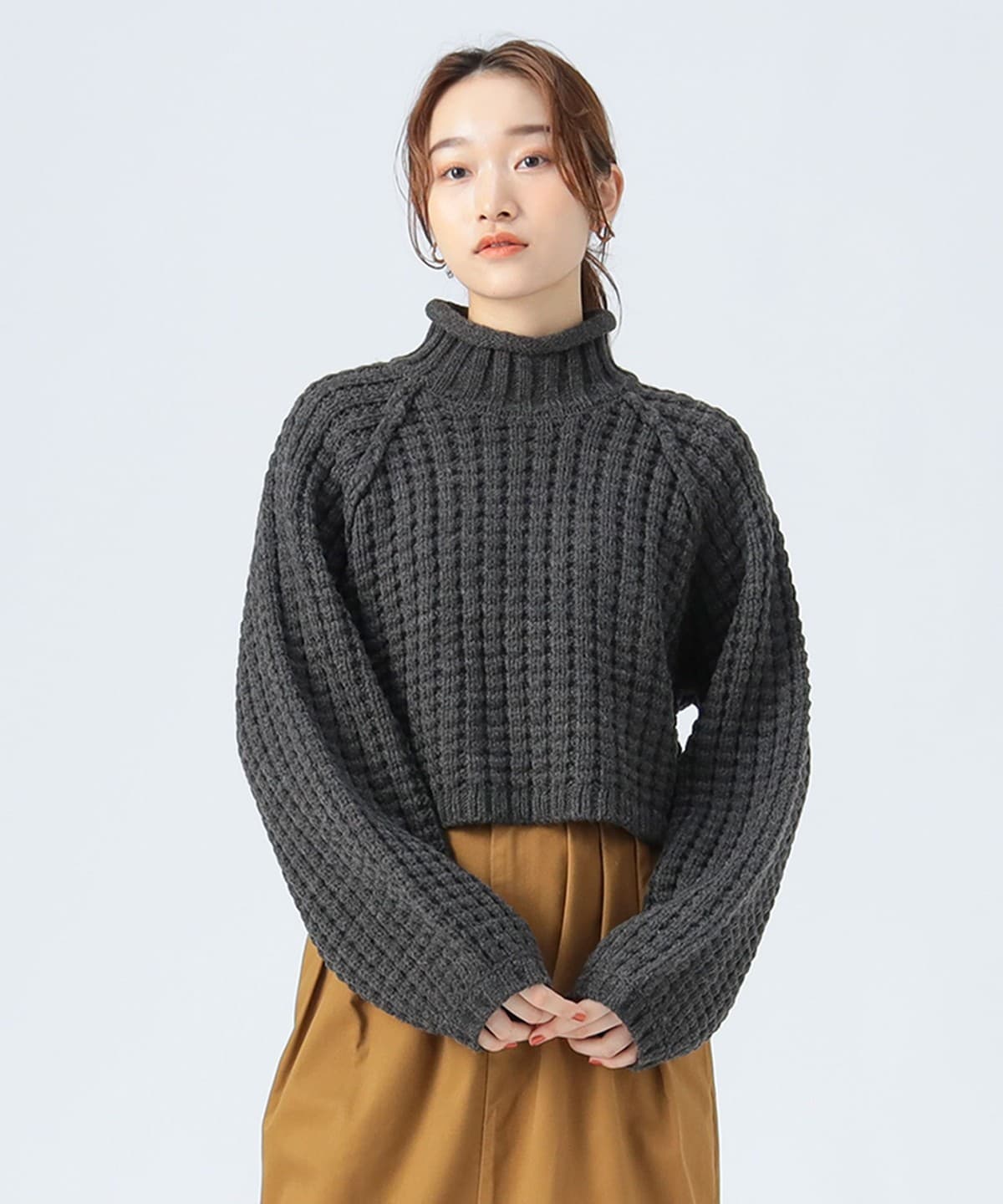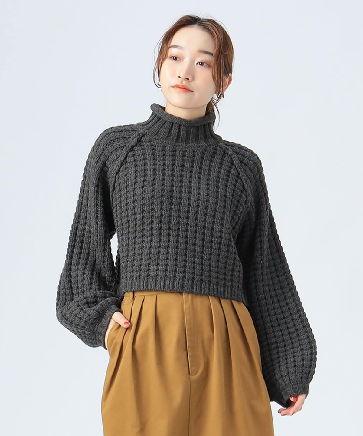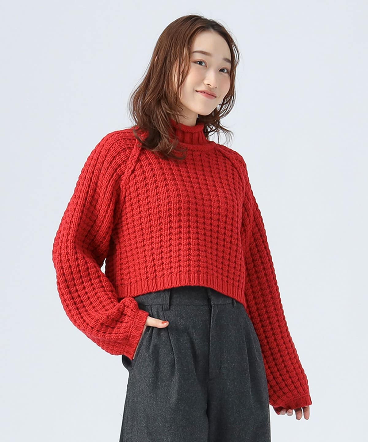 빔즈 하트 여성 와플 뜨개질 크롭 니트