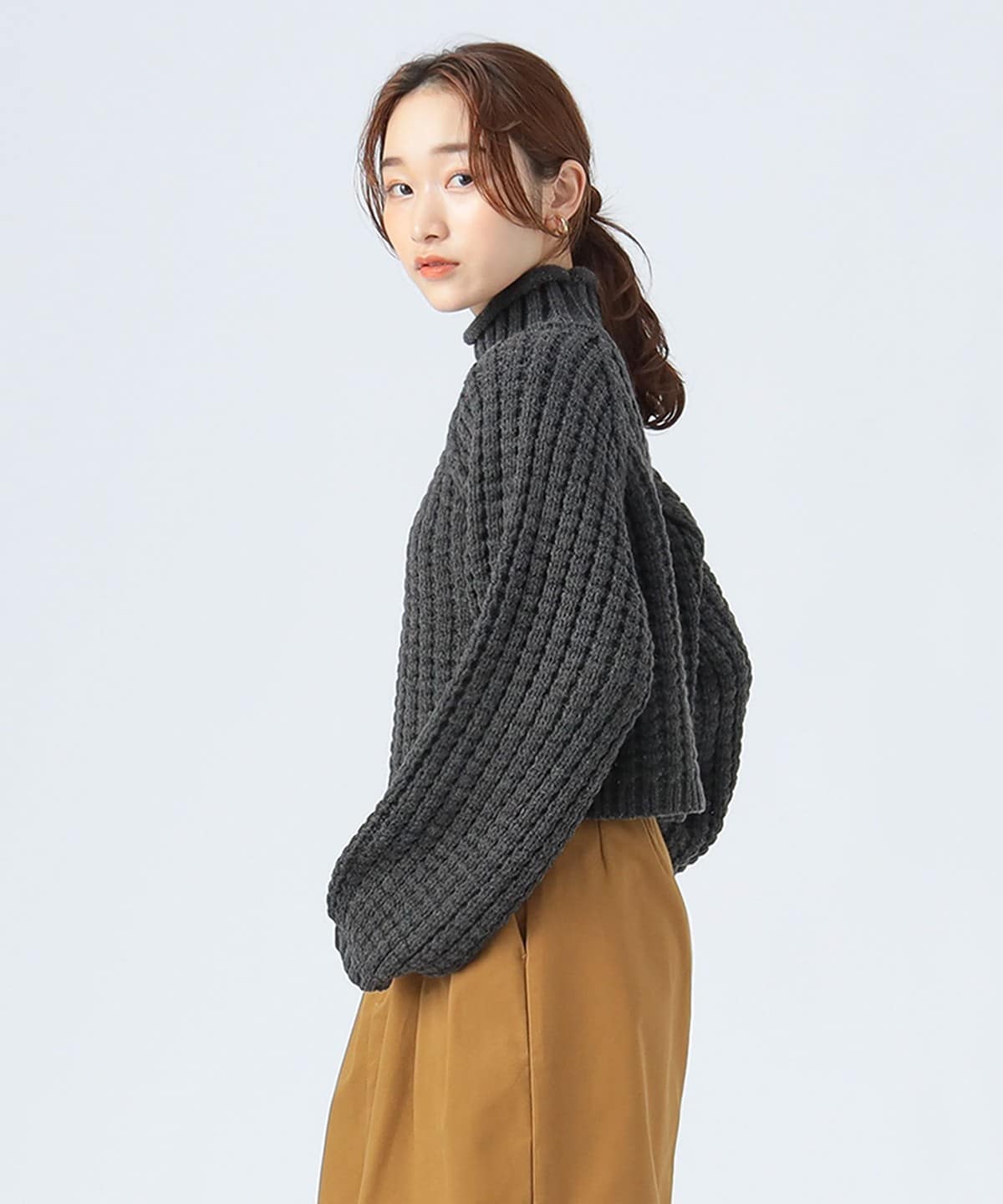 굵고 짜임이 느껴지는 와플 니트 짜임의 풀오버 니트 입니다.