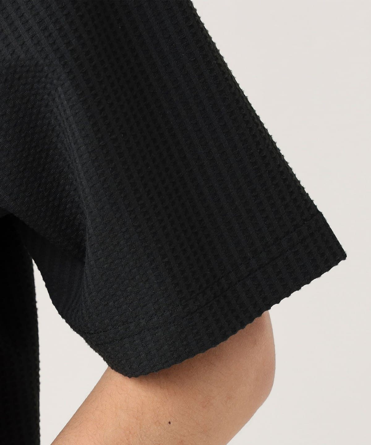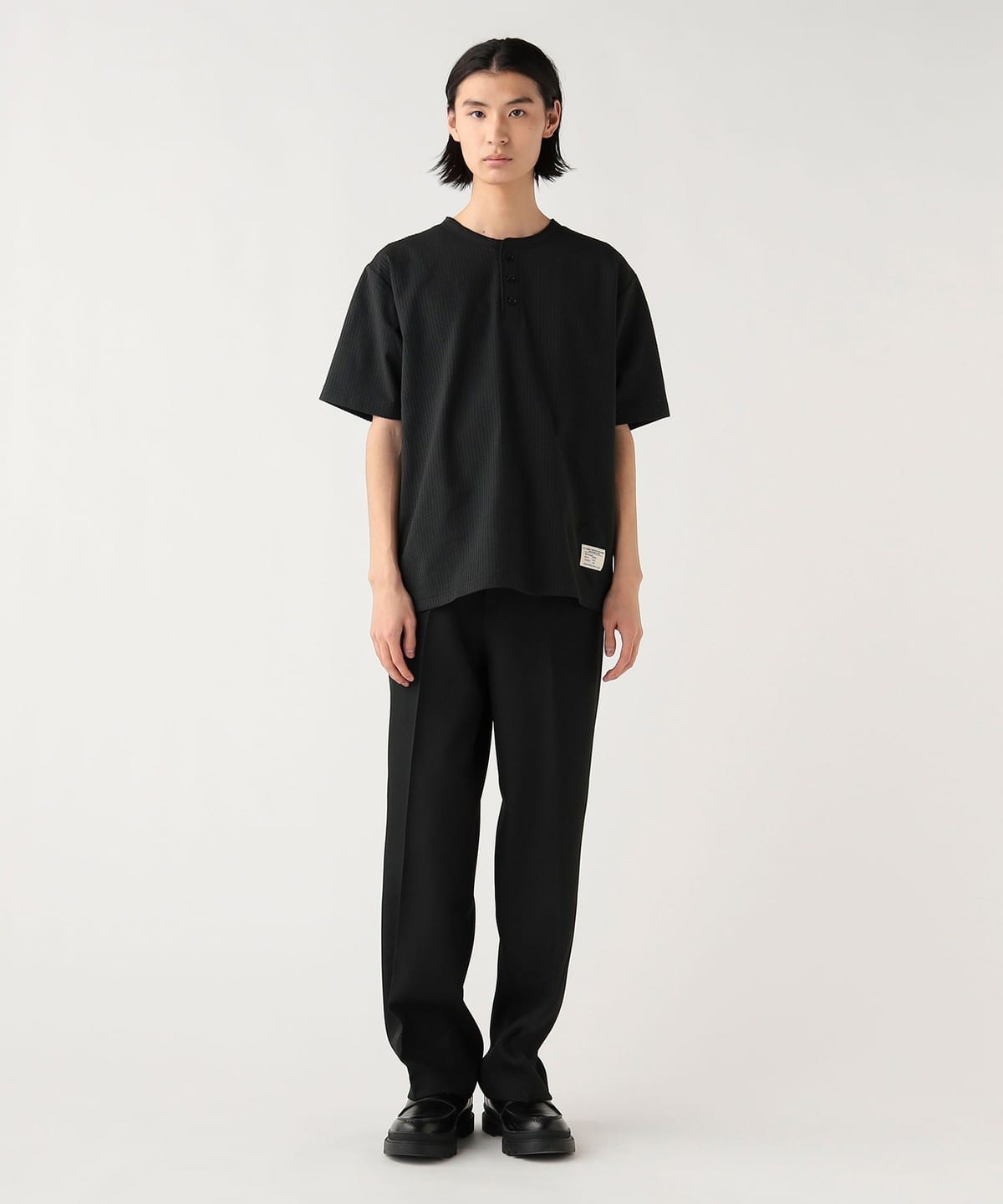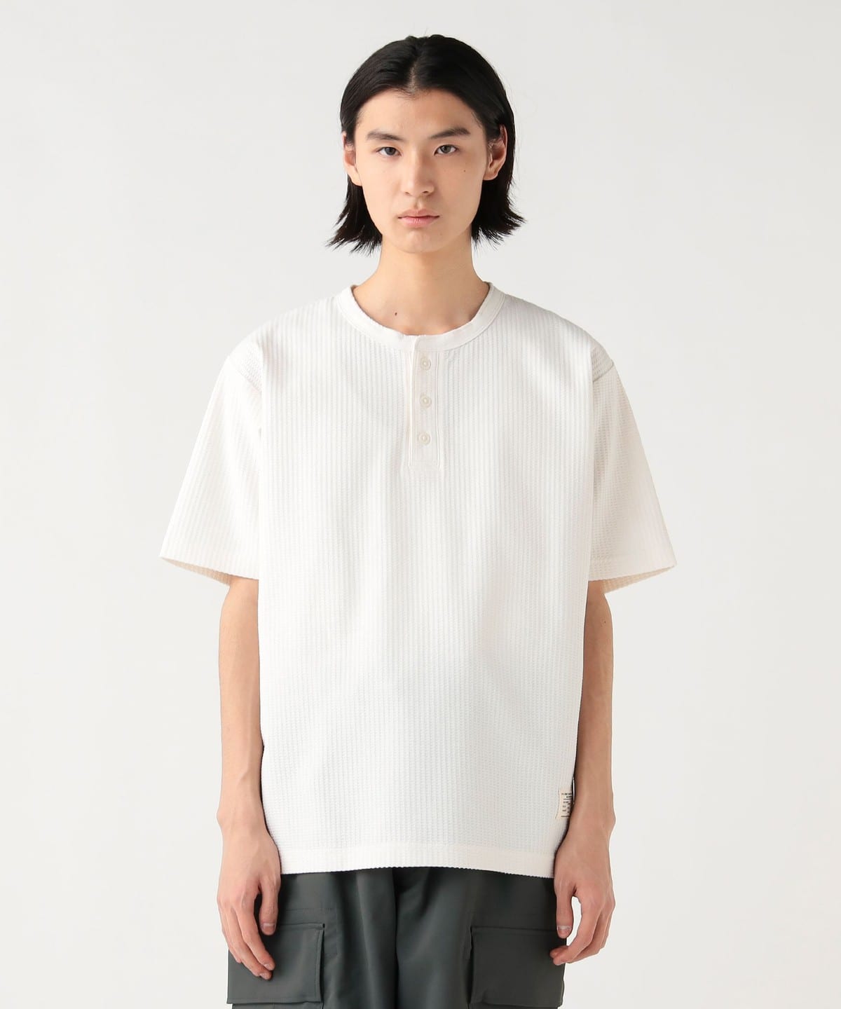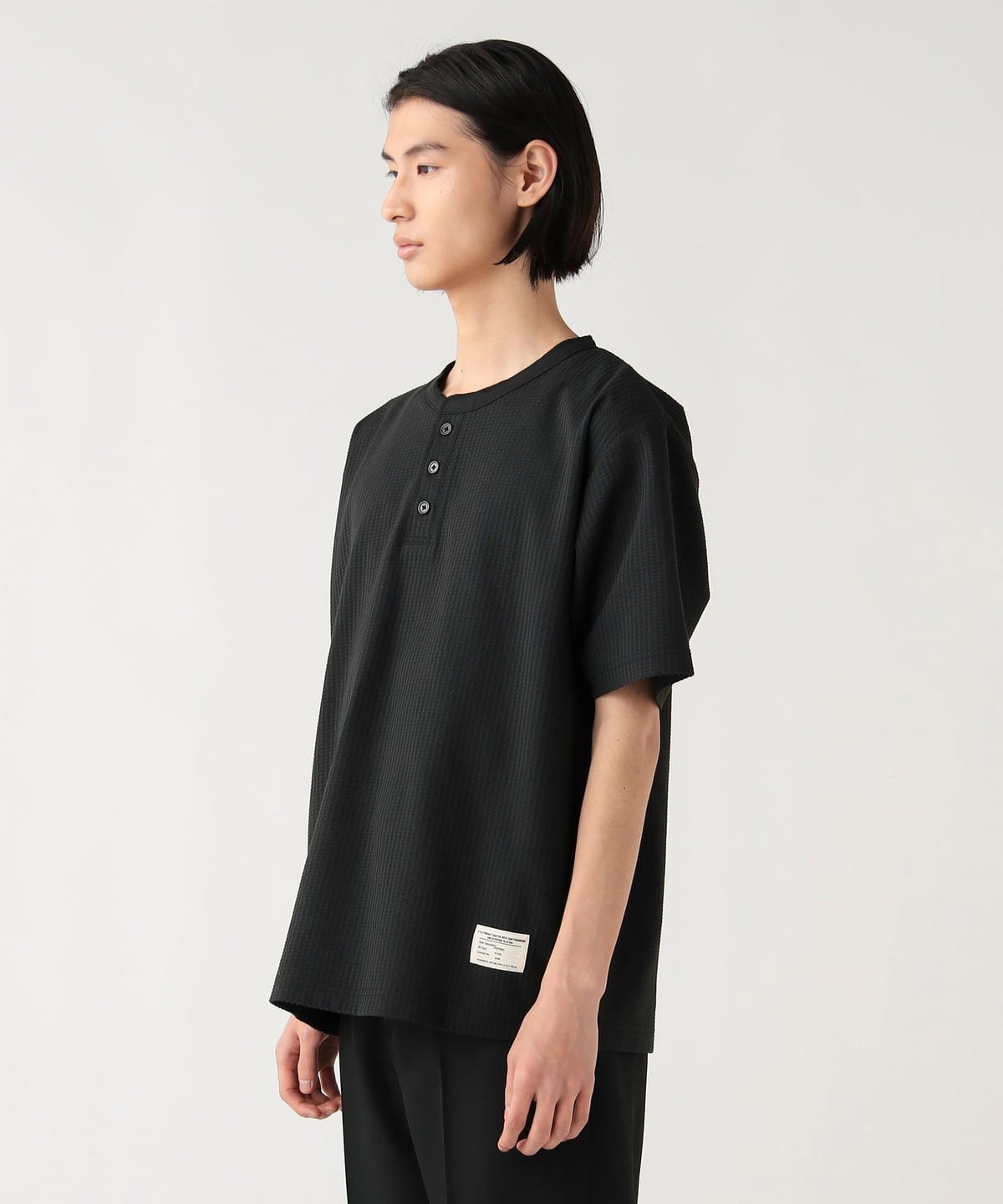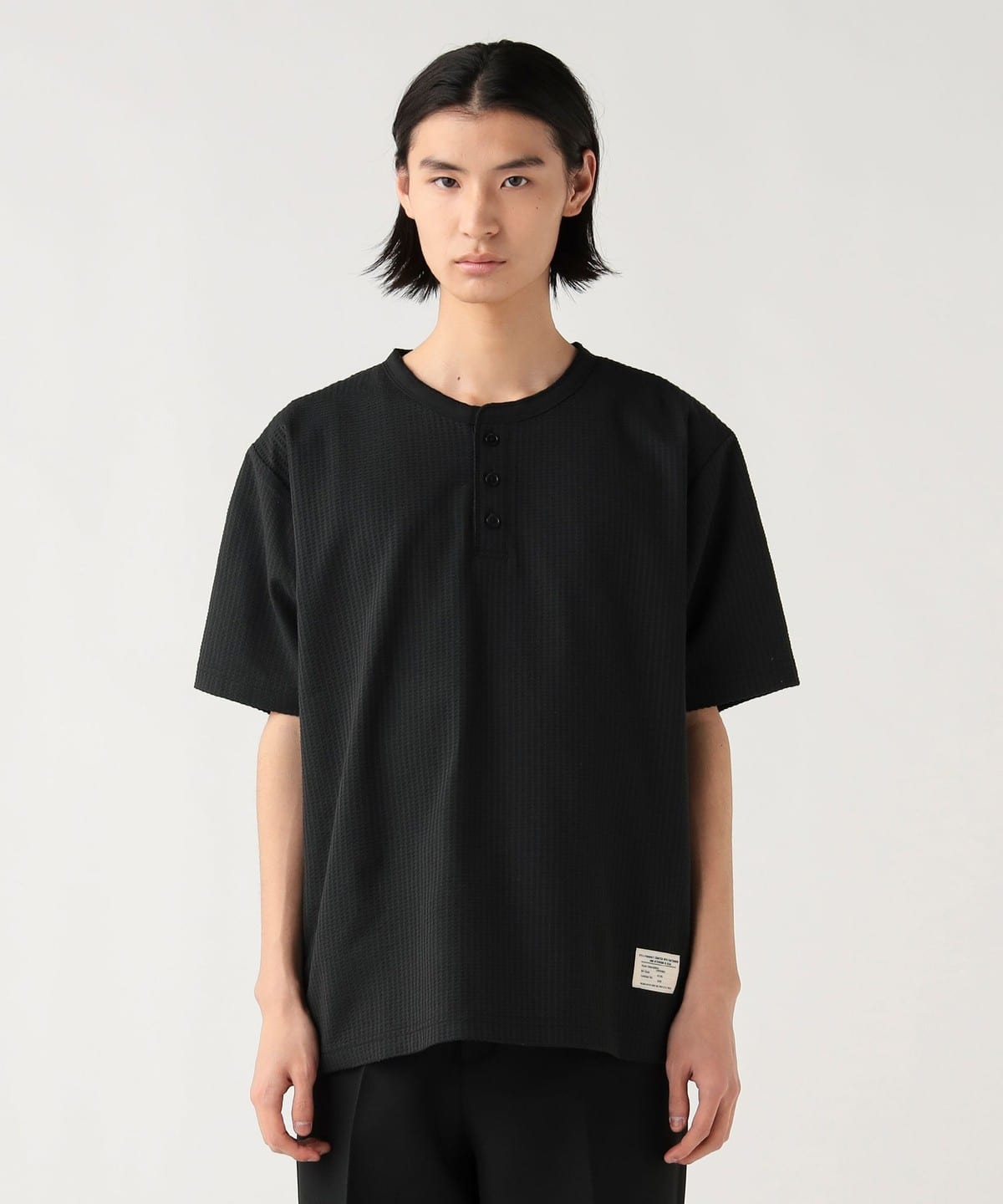 이번 시즌 주목받는 헨리넥 디테일 을 적용한 와플 소재 반팔 티셔츠 입니다.