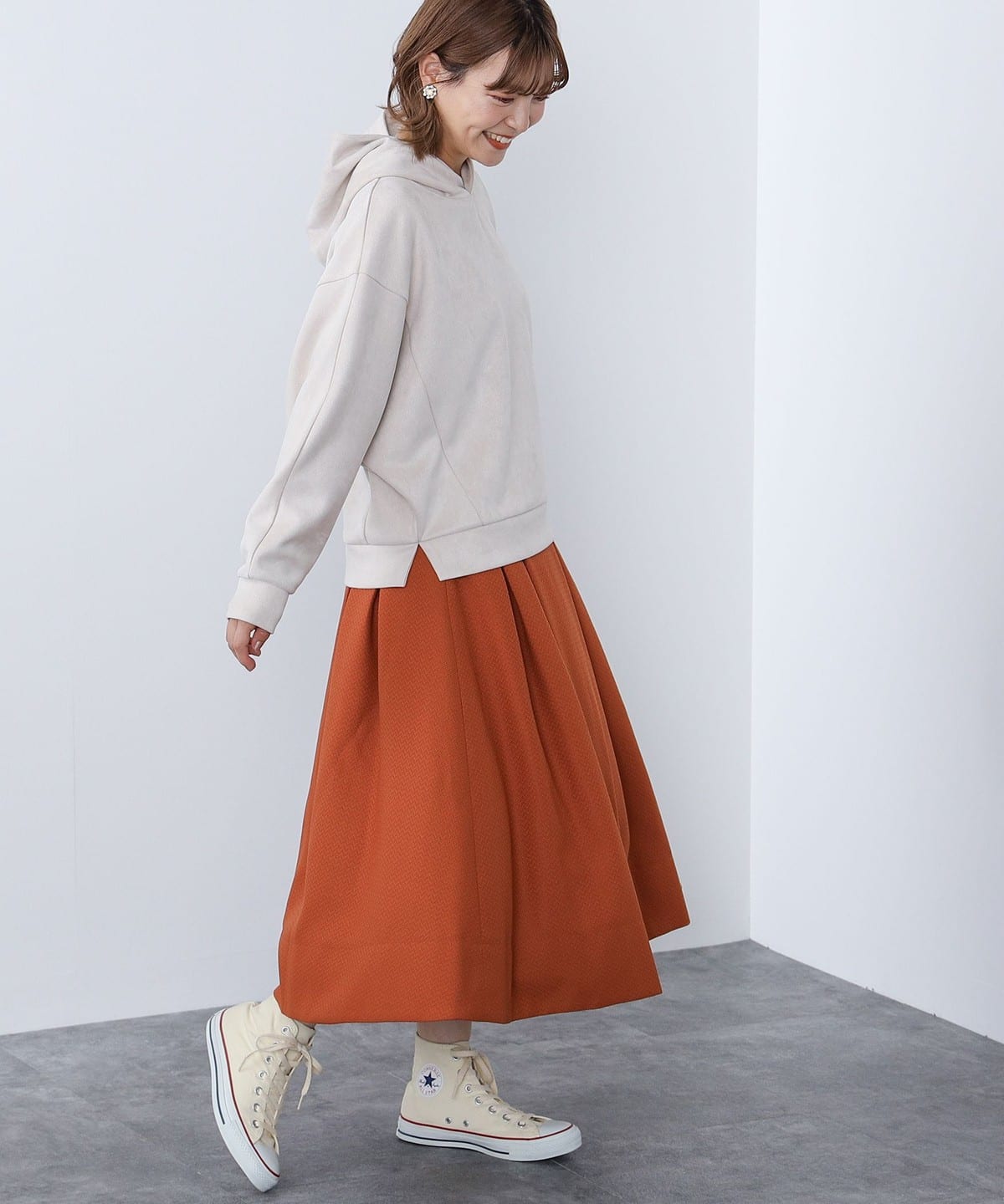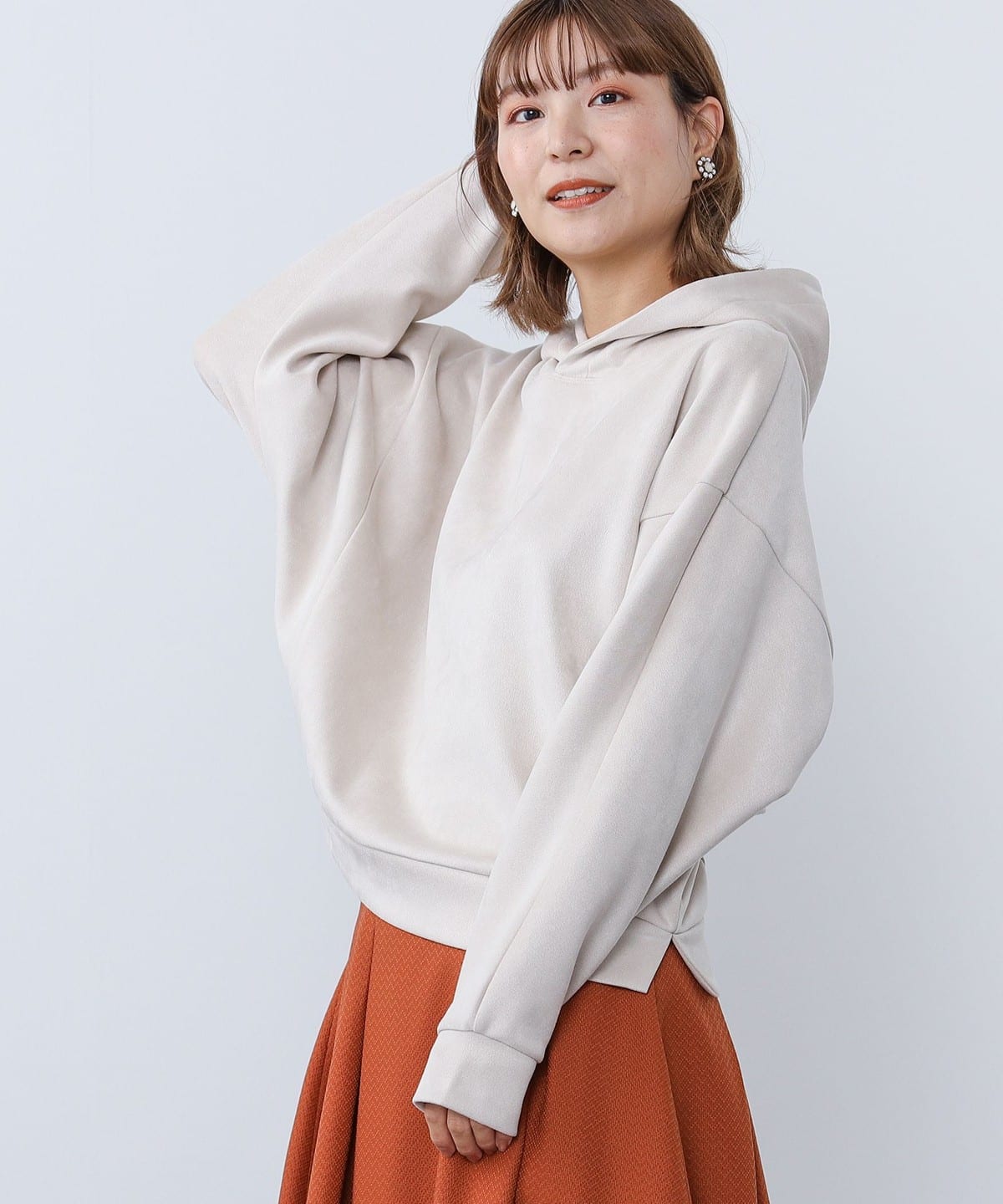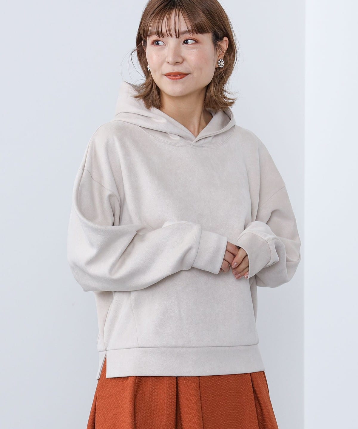 후드 디자인이 돋보이는 미니멀 실루엣의 후드 티