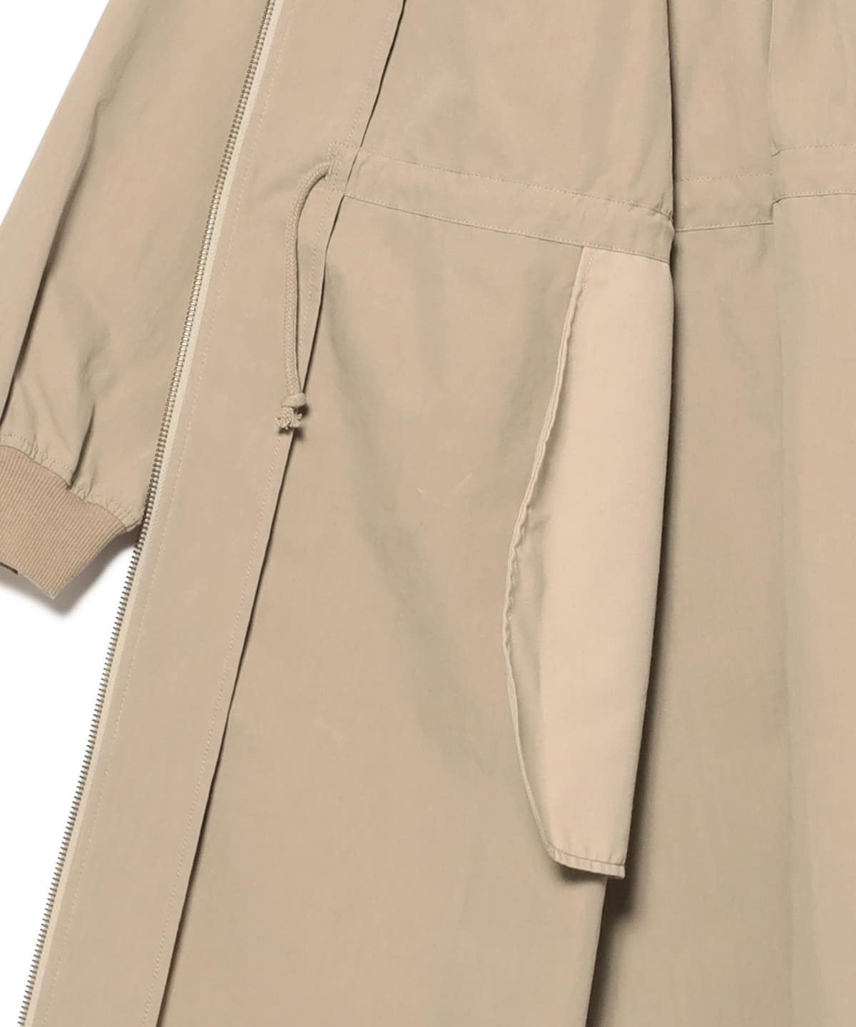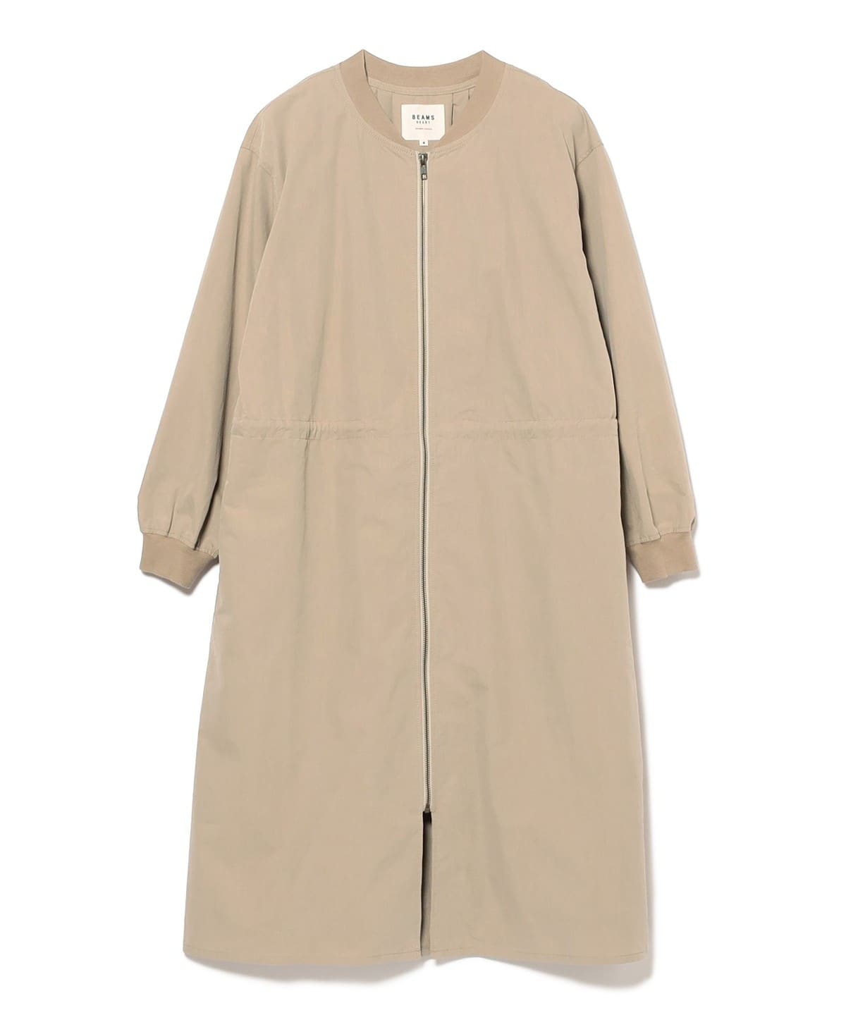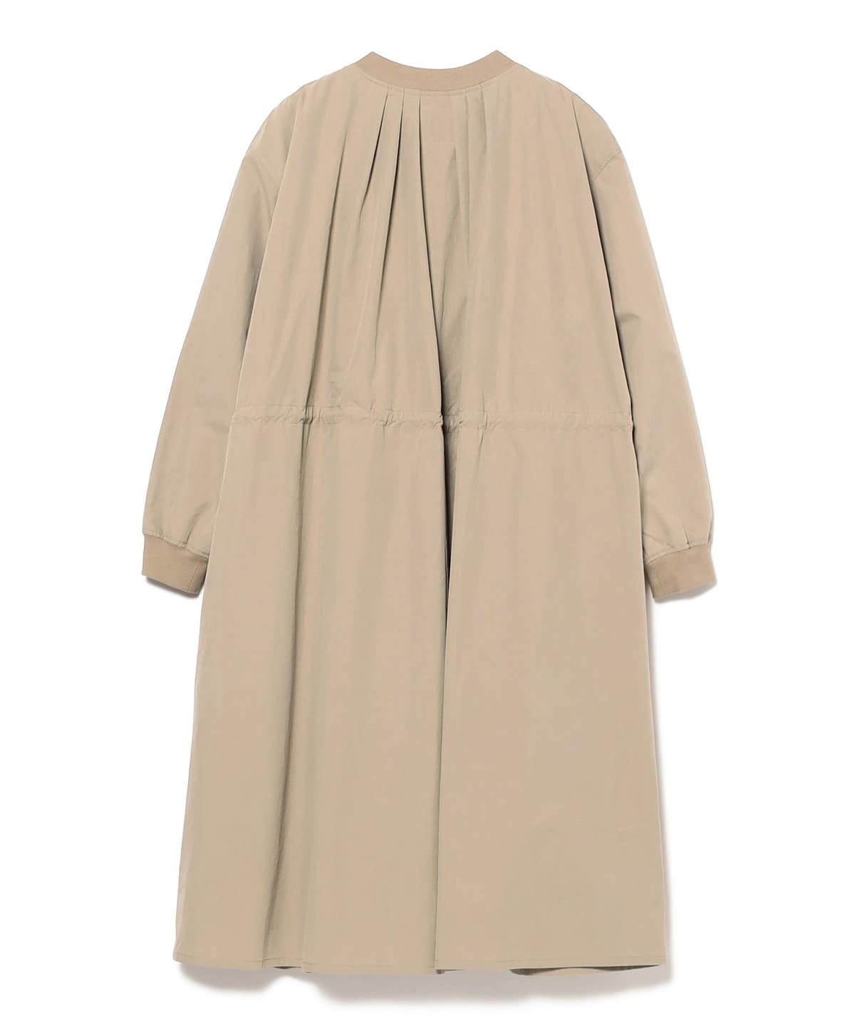 MA-1 점퍼의 디테일을 네크라인과 소매 리브에 적용한 롱 코트 입니다. 뒷면의 백 턱 디테일이 자연스러운 볼륨을 만들어 여유 있는 실루엣입니다. 전체적으로 오보사이즈 핏이며 허리는 드로우스트링으로 조절할 수 있습니다.