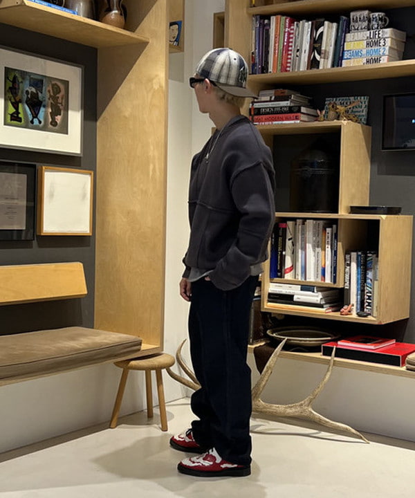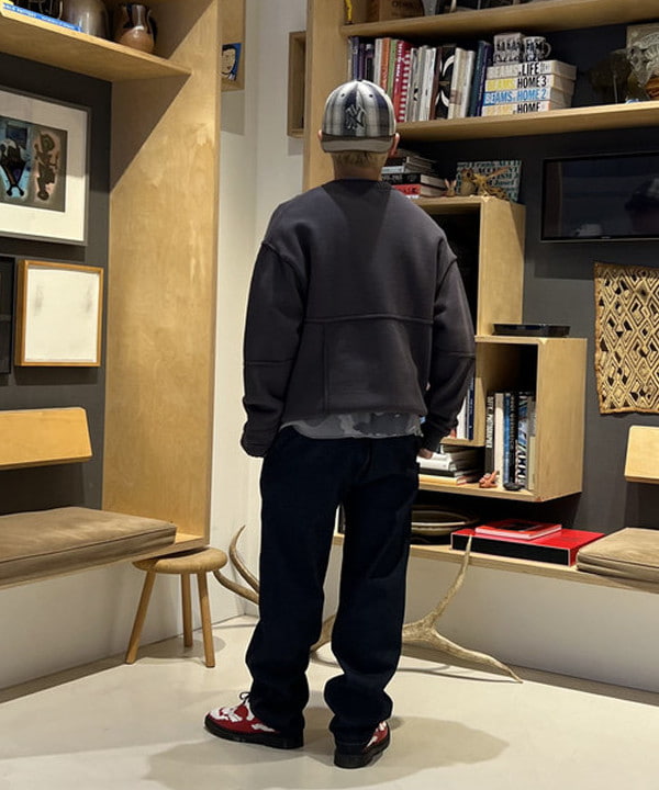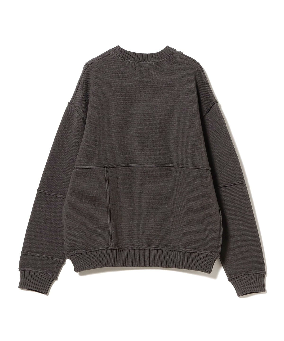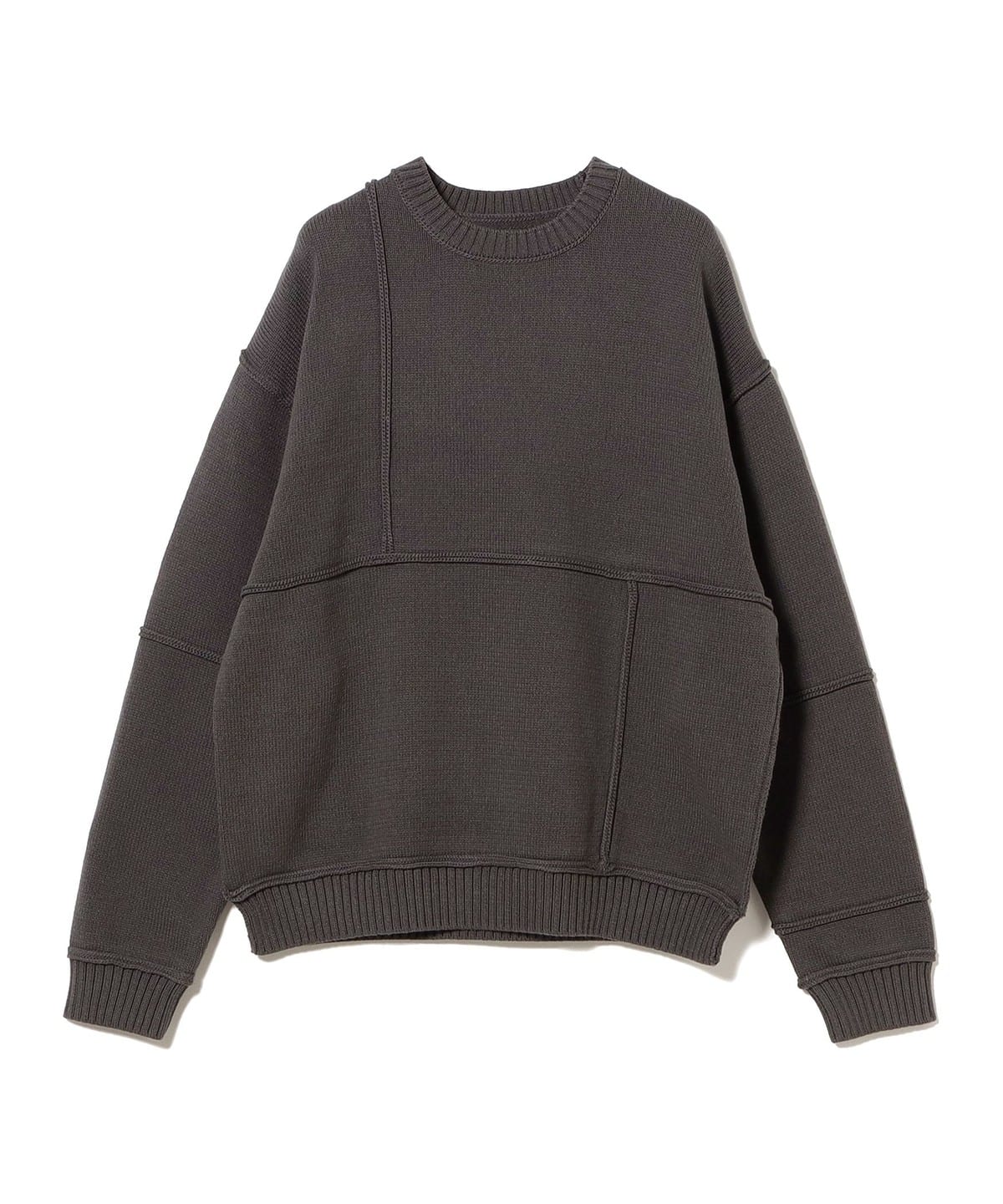 패치워크를 연상시키는 랜덤한 절개 배치가 시선을 끄는 크루넥 니트입니다. 각 파츠의 절개 라인은 인사이드 아웃 방식으로 마감되어, 단면이 그대로 드러나는 구조입니다. 여유로운 품에 비해 기장을 짧게 설정한 실루엣으로, 전체적인 밸런스가 경쾌하게 느껴집니다.