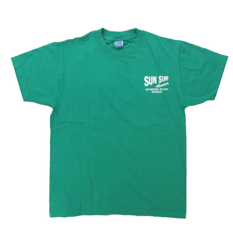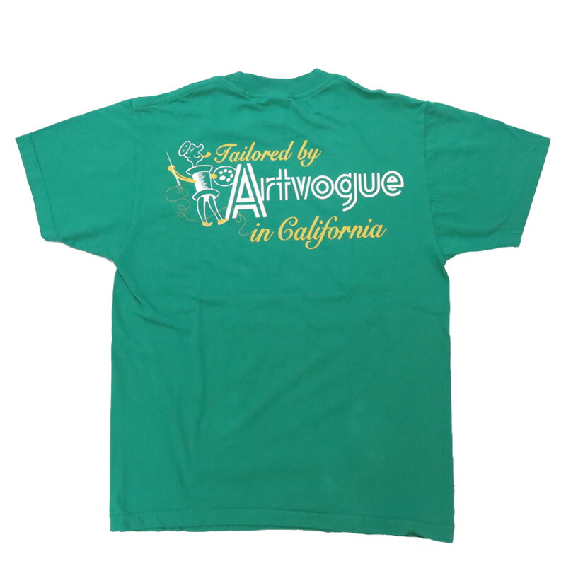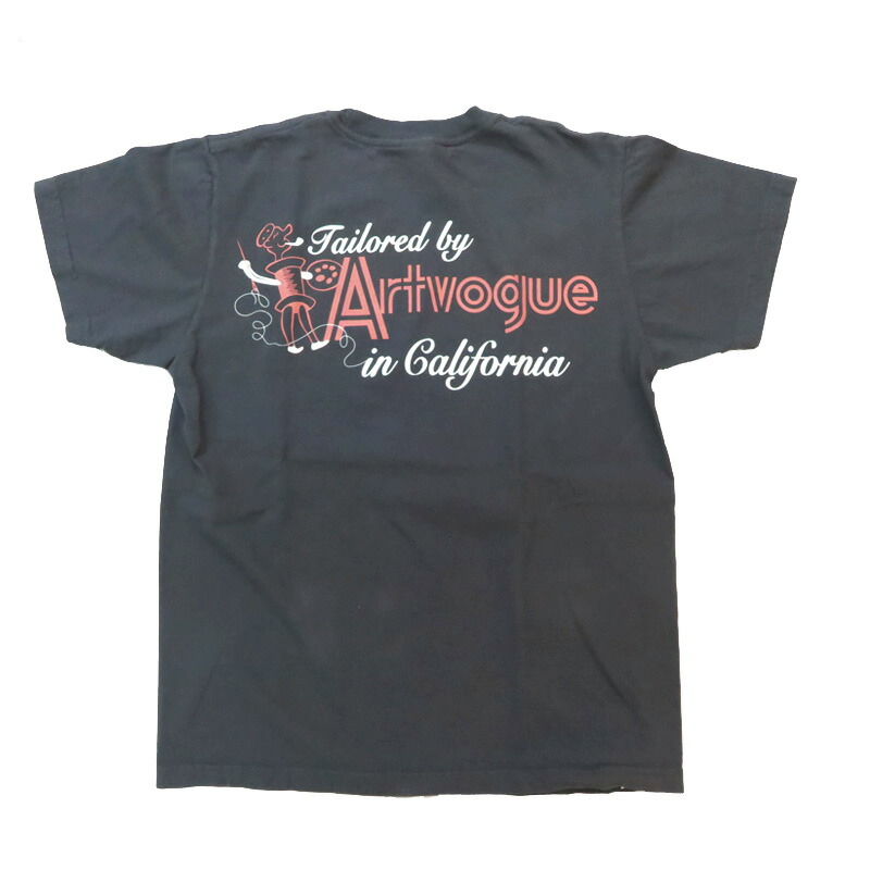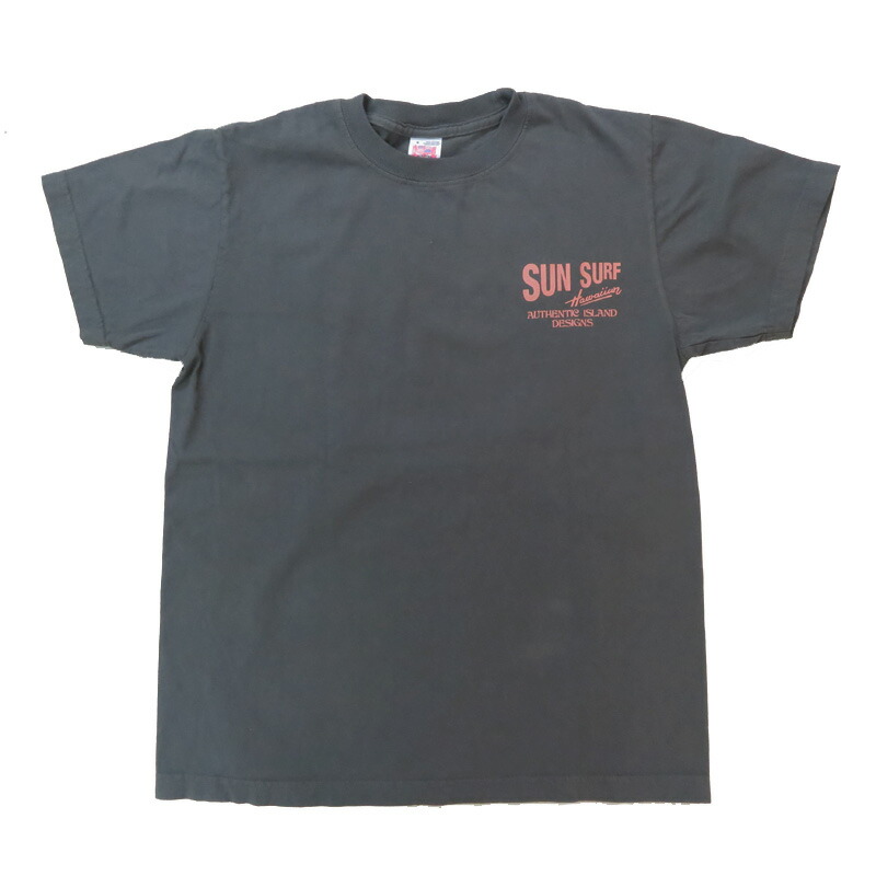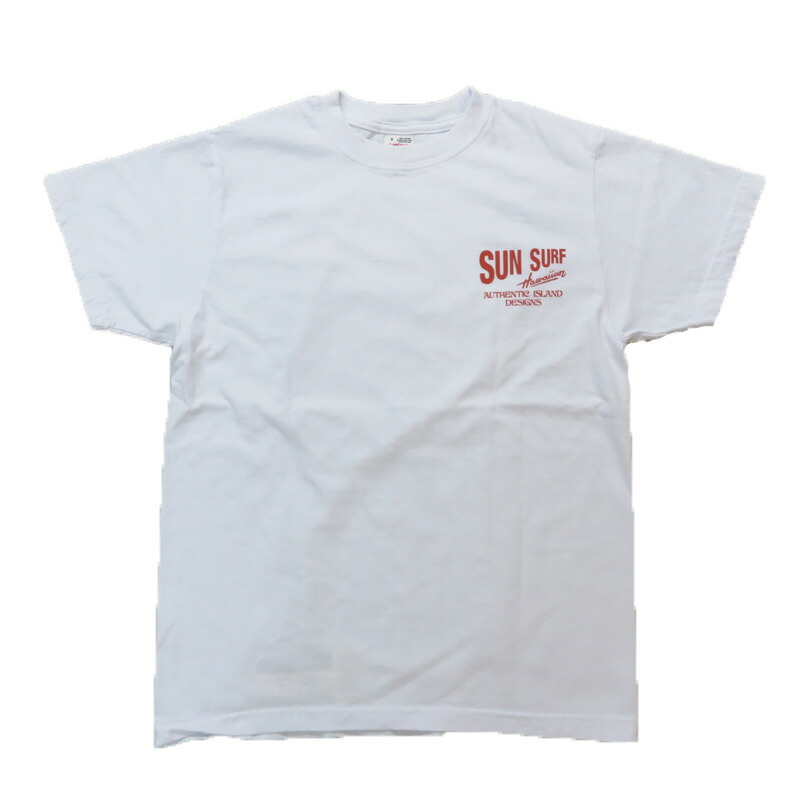 전면에는 SUN SURF 로고, 등판에는 “ARTVOGUE OF CALIFORNIA” 텍스트가 프린팅된 빈티지 스타일 티셔츠입니다.