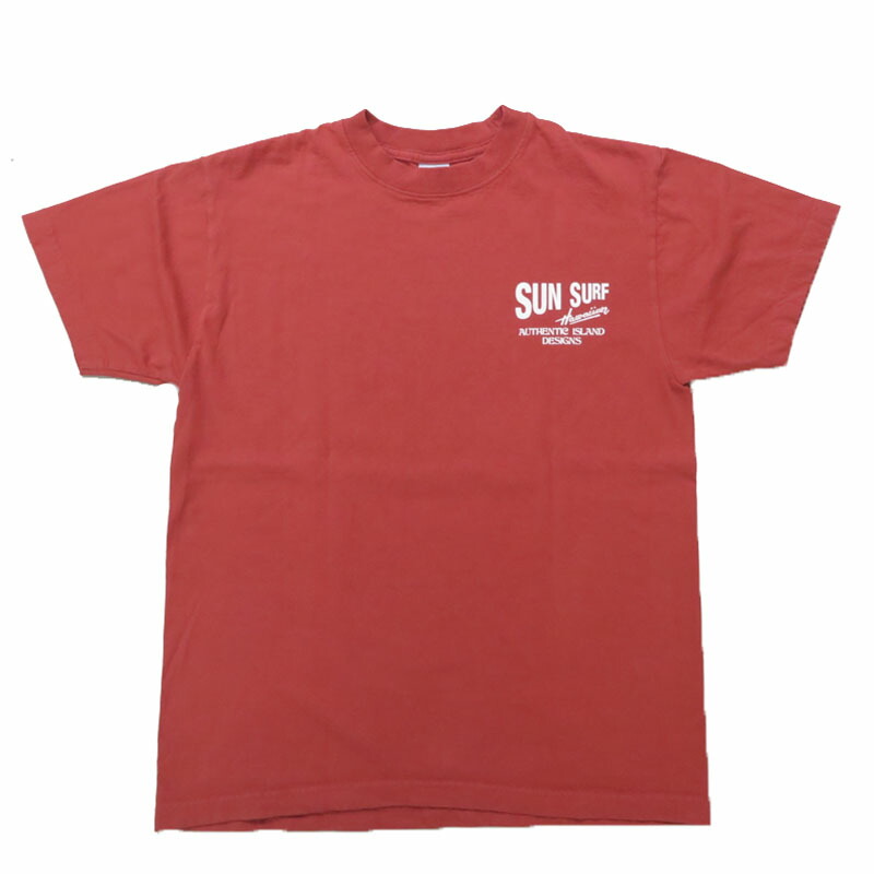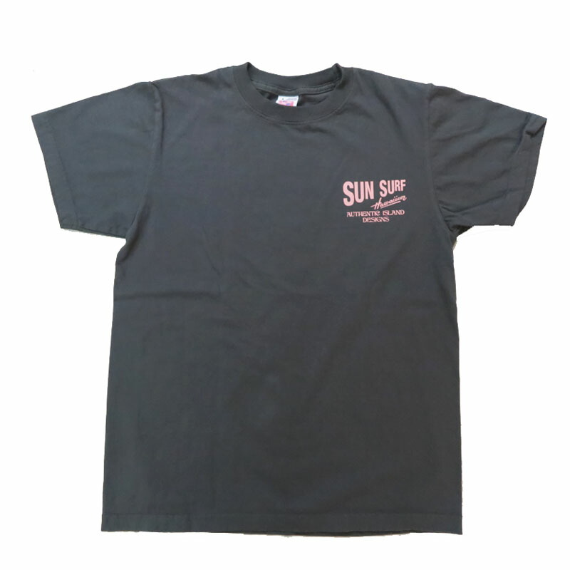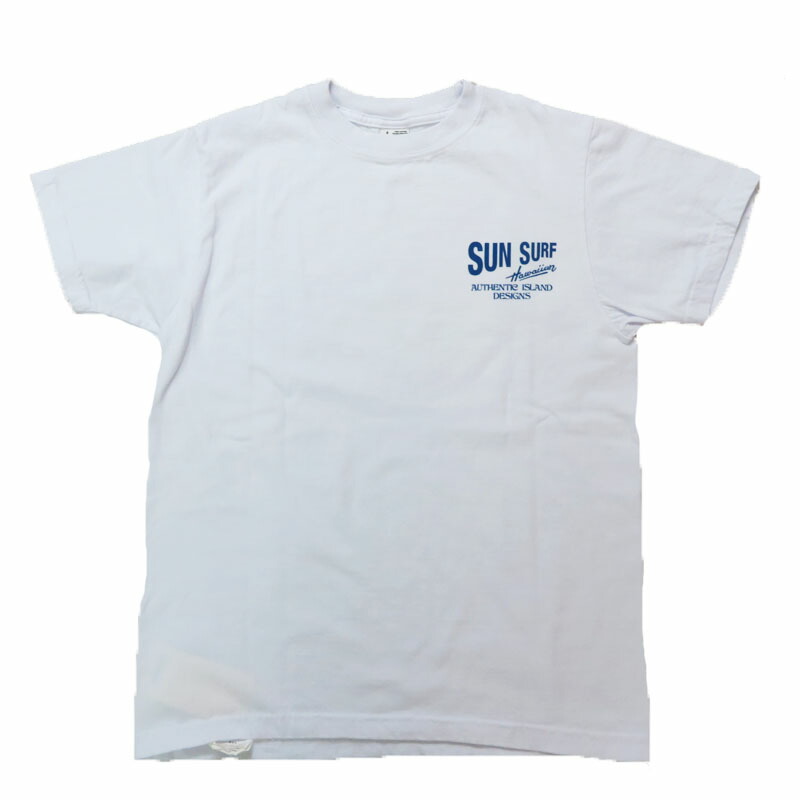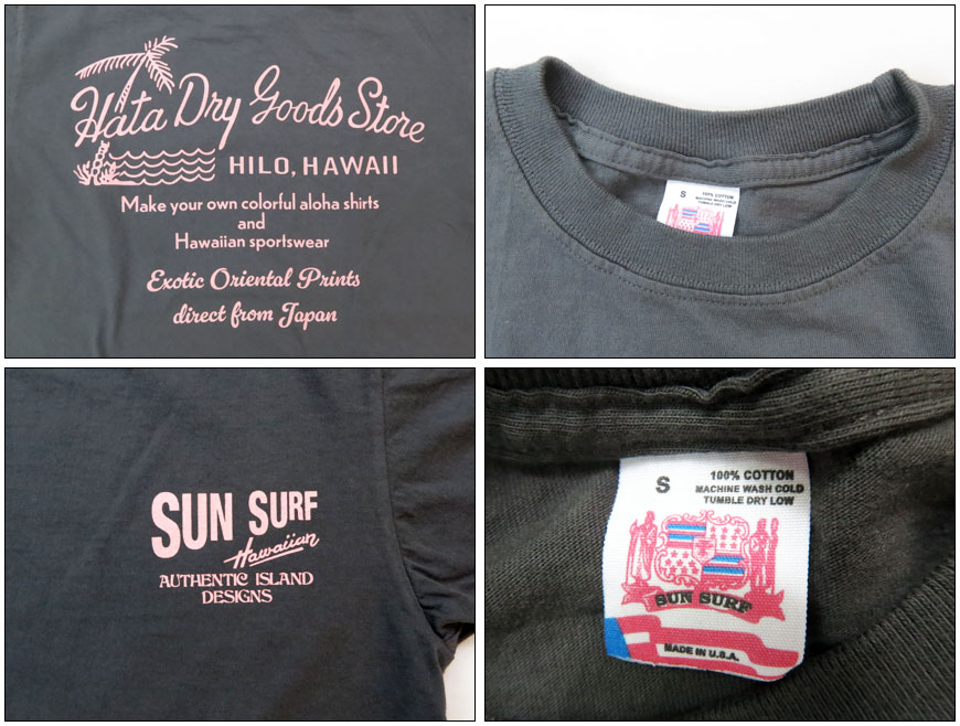 전면에는 SUN SURF 로고, 등판에는 “HATA DRY Goods Store” 레터링이 프린팅된 미국산 티셔츠입니다.