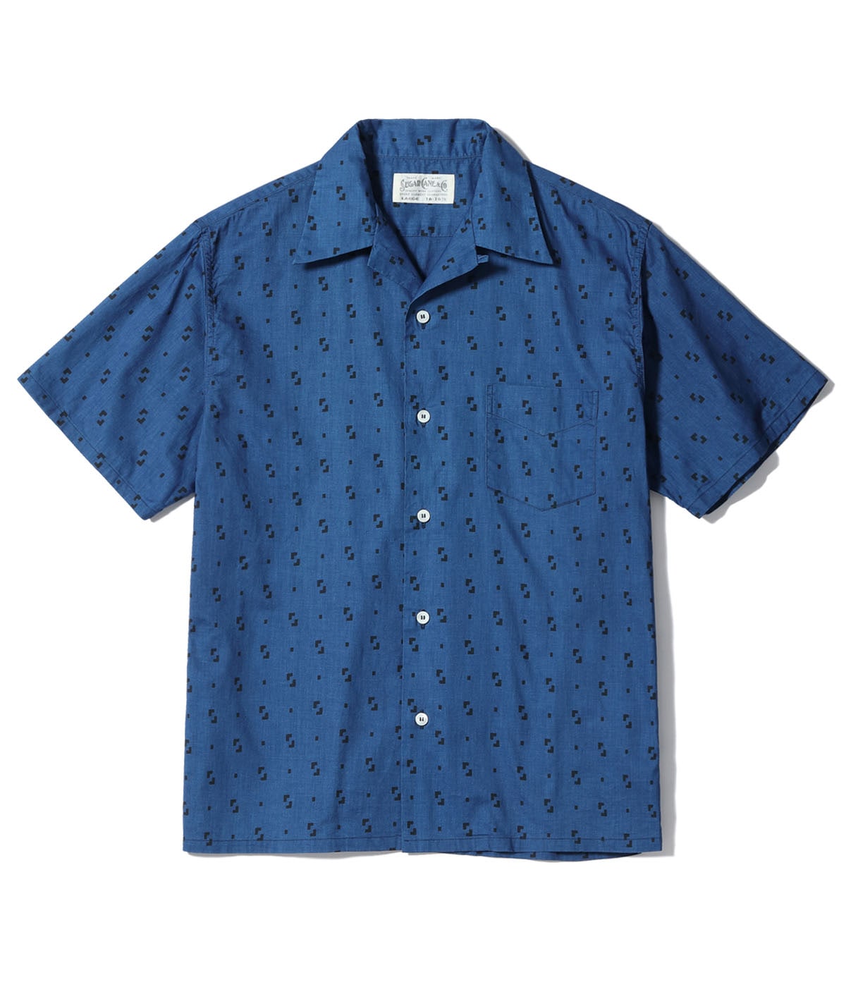 슈가케인 반팔 셔츠 3.5oz 인디고 프린트 SC39511 빈티지