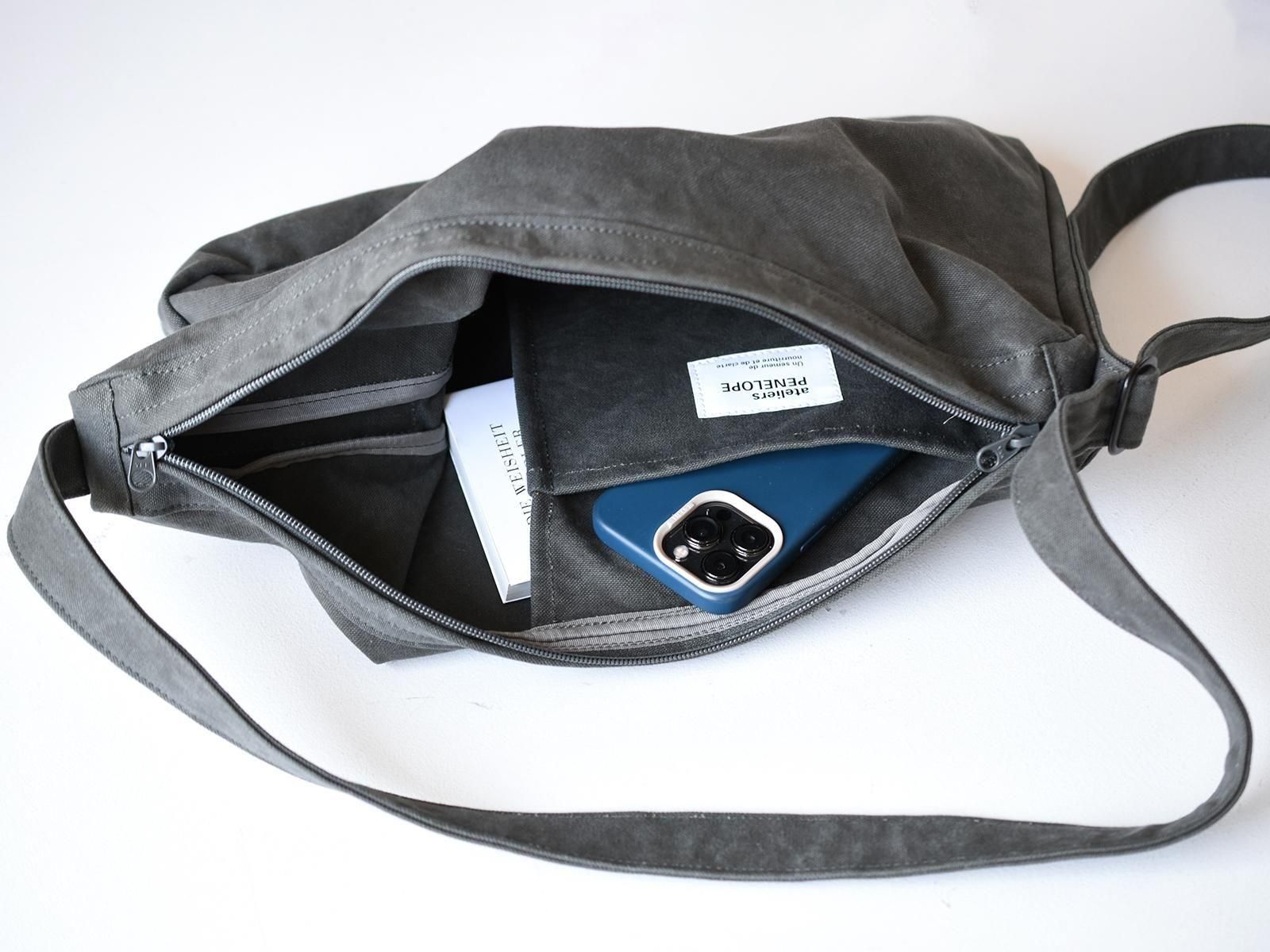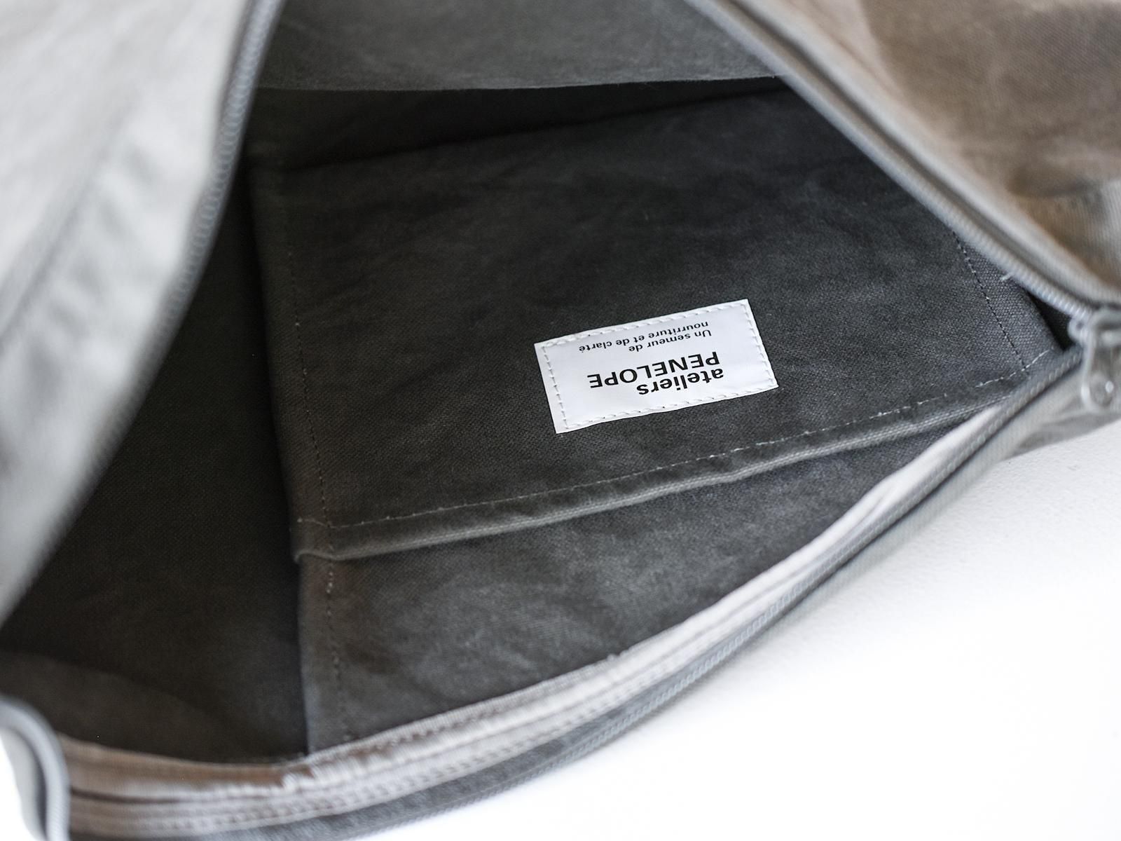내부 포켓은 외부 스티치가 보이지 않는 브리지 타입이며 입구는 더블 슬라이더 지퍼를 사용합니다.