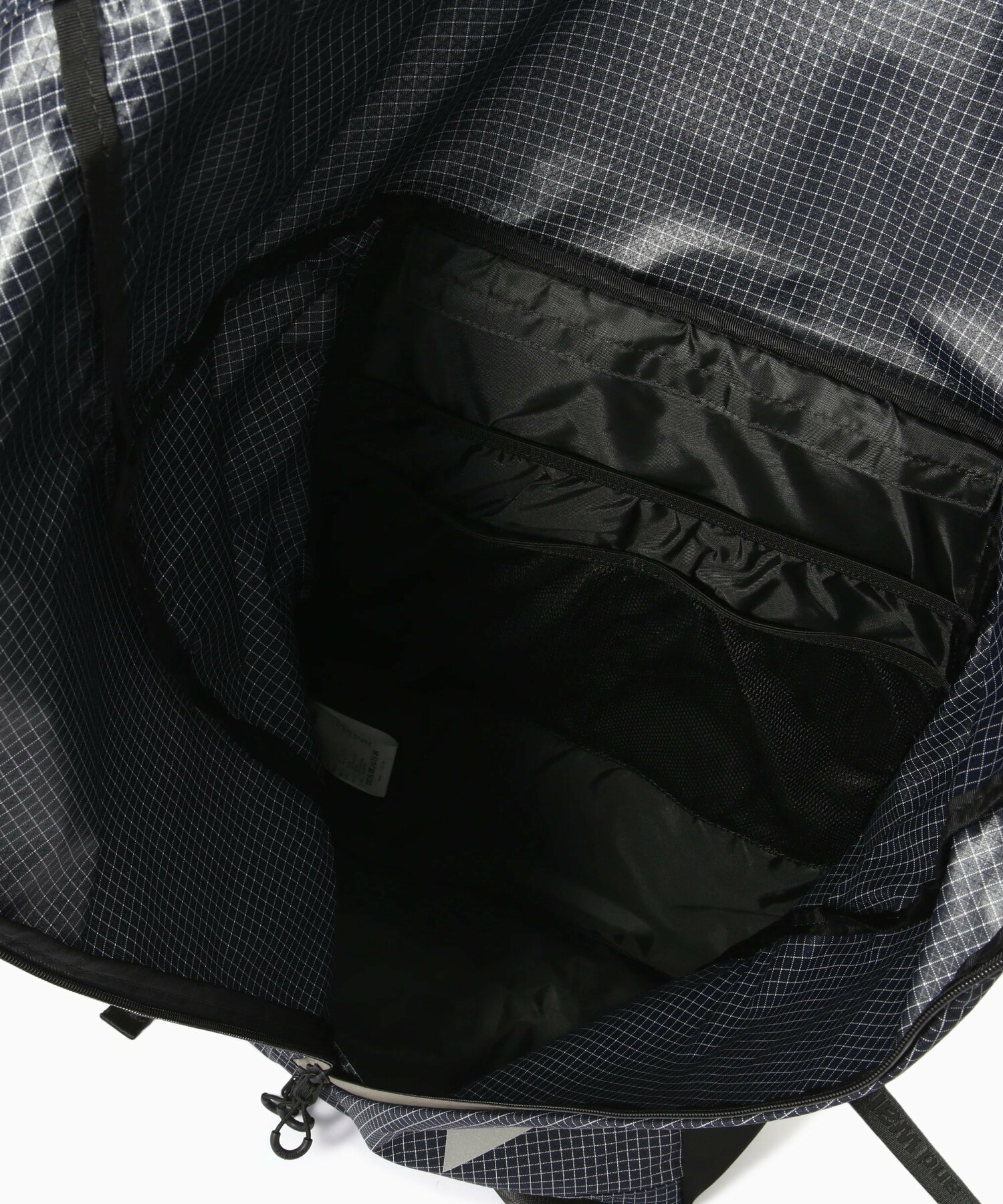 나일론에 고강도 폴리에틸렌을 립스탑 구조를 사용하여 내구성과 친환경성을 구현합니다. 상·하단 모두 열 수 있는 더블 지퍼와 압축용 드로스트링은 리플렉터 타입을 적용하여 안전성을 강화합니다.