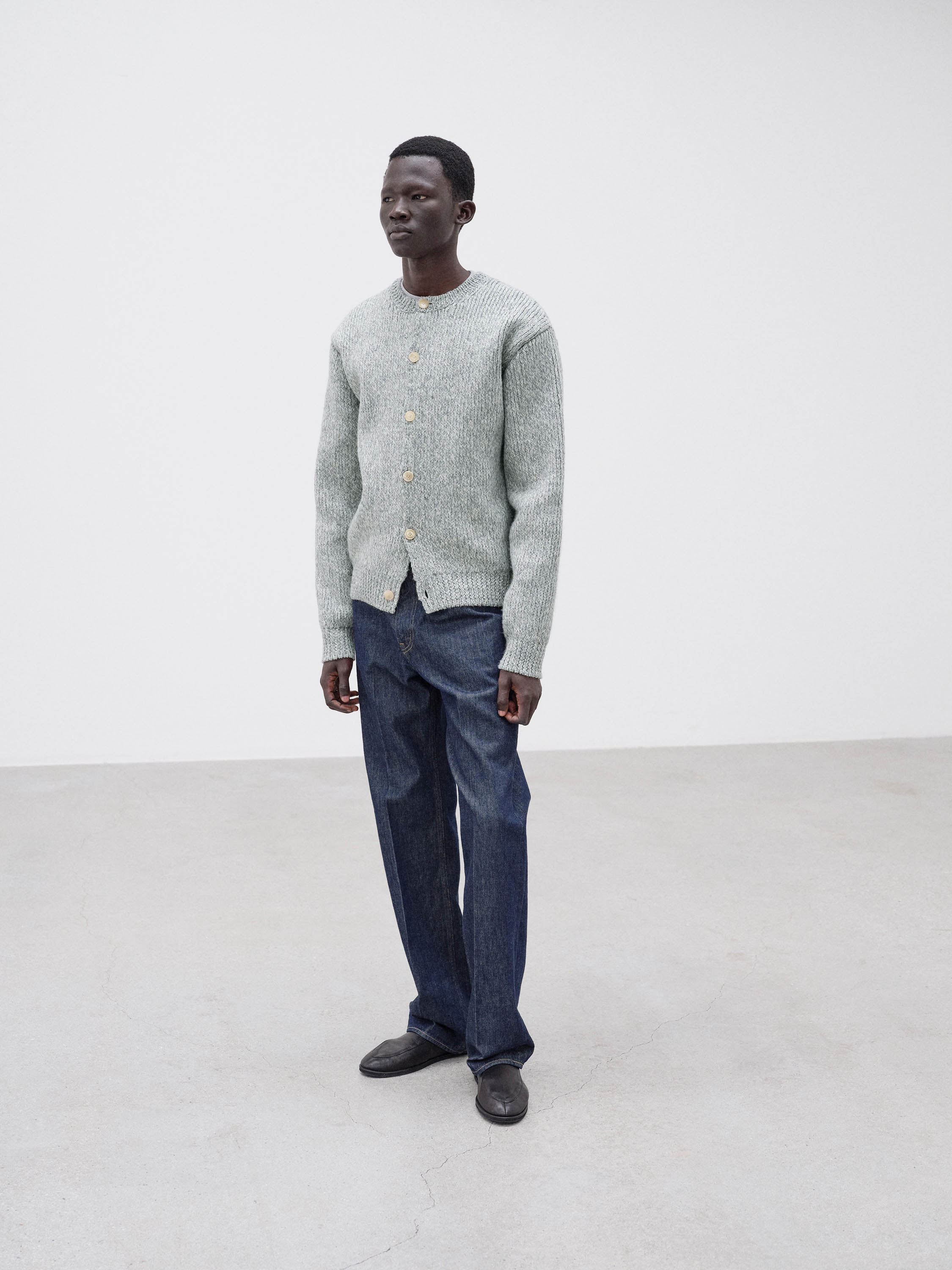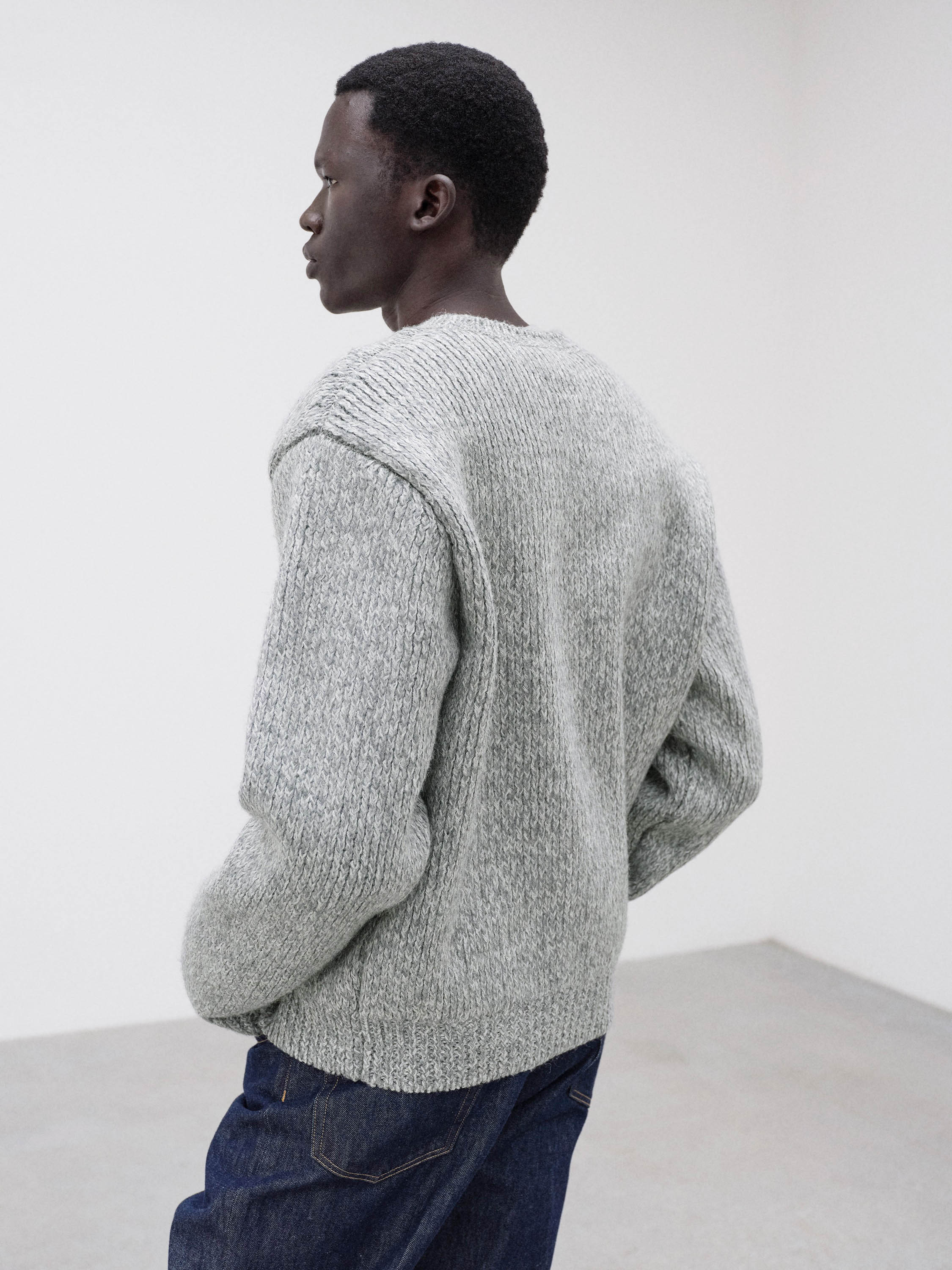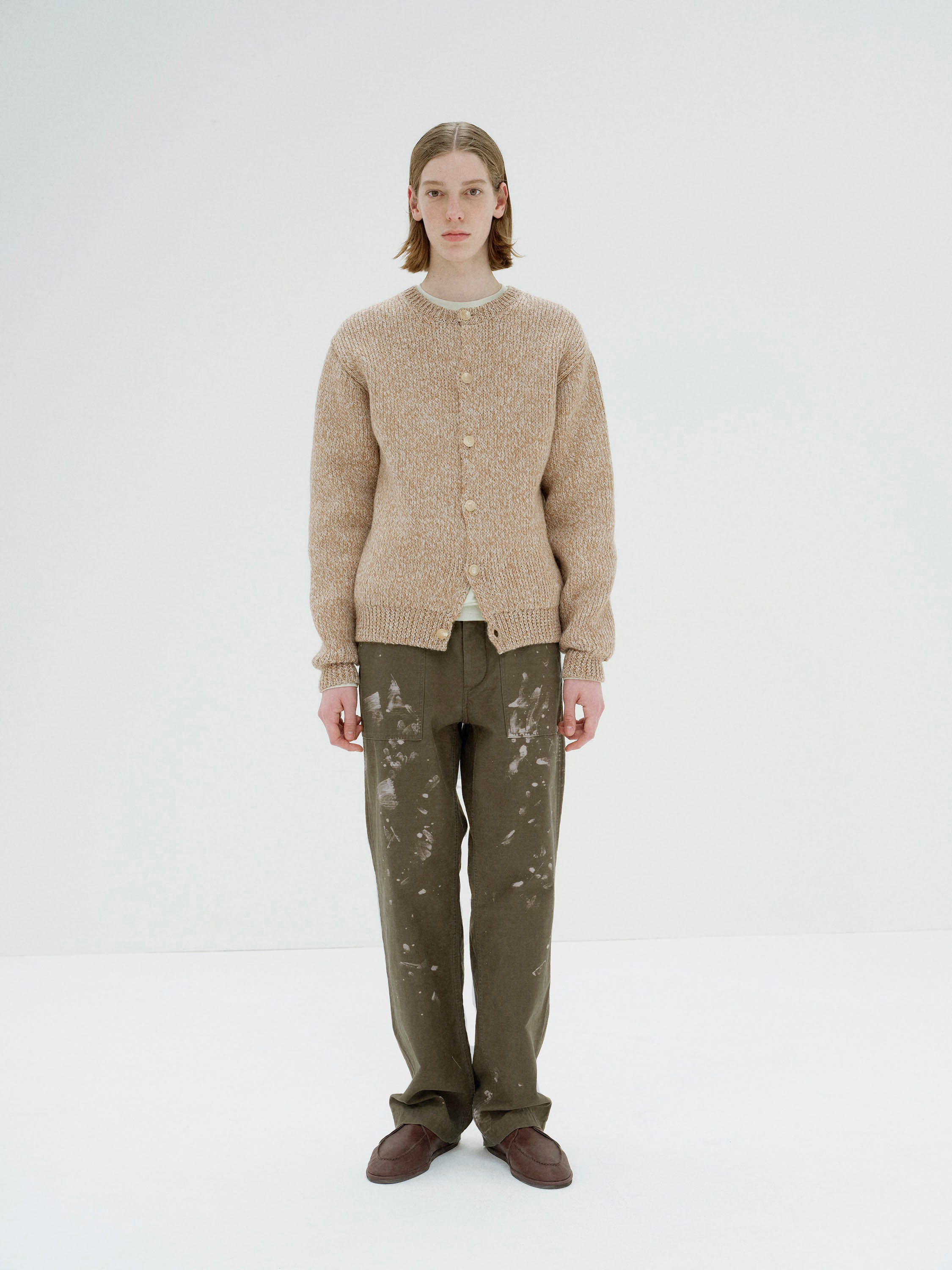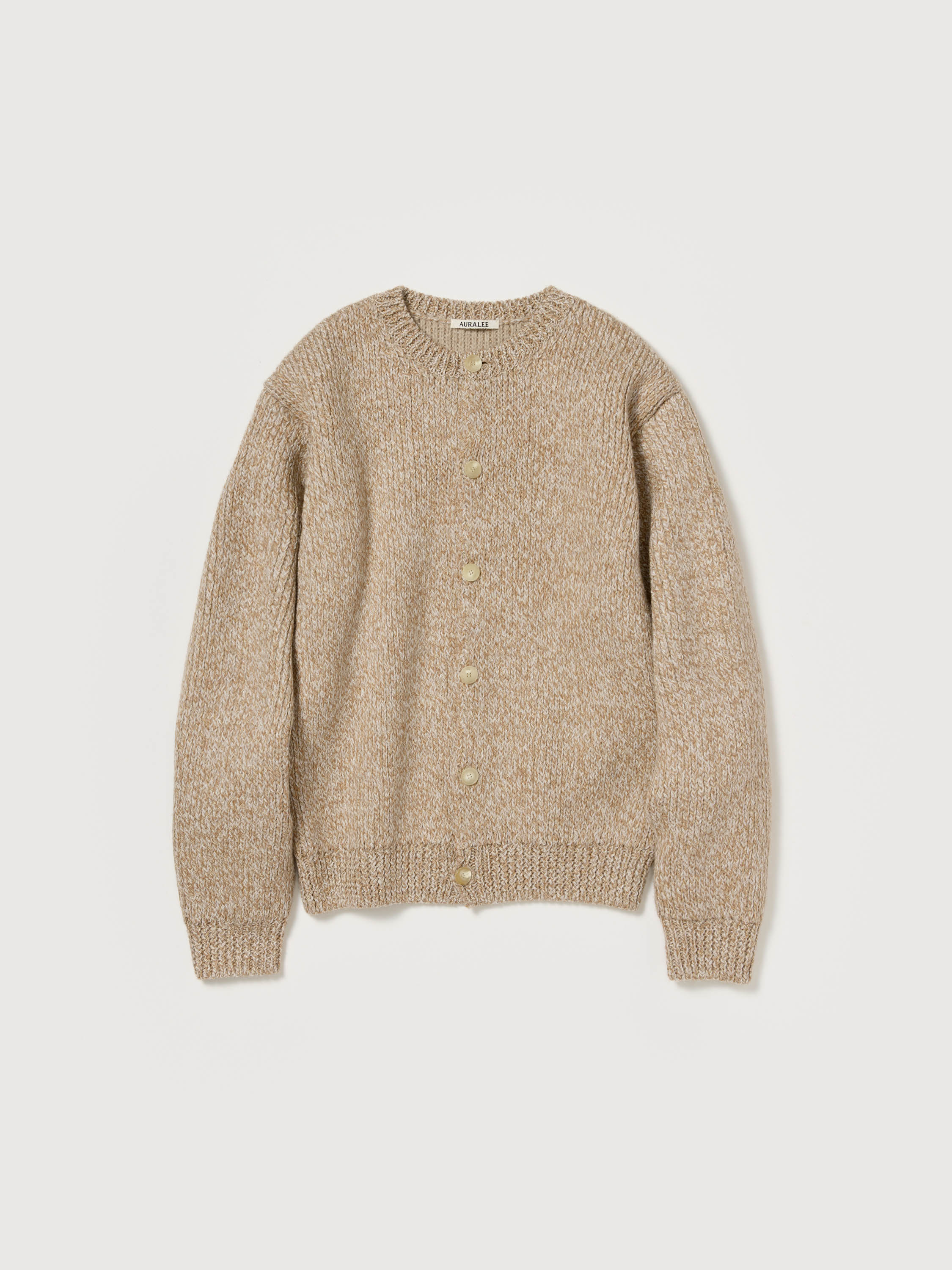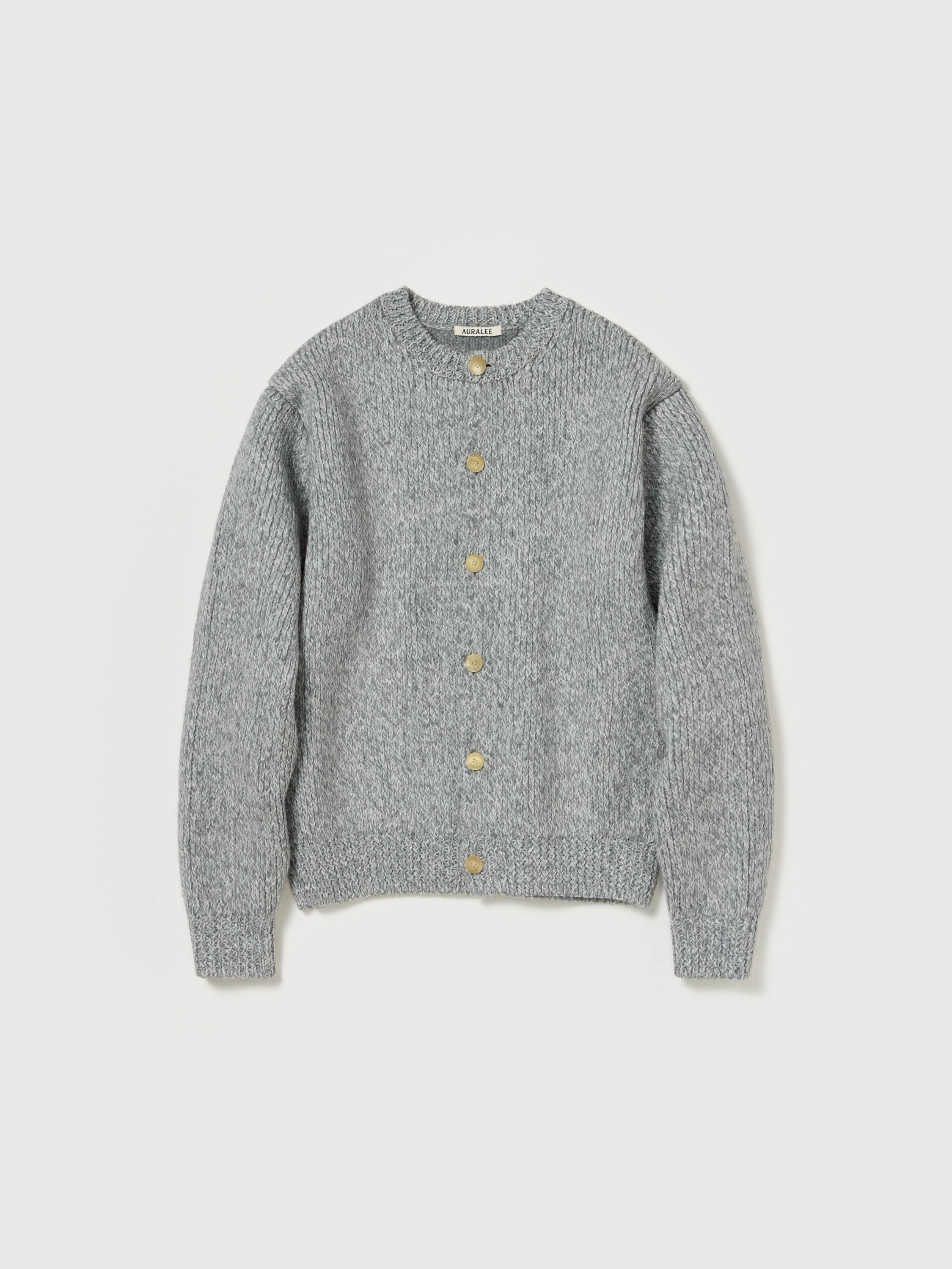WOOL ALPACA LOW GAUGE KNIT CREW-NECK CARDIGAN