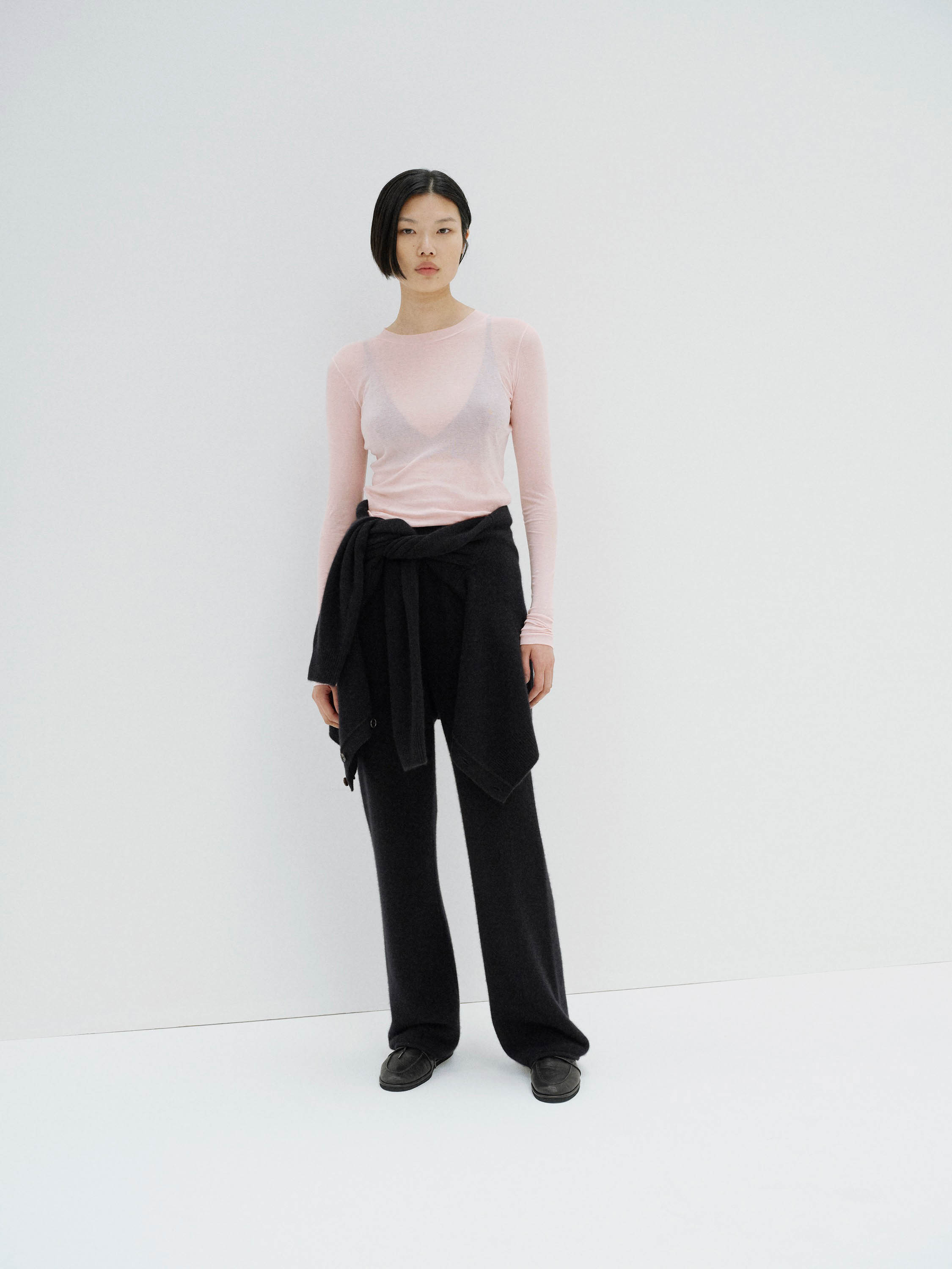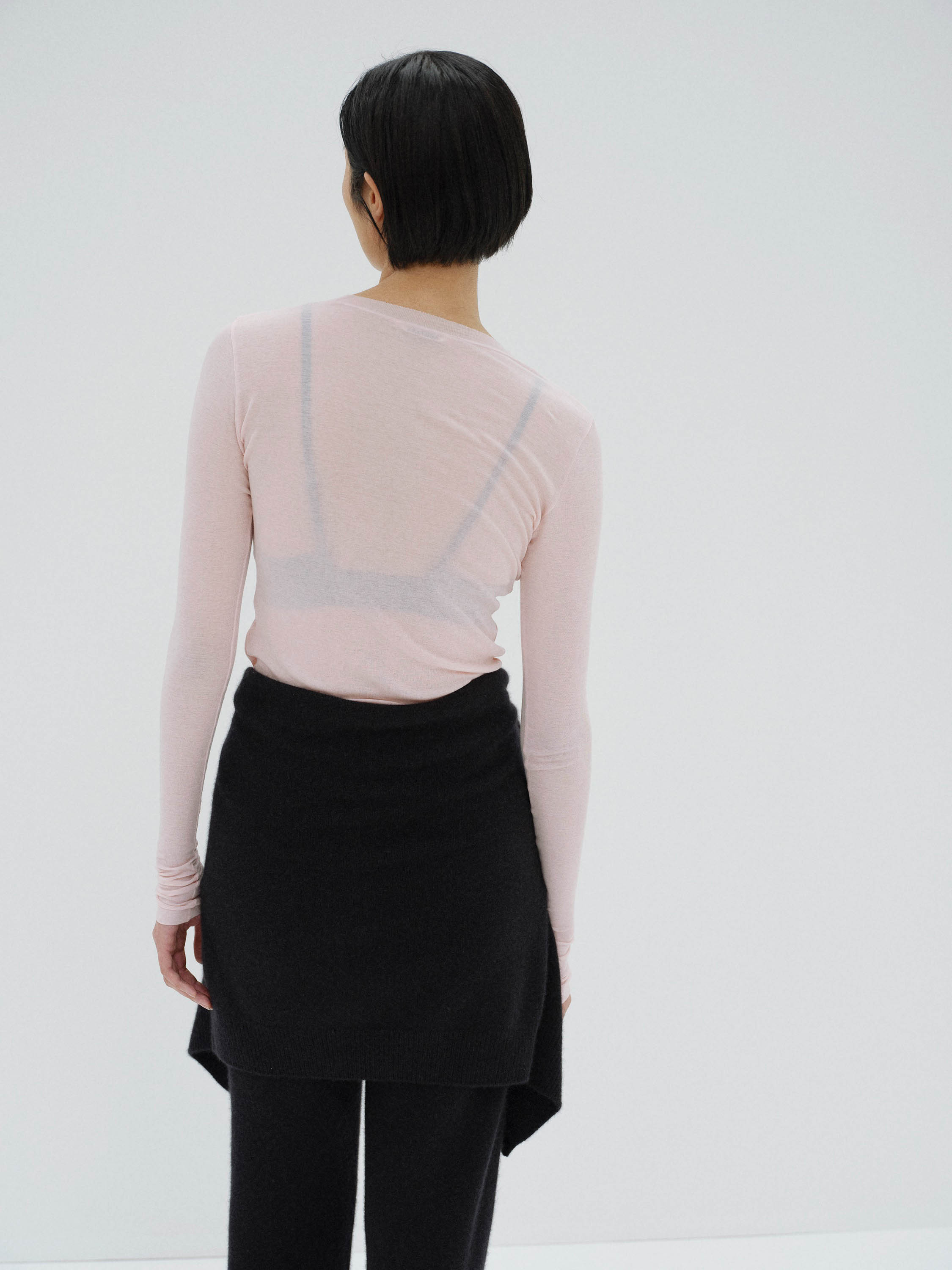 극도로 얇고 가벼우며, 은은한 비침이 돋보이는 고급스러운 질감이 특징입니다.