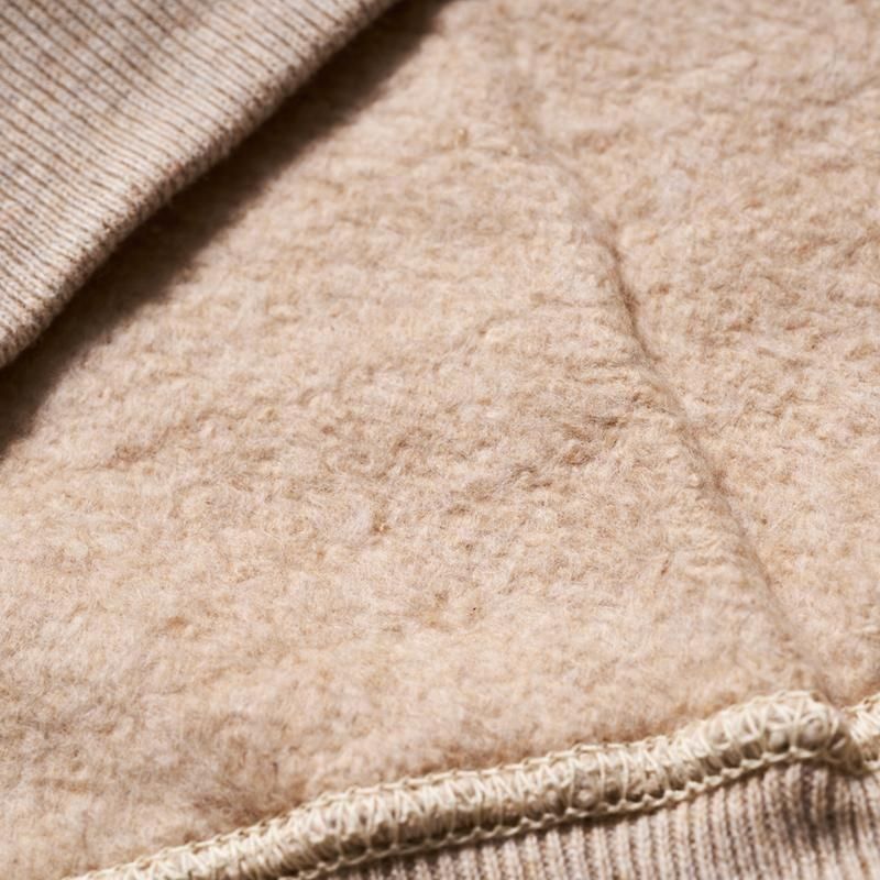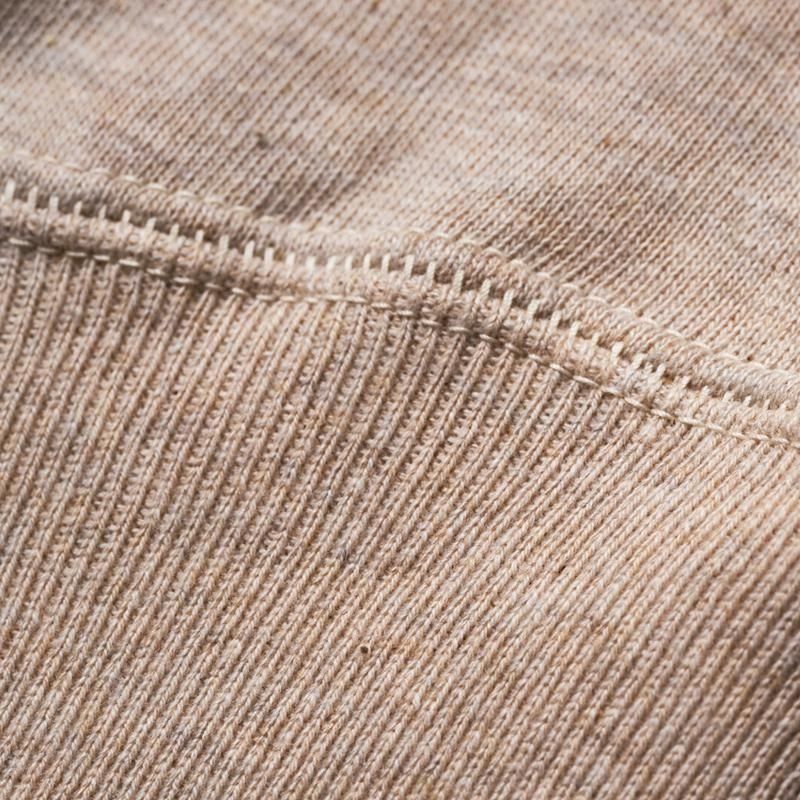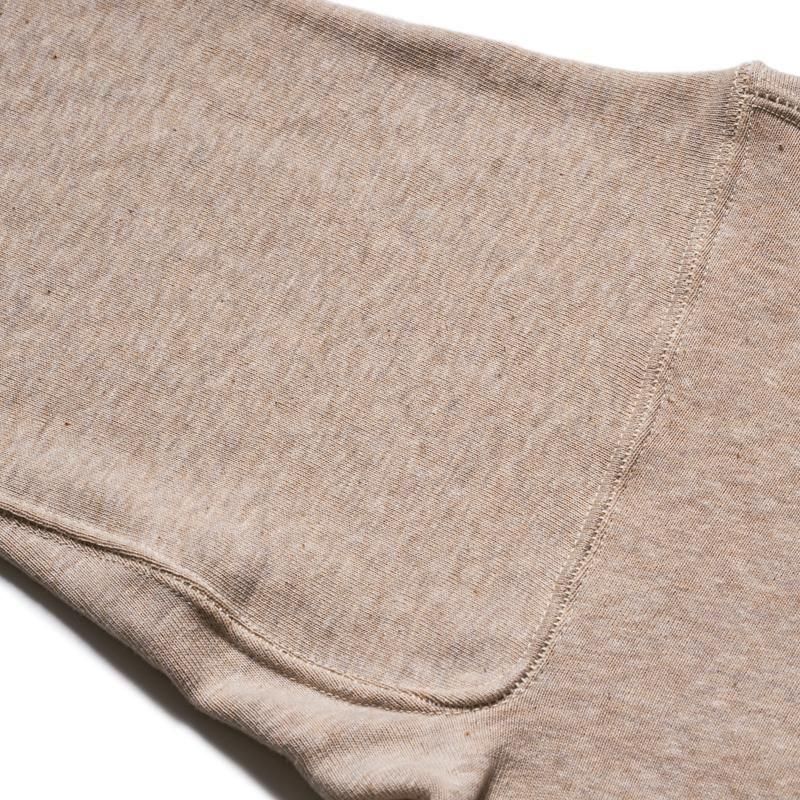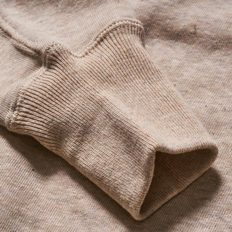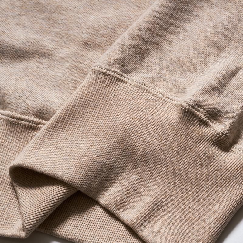 목 주위에는 신축성이 풍부한 V 자 후라이스를 전후로 배치한 네 개의 바늘 사양의 스웨트입니다.어깨에서 수직으로 떨어지는 소맷단의 셋트인 슬리브는 다소 솔리드한 느낌을 주는 심플한 디자인입니다.