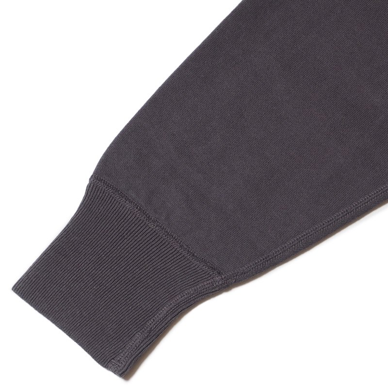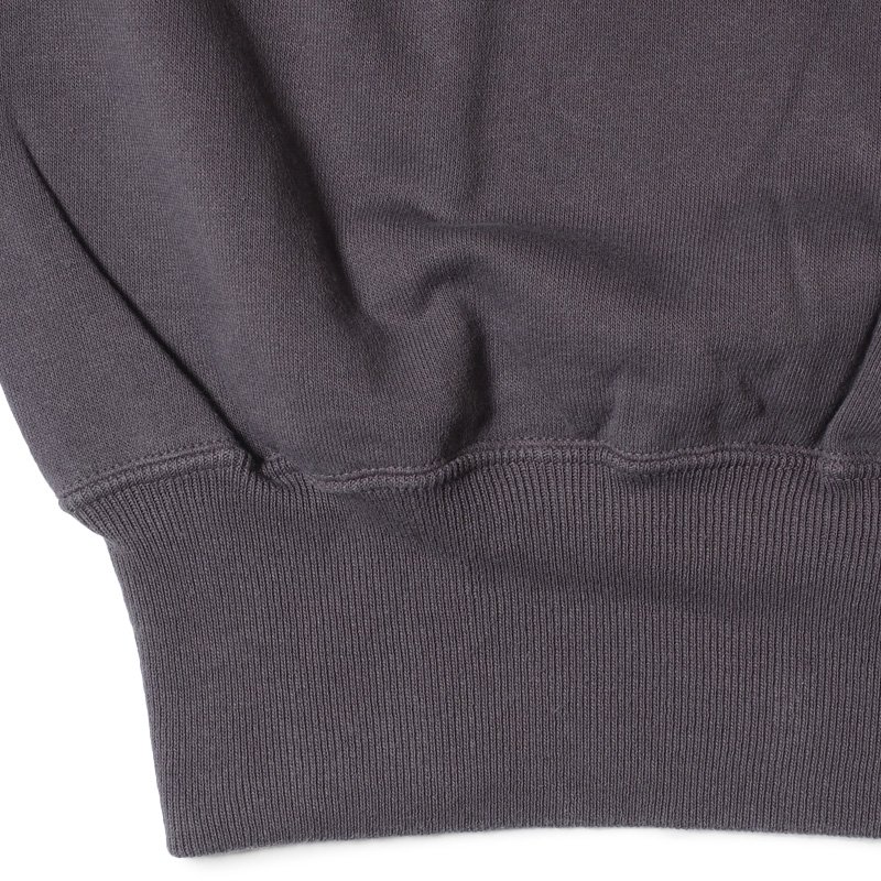 세컨드핸드 시리즈의 스웨트 셔츠로, 오래된 빈티지 스웨트를 철저하게 연구하고 재현한 제품입니다. 세탁과 건조를 반복하면서 자연스럽게 변형된 기모 안감과, 오직 시간의 흐름으로만 형성되는 페이드 컬러는 “새 제품이면서도 빈티지 감성 그대로”라는 콘셉트를 구현한 제품입니다. 다소 여유 있는 가슴 폭으로 착용 시 특유의 드레이프 실루엣을 느낄 수 있습니다.
