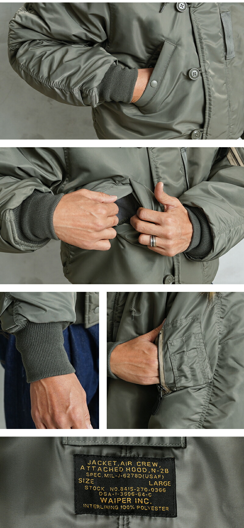 웨이퍼 미군 N-2B 빈티지 플라이트 재킷