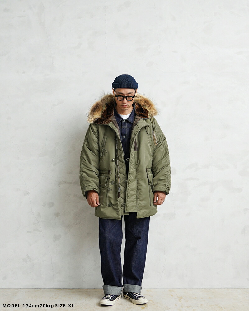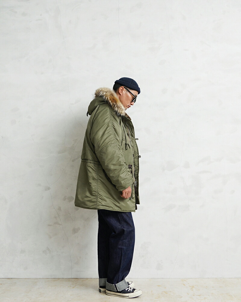 N-3는 1945년부터 1950년대 초까지 미 공군 항공 승무원을 위해 제작된 플라이트 자켓입니다. N-3B와 비교하면, 전면 플랩이 밑단 가까이까지 내려오는 구조와 외부로 노출된 소매 리브가 큰 차이입니다. 이번 시즌에는 오리지널 실루엣을 보다 충실히 반영하면서도 현대적 체형에 맞춘 패턴으로 리뉴얼되었습니다.