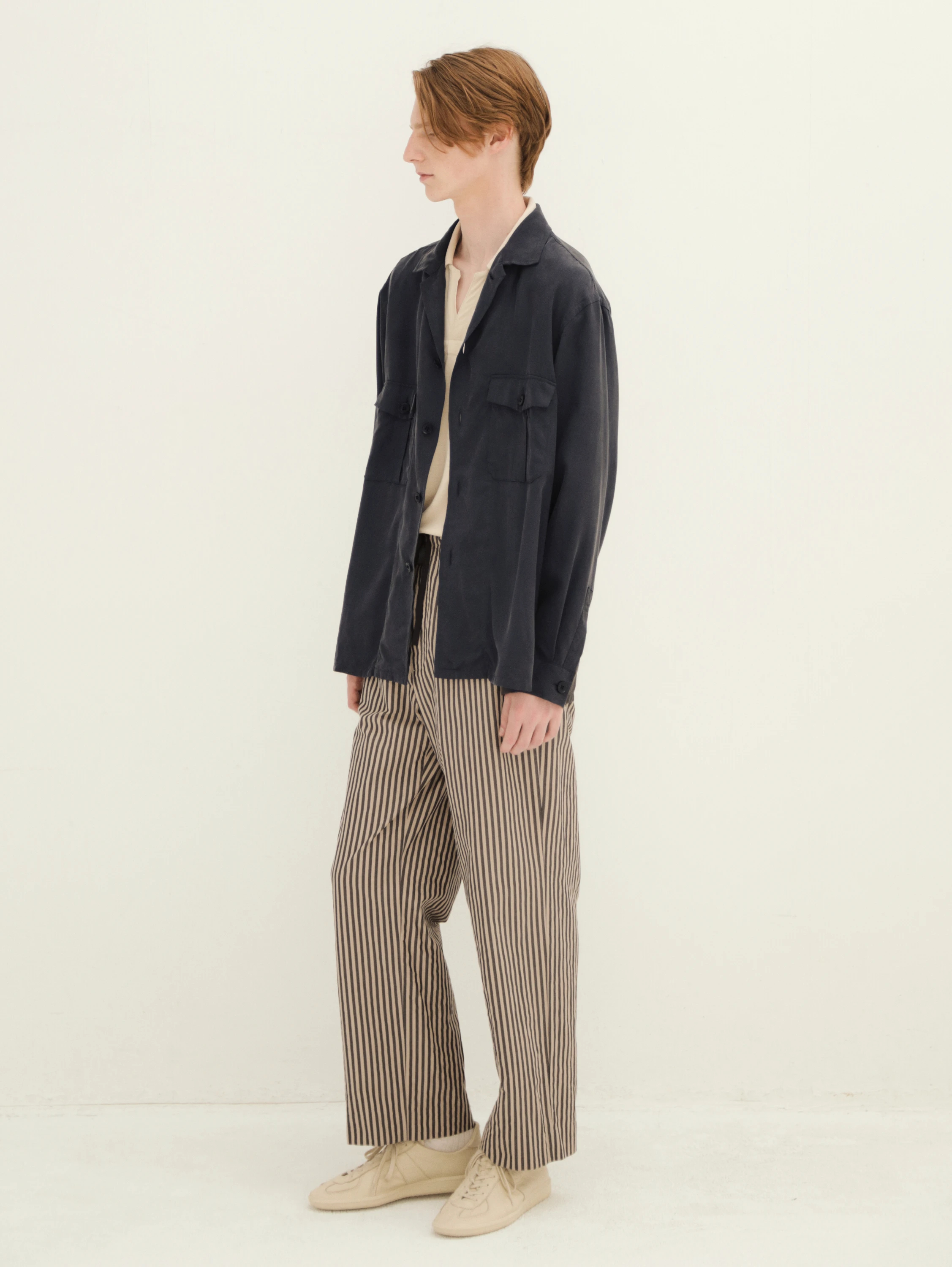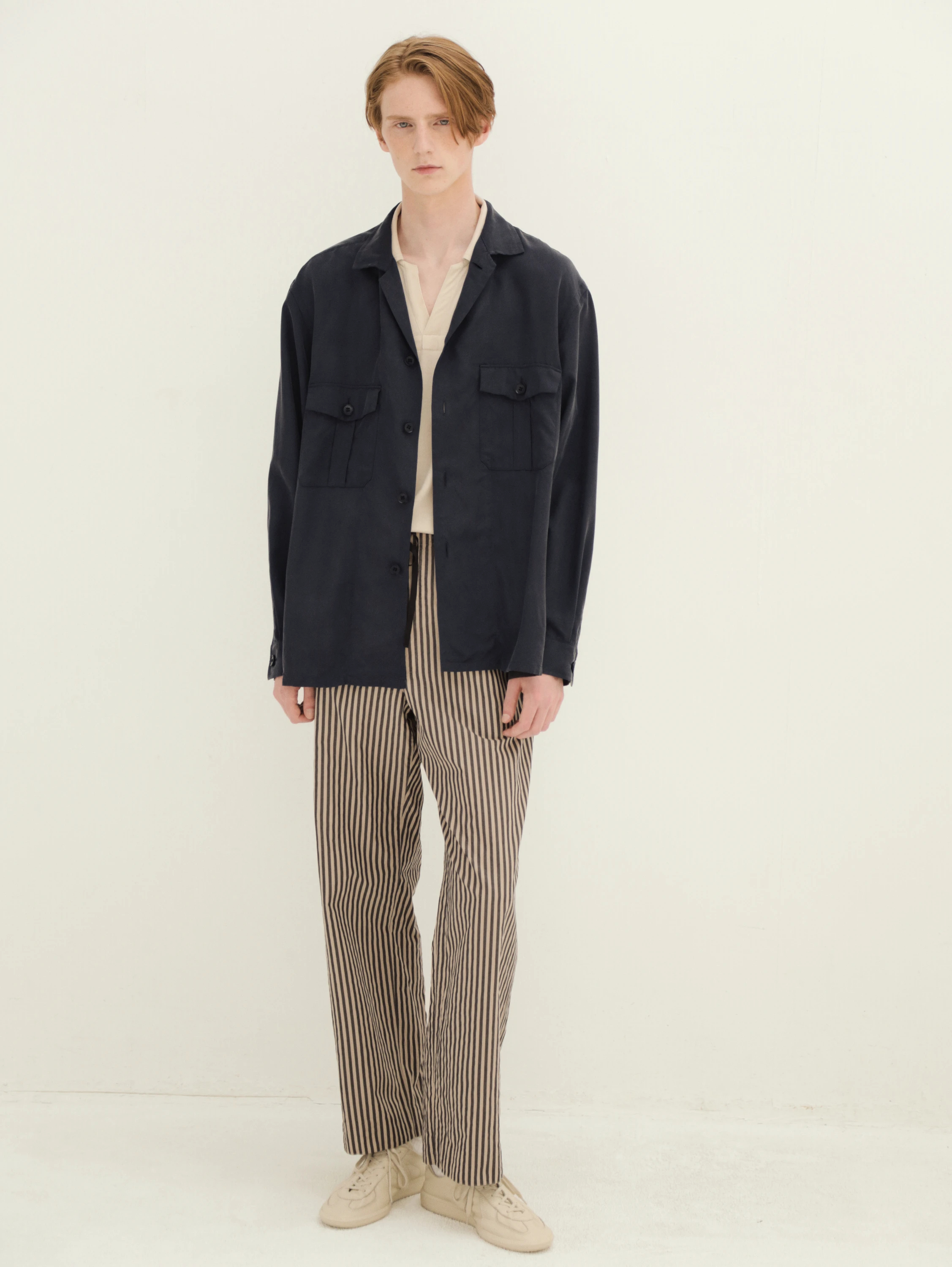 전체적으로 여유 있는 릴랙스 핏으로 제작되었으며, 전면에는 플랩 포켓 2개를 배치해 실용성과 디자인 포인트를 함께 살렸습니다.