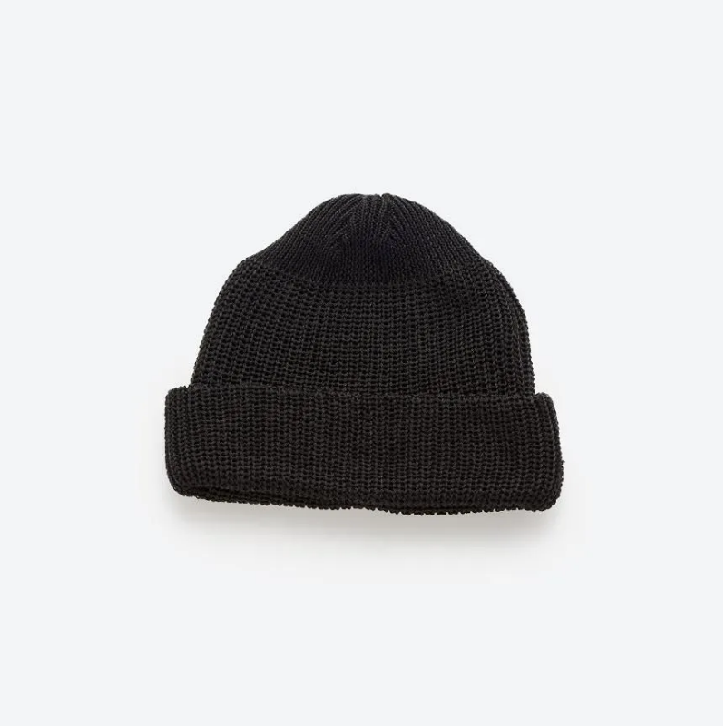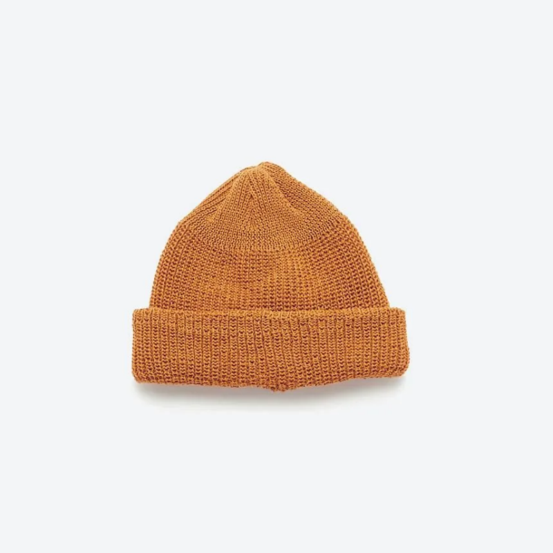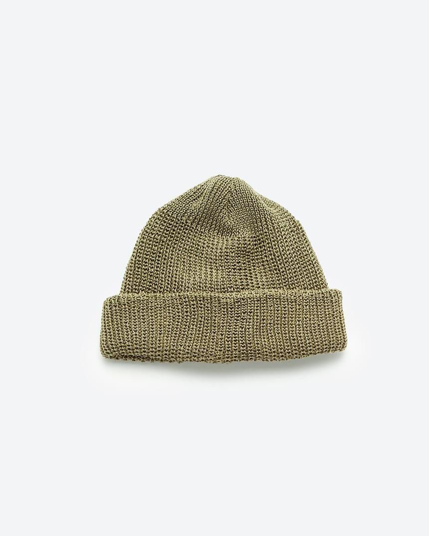 잔털이 적은 코마사를 사용한 코튼 아크릴 니트 와치캡.