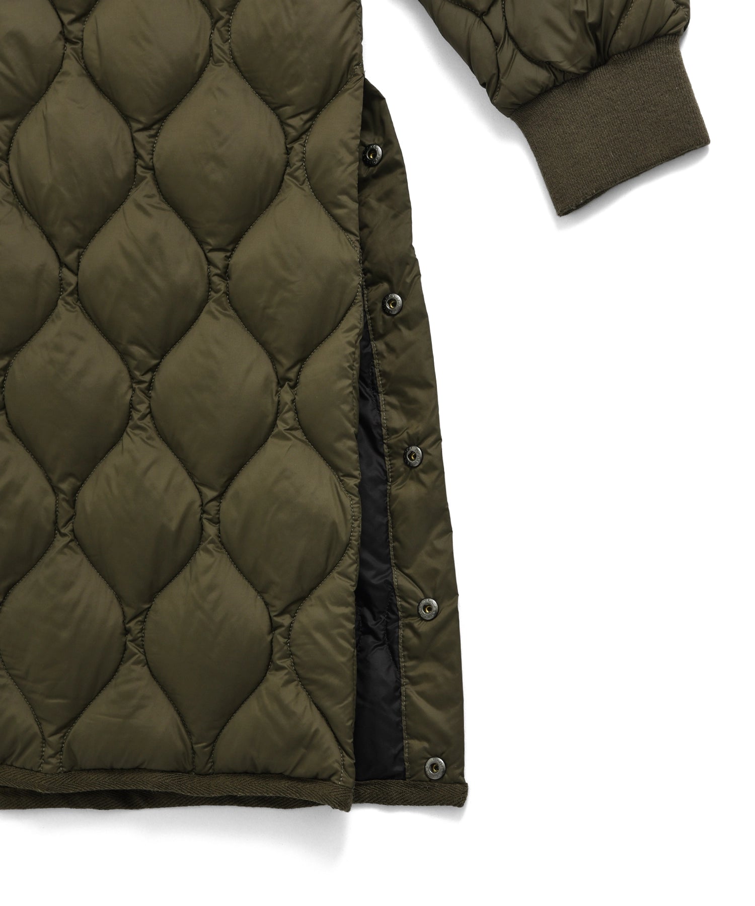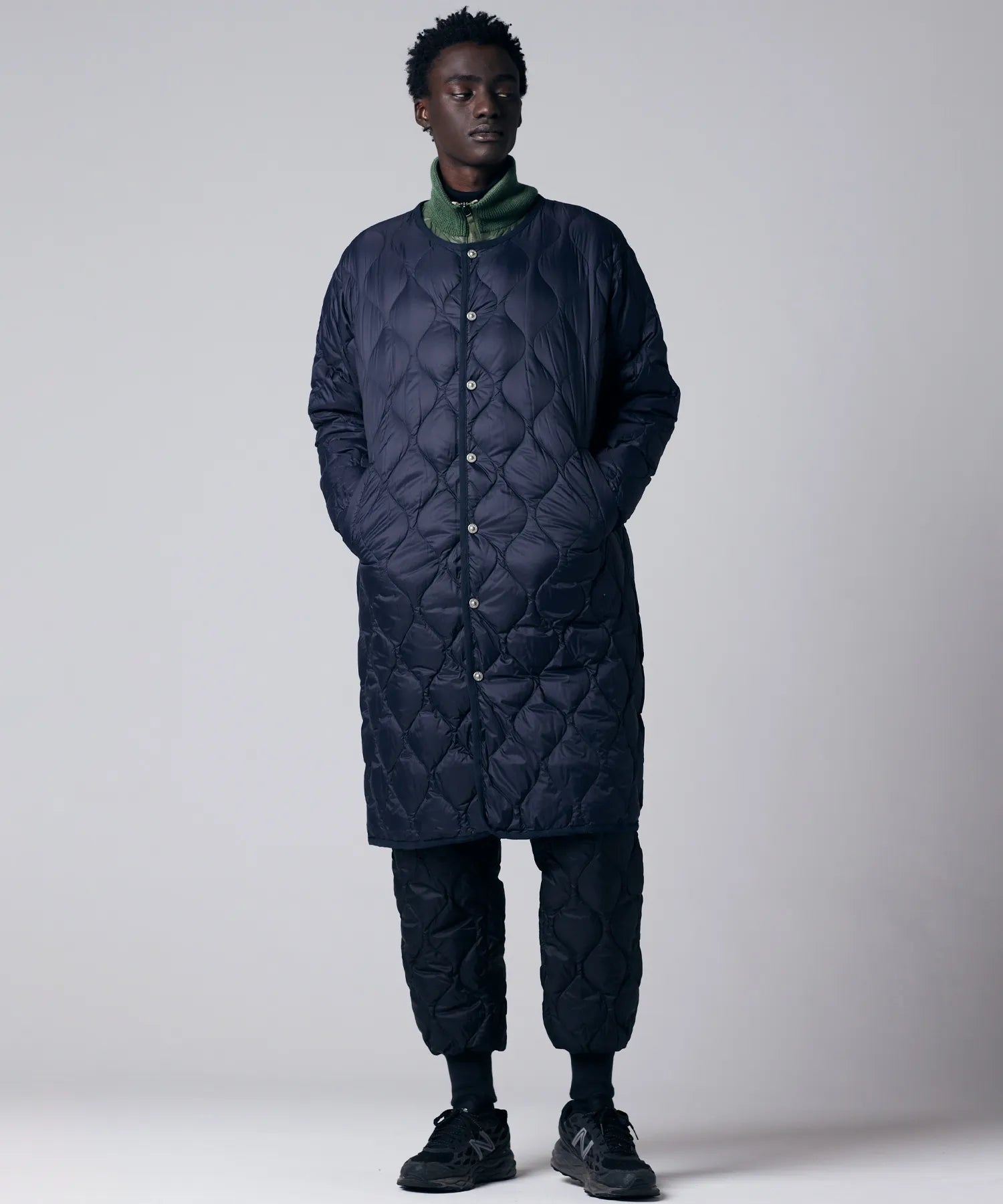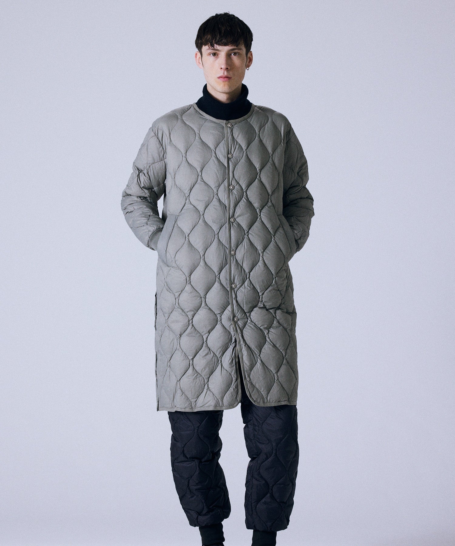 부드럽고 편안한 착용감을 중시한 여유로운 실루엣의 밀리터리 롱 다운입니다.