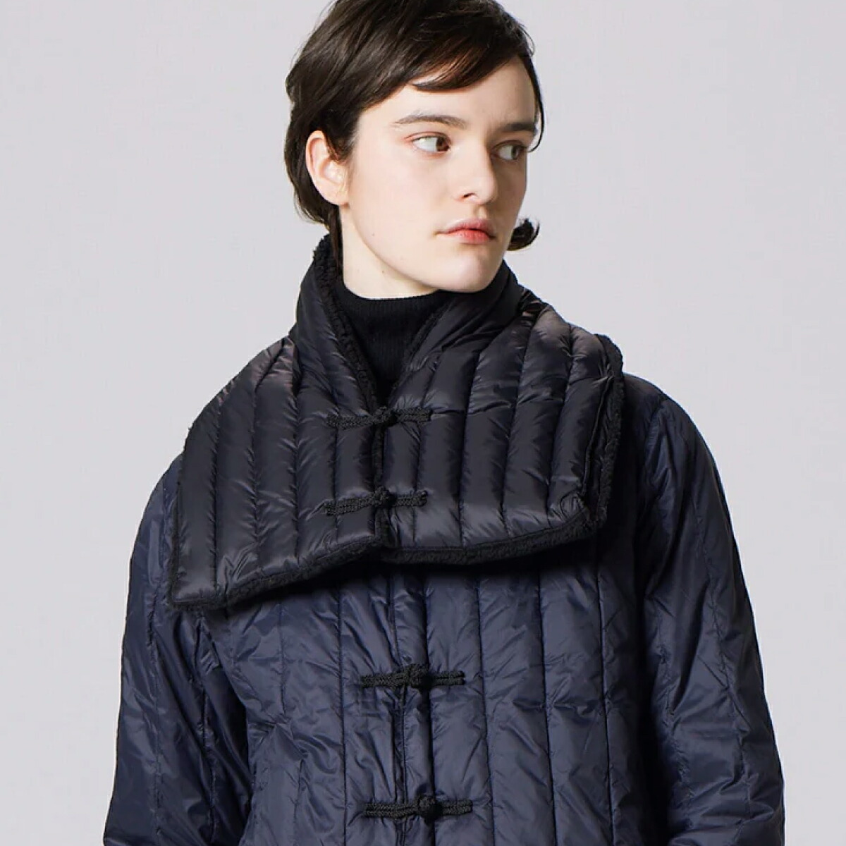 보온성이 높은 800FP 다운으로 제작되어 가볍고 부드러운 착용감입니다. 앞면에는 차이나 버튼의 세로 퀼트이며 뒷면은 부드러운 마이크로 보어로 되어 보온성이 우수합니다.
