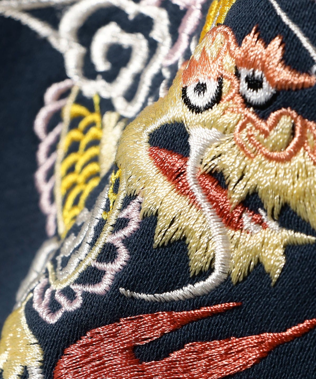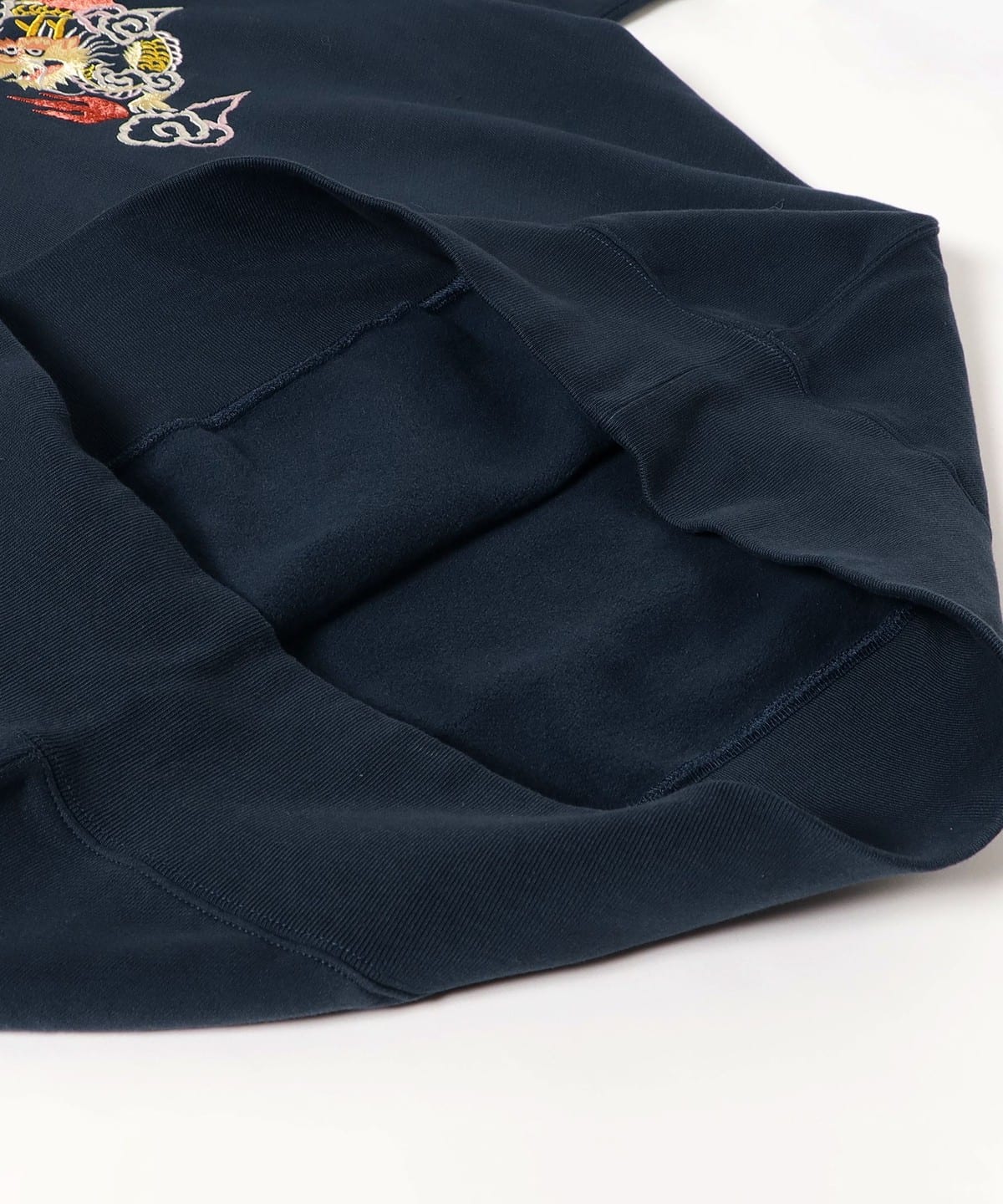 1950년대 중반 스카잔을 원형으로 삼아, 만개한 벚꽃나무에서 날아오르는 독수리를 모티브로 표현한 블랙 컬러, 1940년대 후반 스카잔을 기반으로 한 디자인으로, 일본 지도를 중심으로 구성된 ‘재팬 맵’ 패턴의 네이비 컬러의 스웨트 티입니다. 어깨와 가슴에 여유를 두어 편안하게 착용 가능한 실루엣입니다.