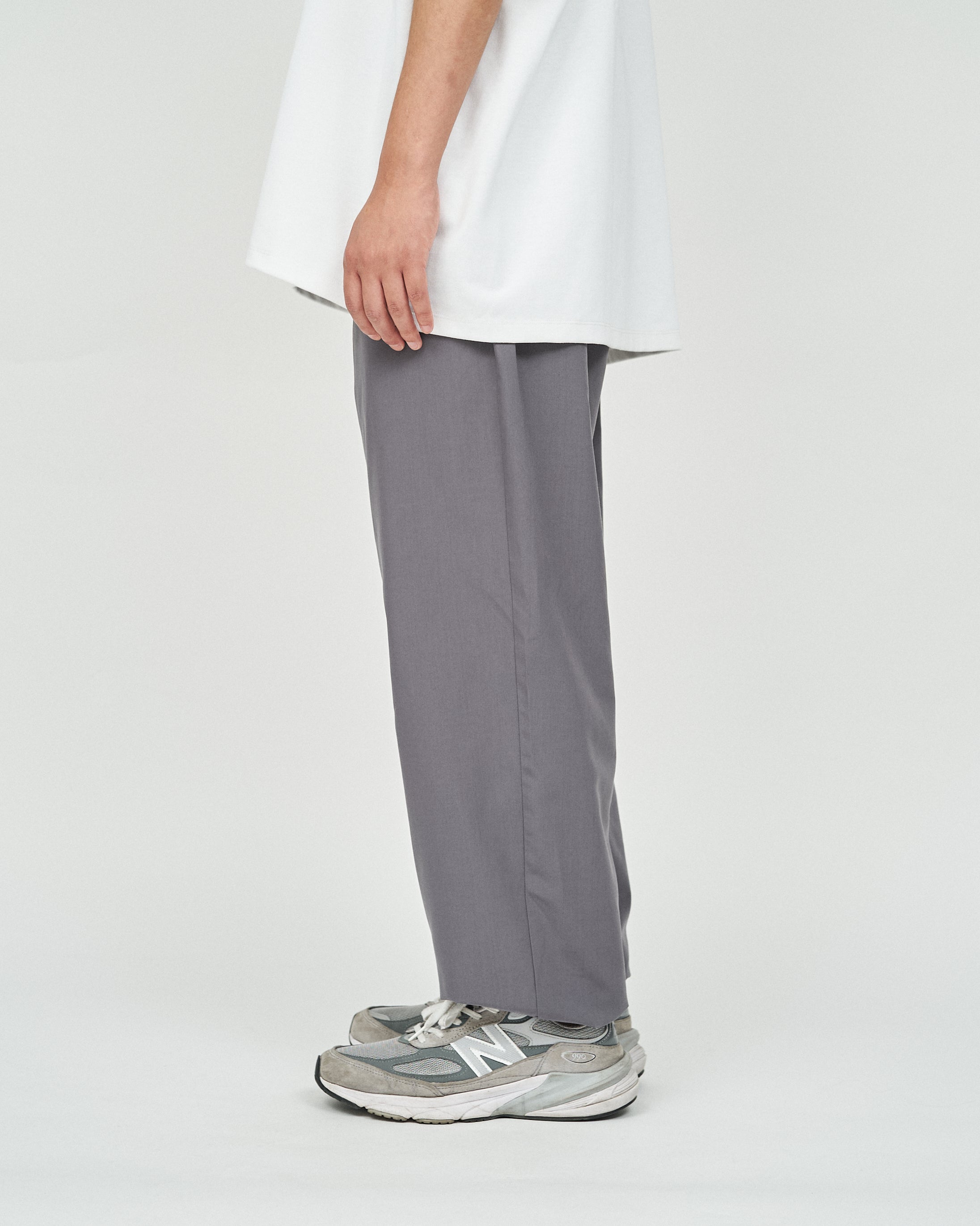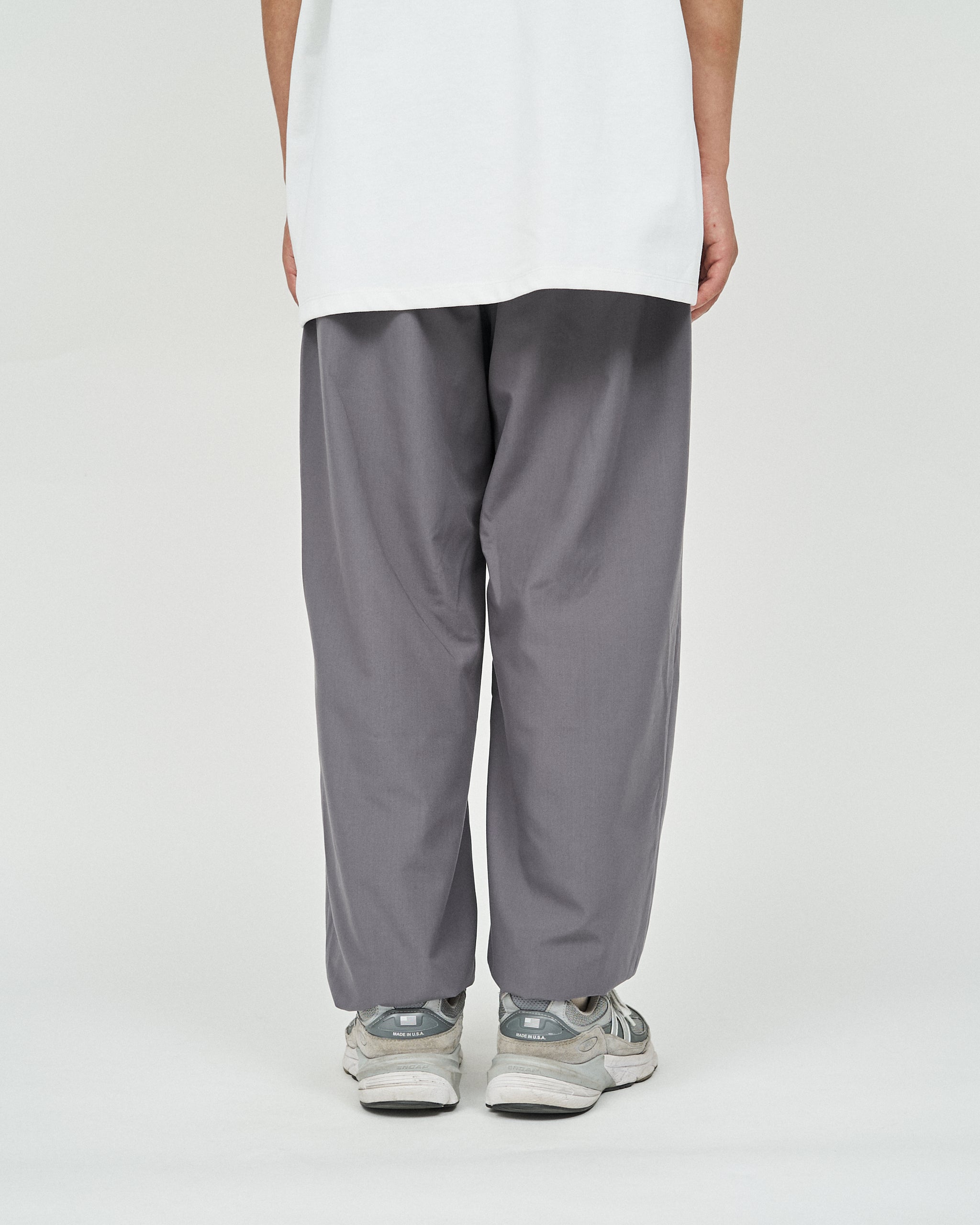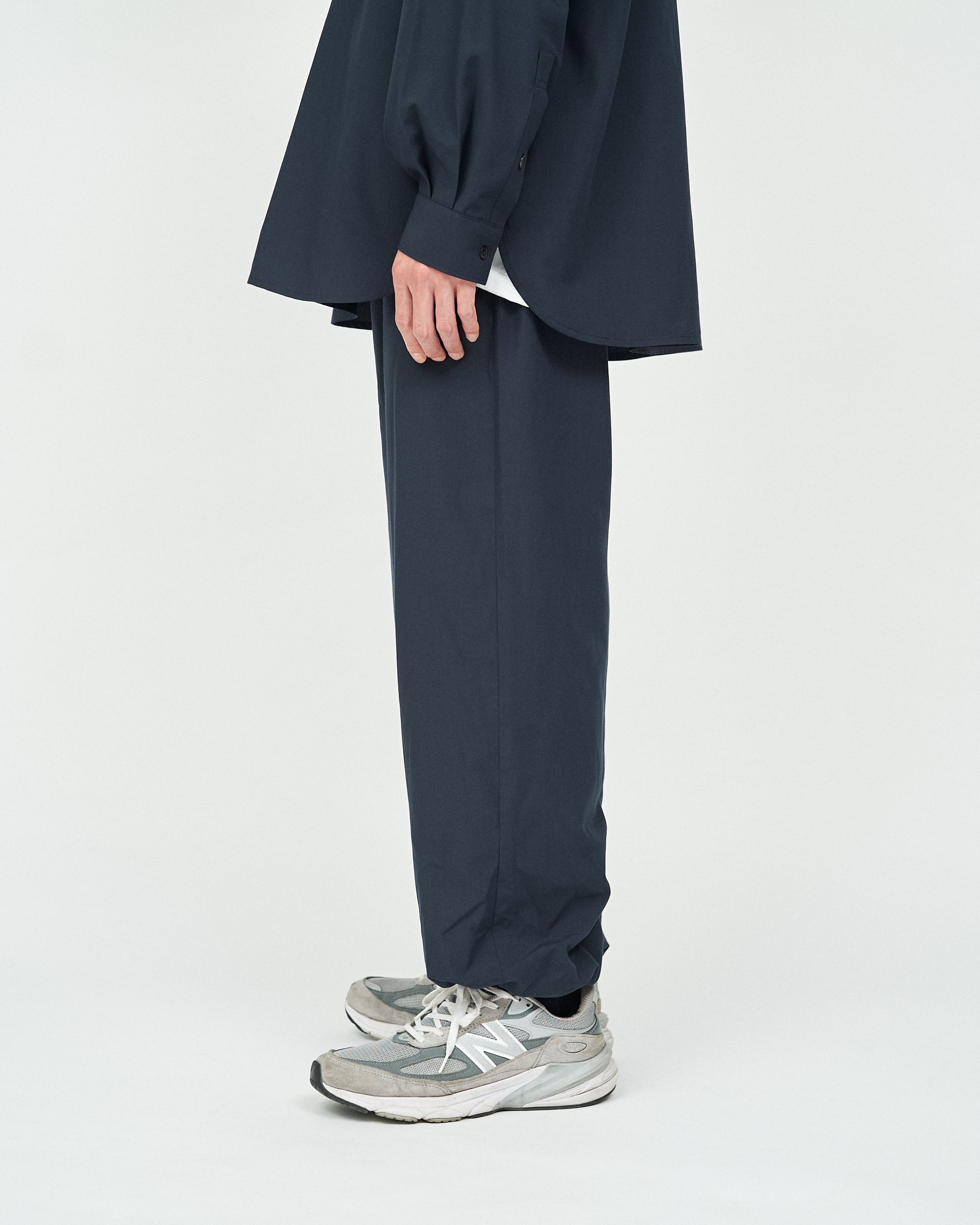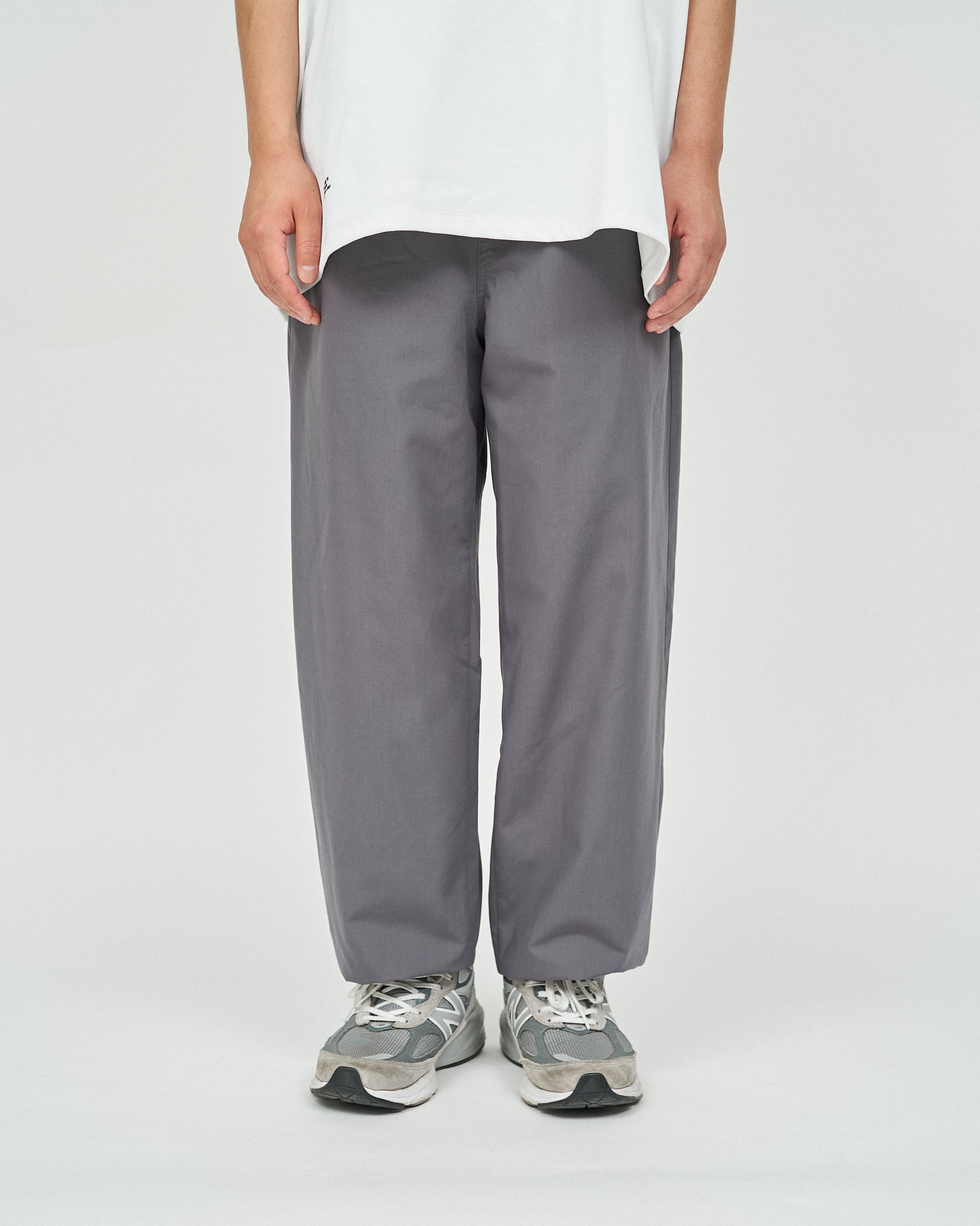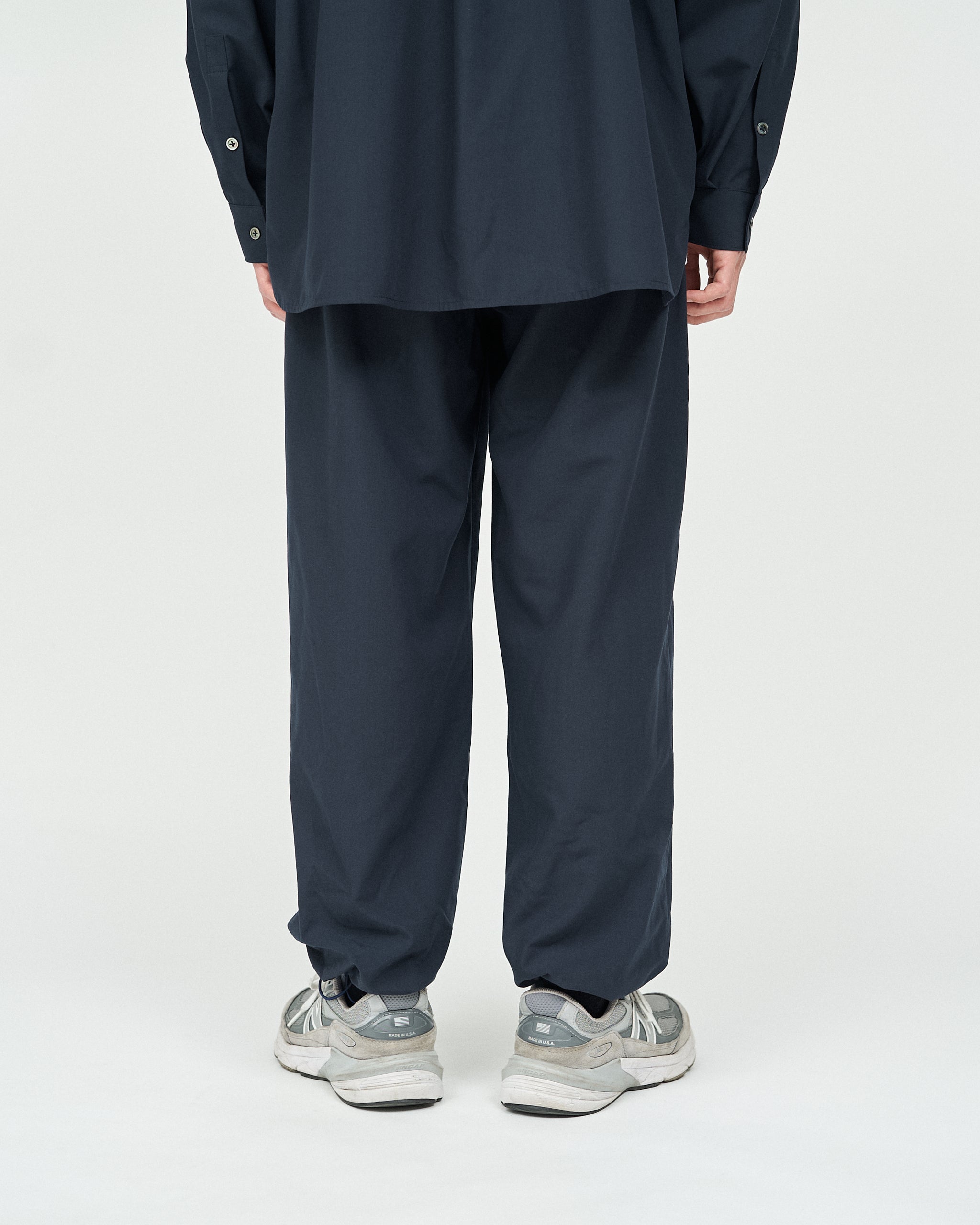 가볍고 매트한 질감의 폴리에스터 평직 원단을 사용하여 코튼처럼 부드러운 브러쉬드 마감의 팬츠