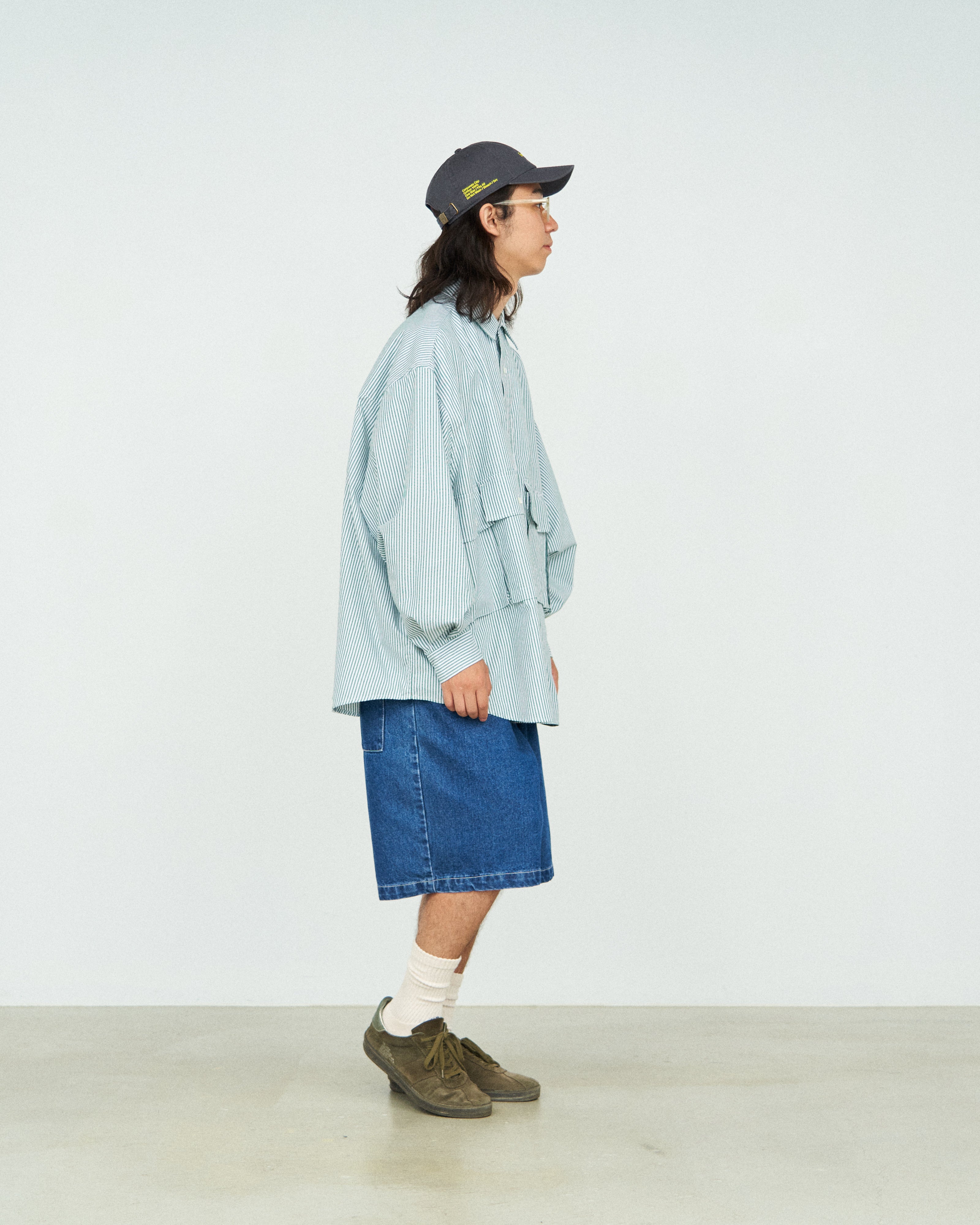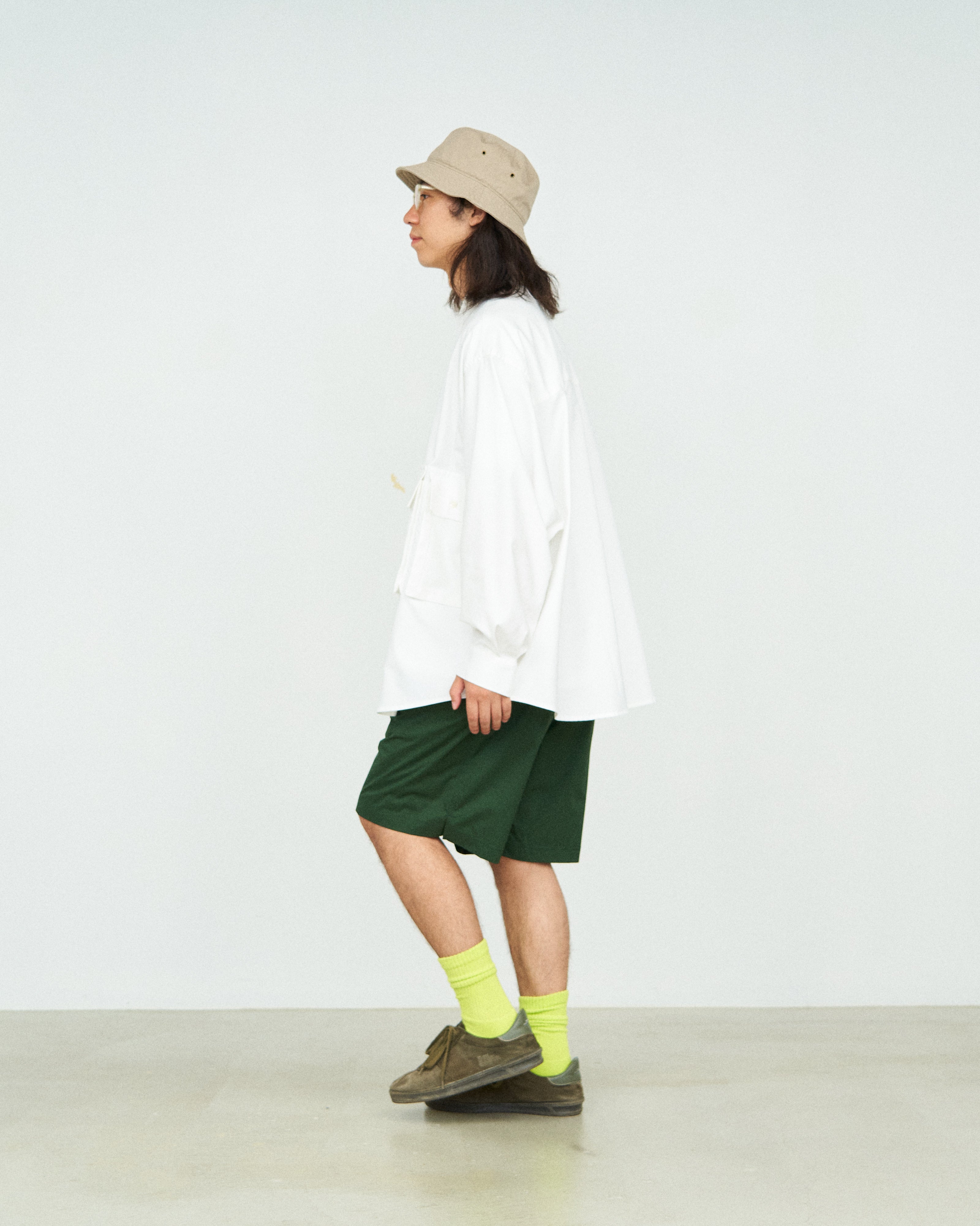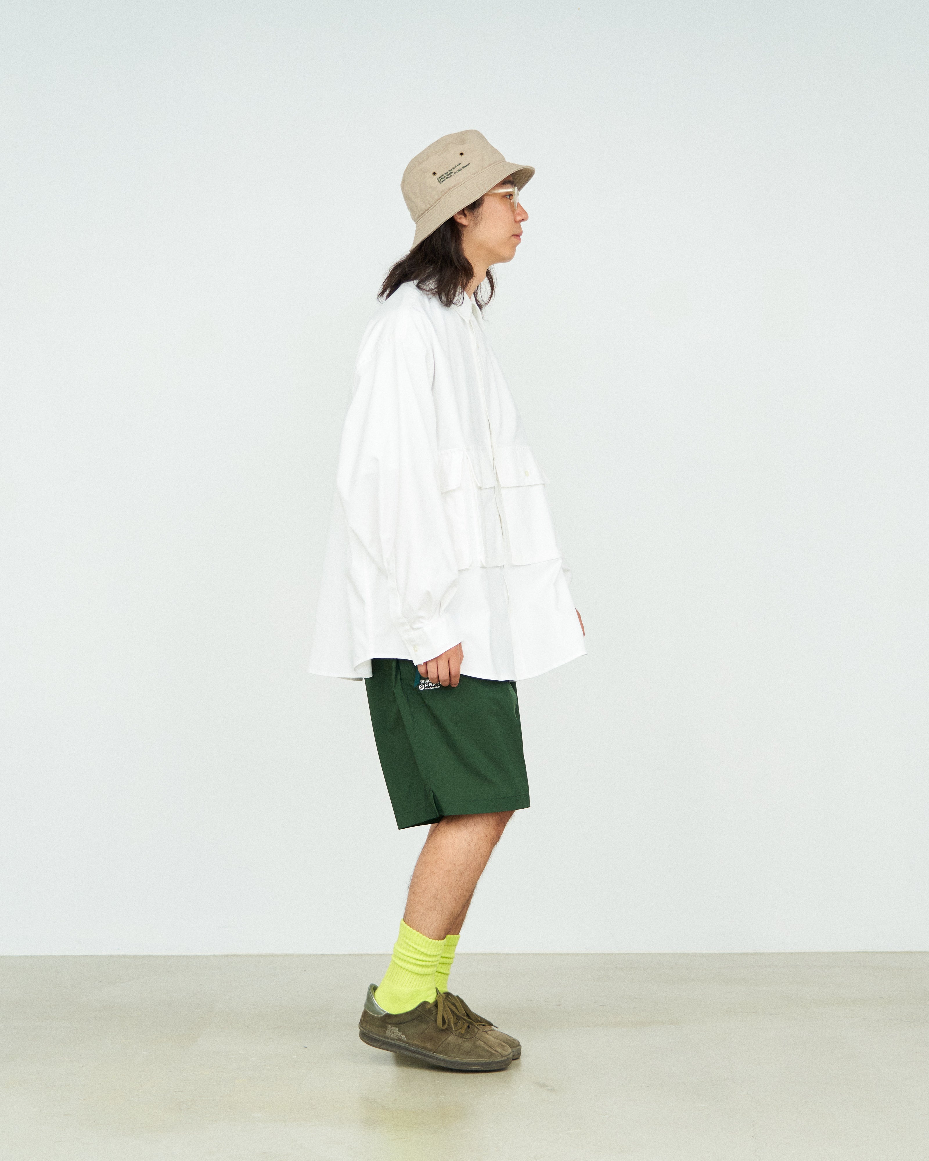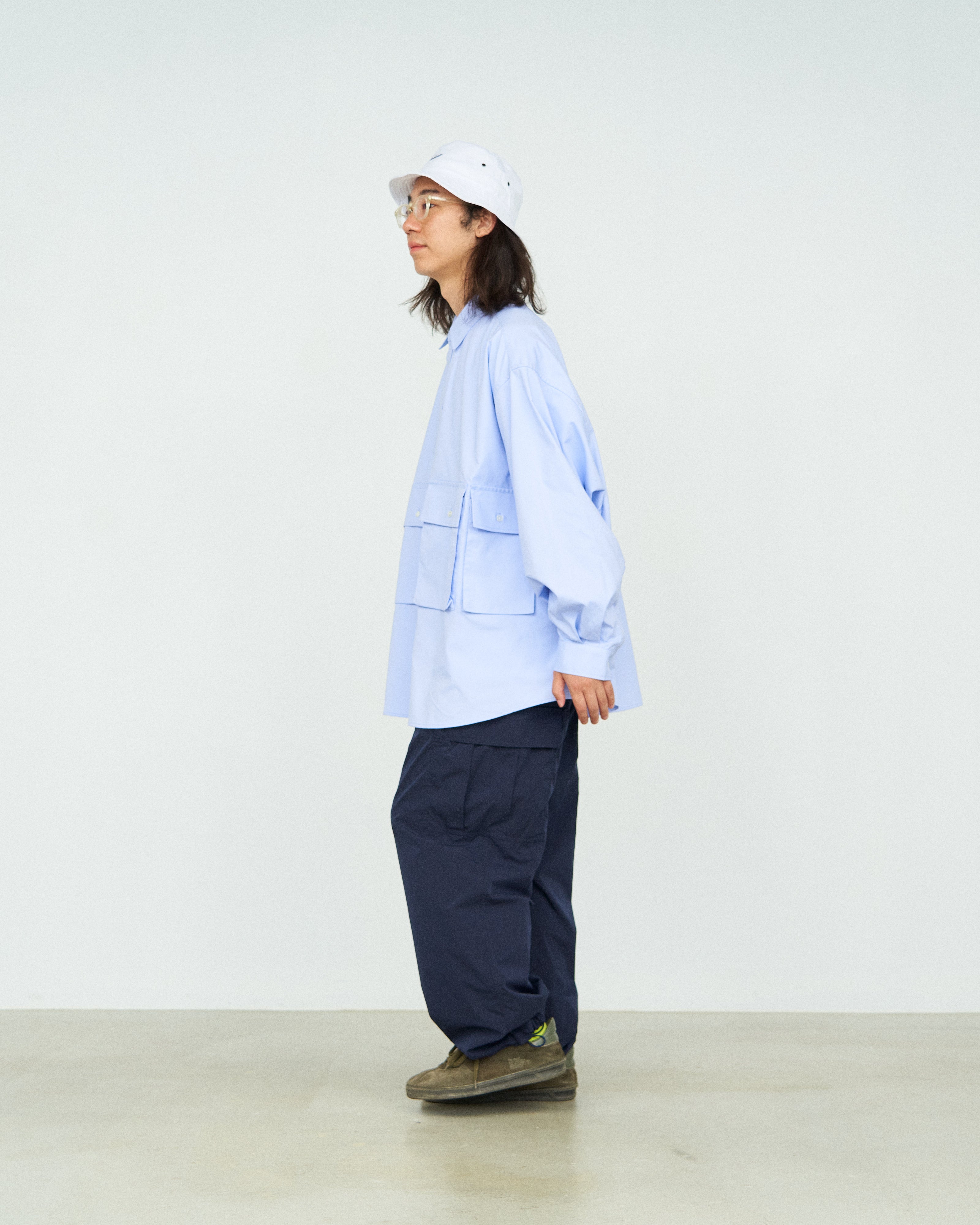 속건성이 뛰어나며 전면에 4개의 플랩포켓이 있는 디자인입니다. 넓은 몸통과 팔, 드롭숄더 디자인입니다.