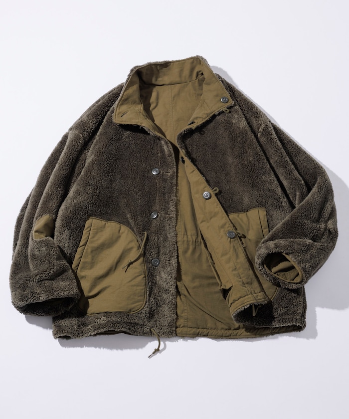 겉면은 플랩포켓이 있는 밀리터리 디자인이며 반대면은 슬래시 포켓이 있으며 보아플리스 소재로 보온성이 우수합니다.