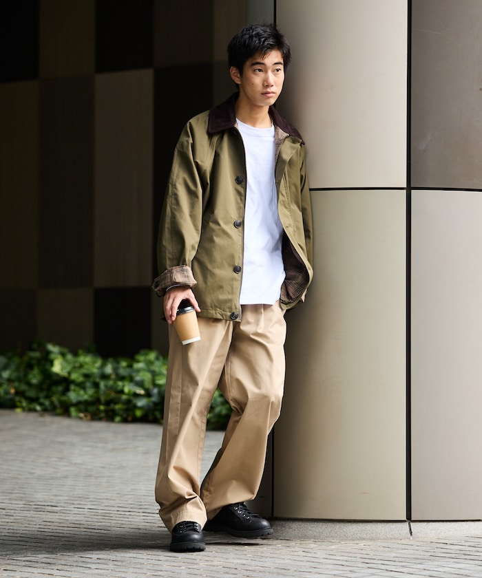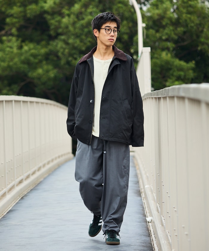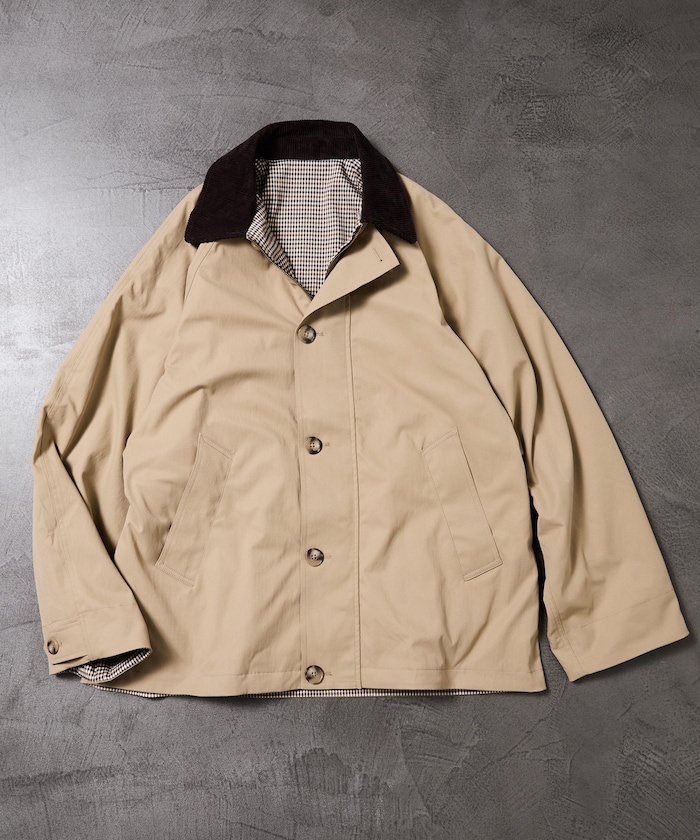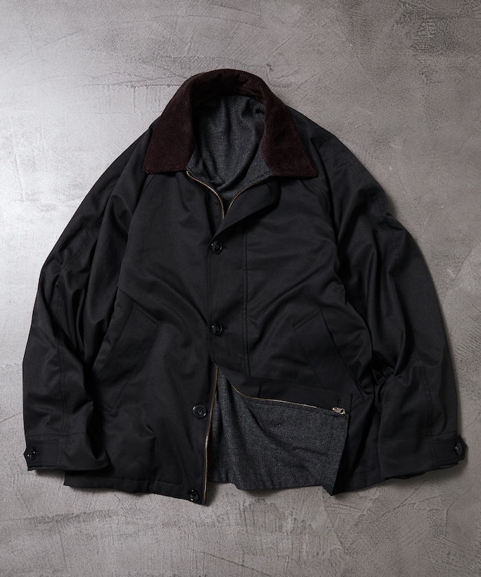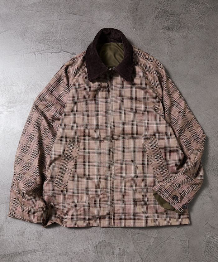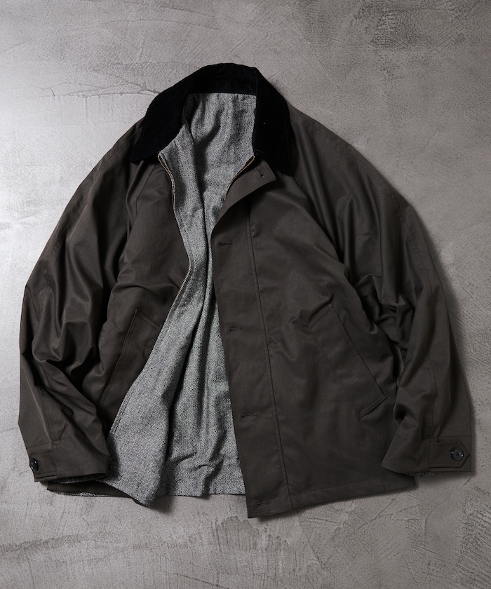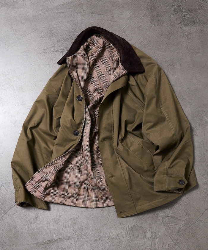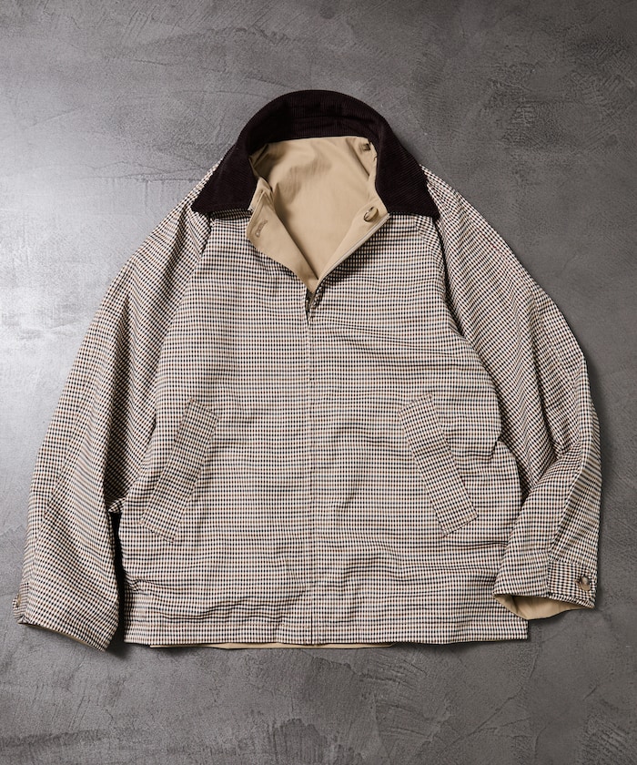 겉감과 안감의 소재감과 패턴이 달라 양면 착용 가능한 리버시블 디자인의 재킷.