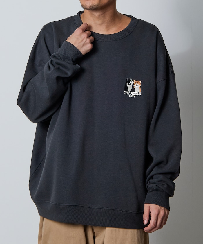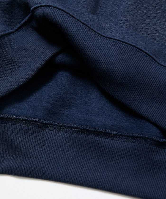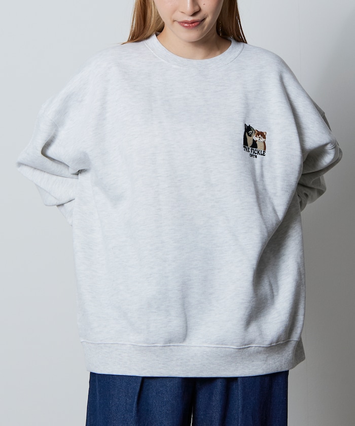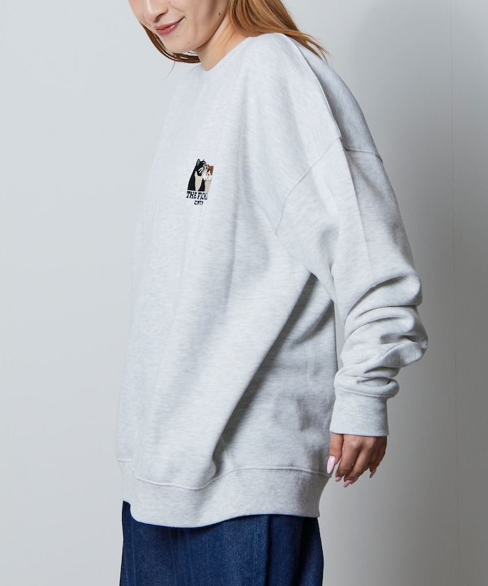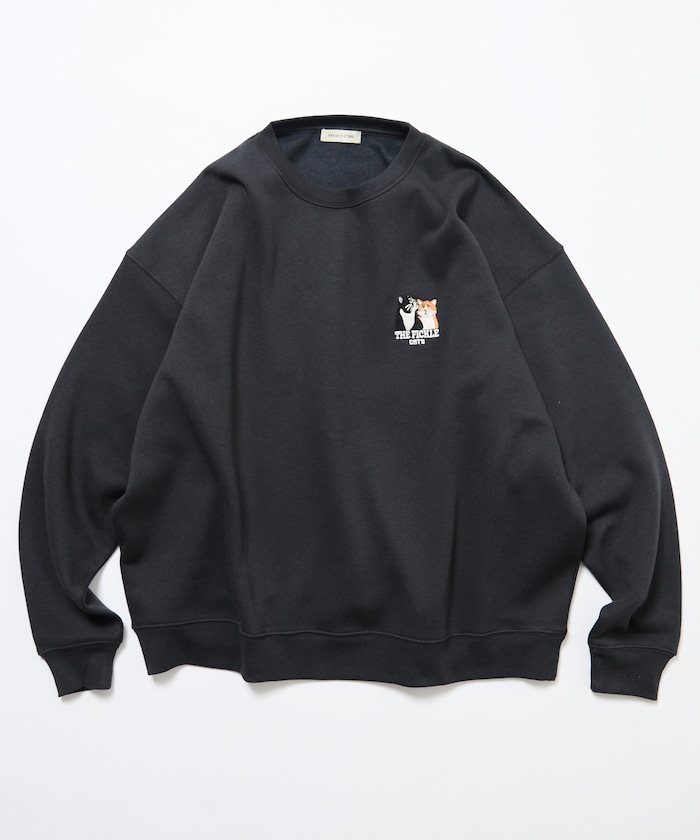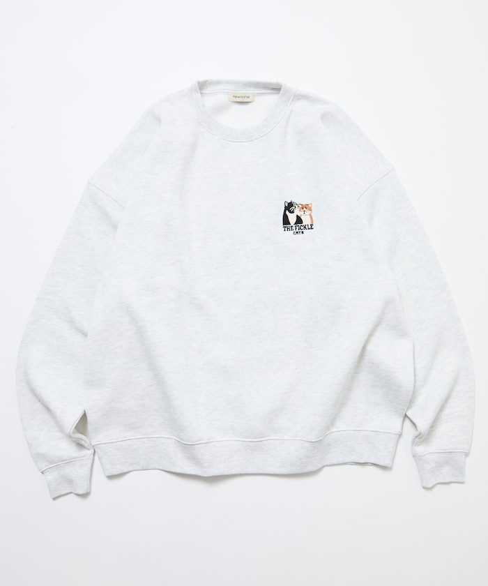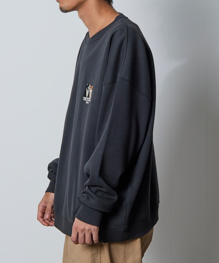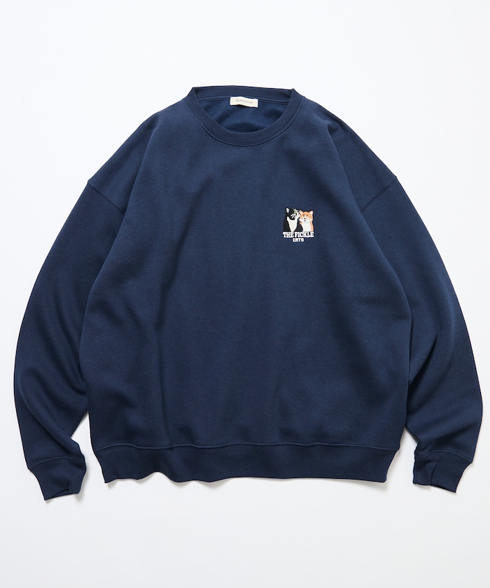 프린트, 핸드스티치 느낌의 자수, 하나의 로프를 사용한 스웨트 티. 부드러운 기모 안감 소재이며 적당한 여유가 있는 빅실루엣입니다.