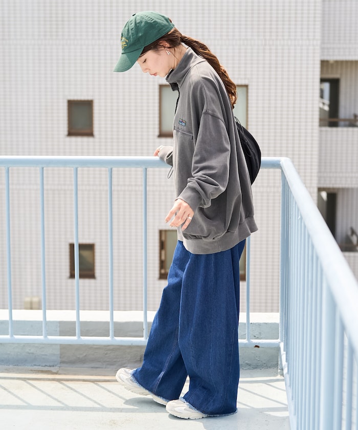 피그먼트 워싱 가공으로 빈티지한 디자인의 플리스 풀오버. 가슴 지퍼 디테일과 미니 라벨 장식 포인트가 있으며, 여유 있는 빅 실루엣입니다.