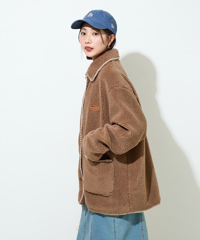 부드럽게 몸을 감싸주는 보아 코트로, 보온성과 스타일을 동시에 챙길 수 있는 시즌 아우터입니다. 넉넉하게 잡힌 큰 카라로 레트로 분위기이며 왼쪽 가슴에 패치 포인트가 있습니다. 내부 전체 안감 처리로 보온성이 우수합니다.