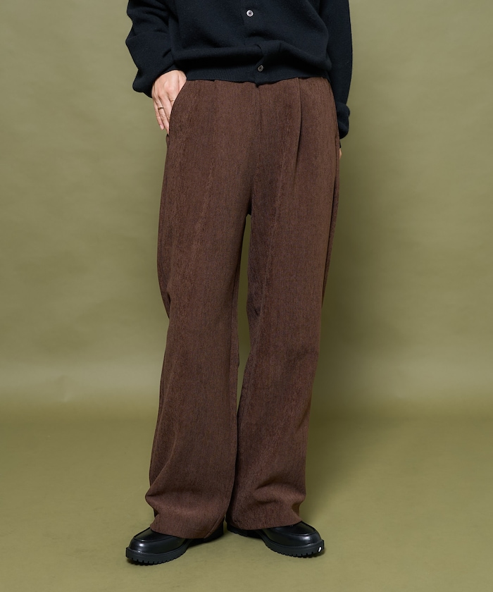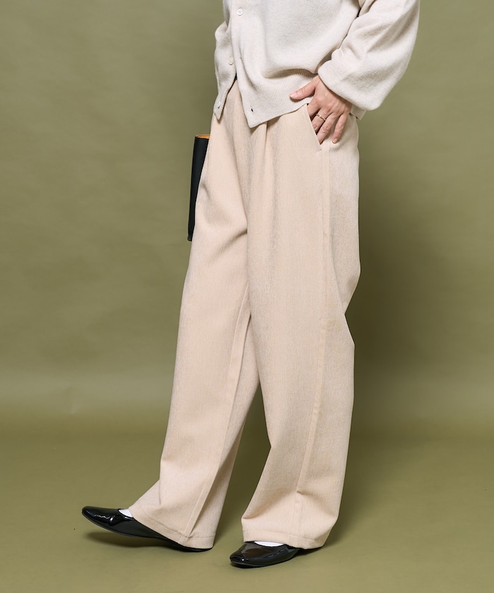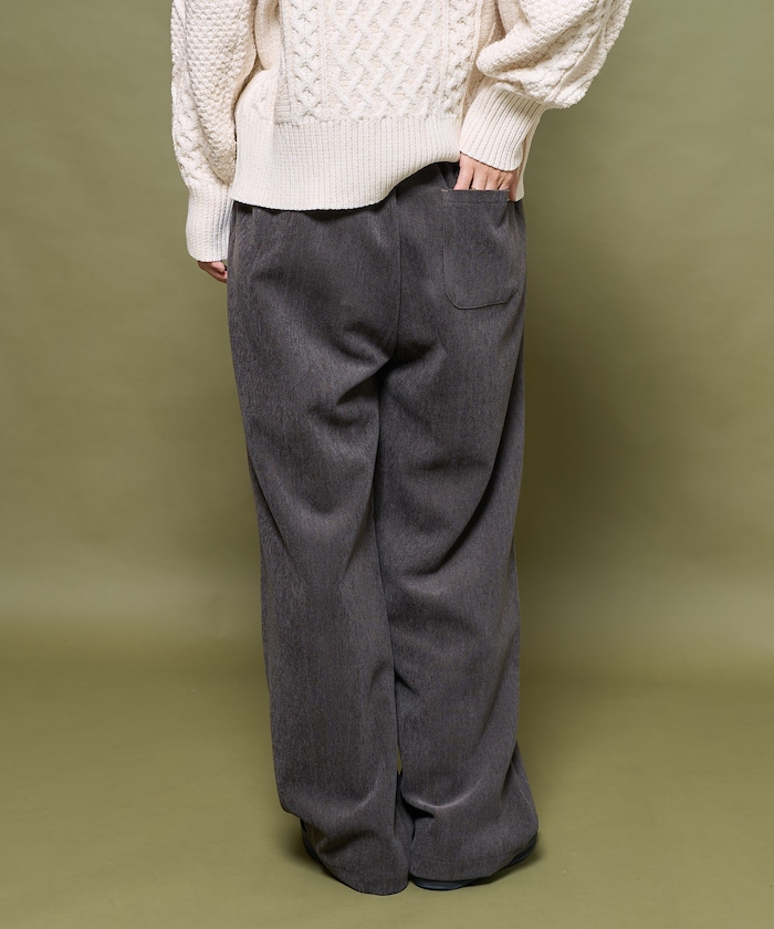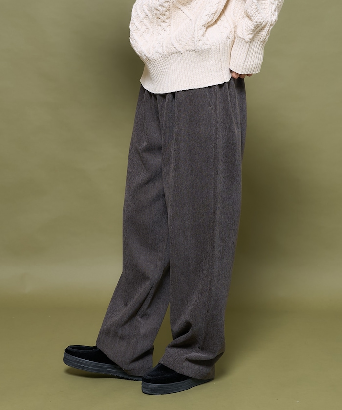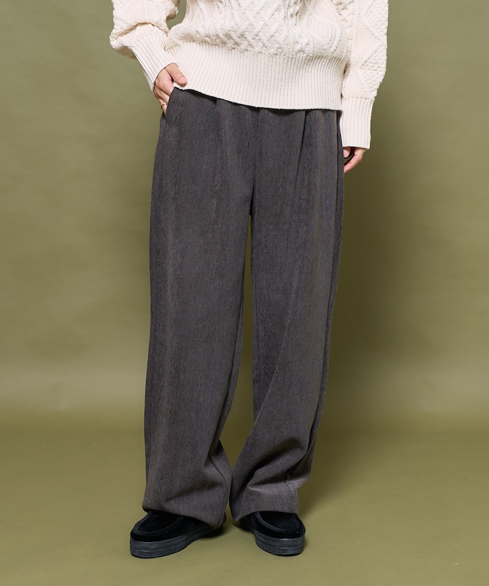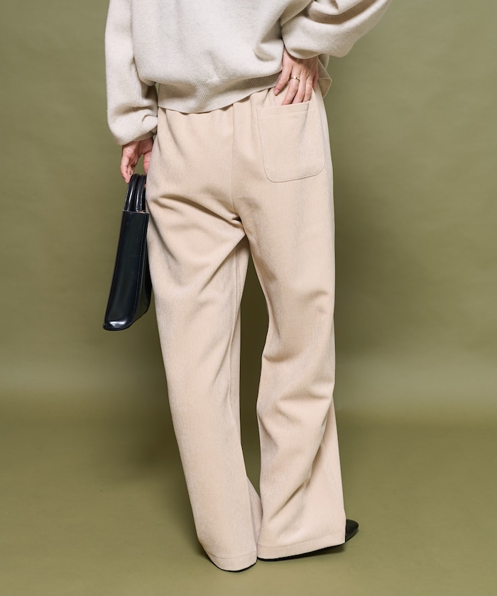 골이 없는 코듀로이 원단을 사용해, 과하게 캐주얼하지 않은 팬츠. 살짝 와이드한 실루엣과 허리 밴딩, 신축성 있는 소재 덕분에 편안한 착용감을 제공합니다.