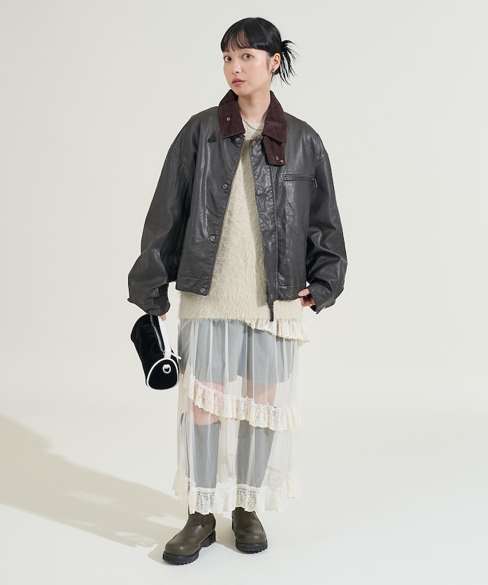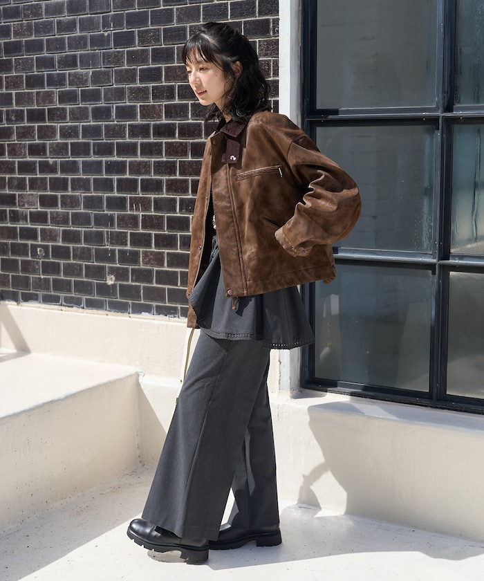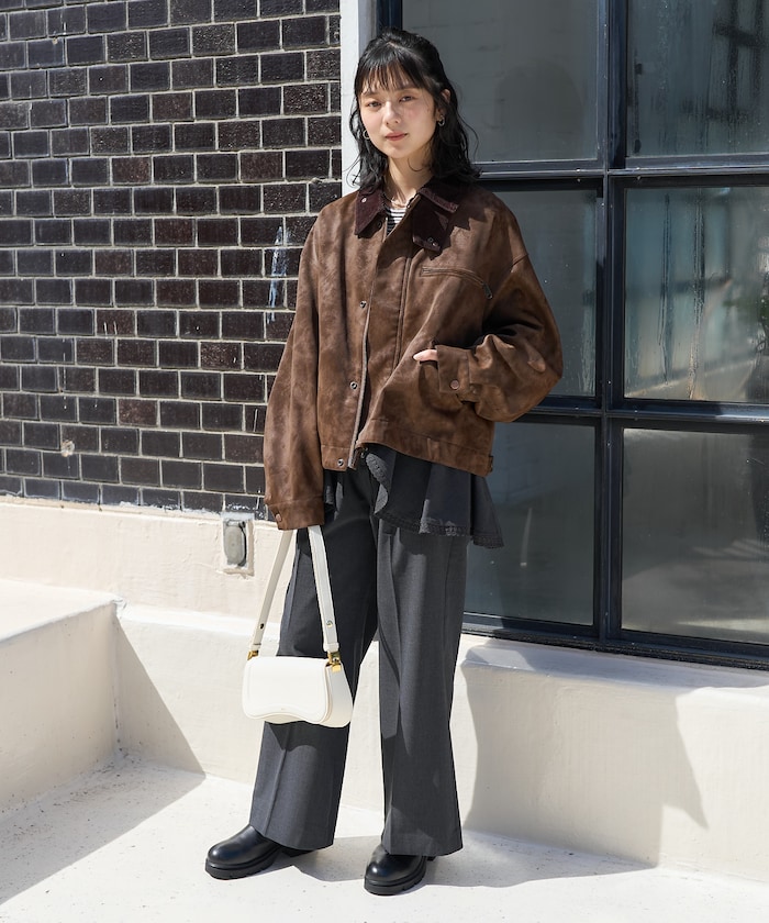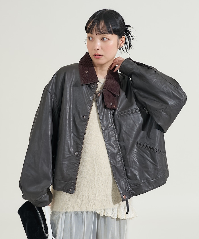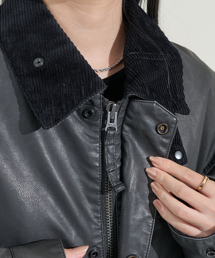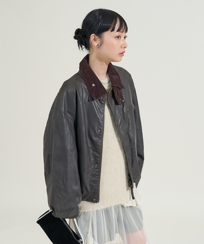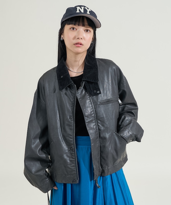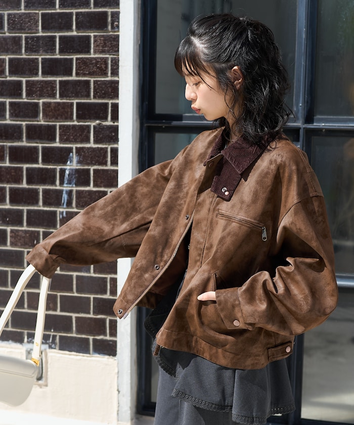카라 부분에 코듀로이 소재를 더해 오래된 빈티지 재킷 같은 블루종