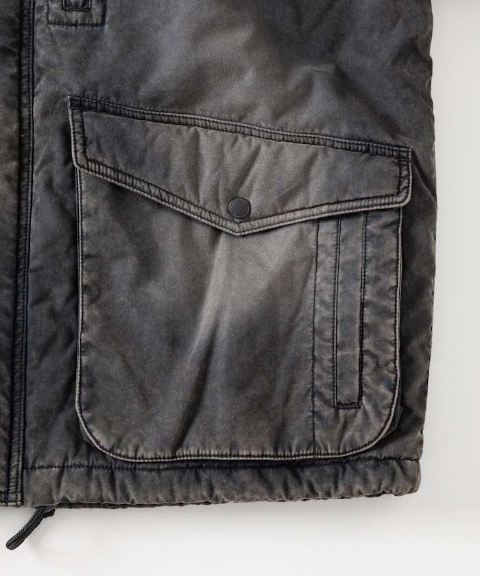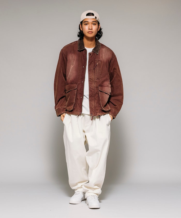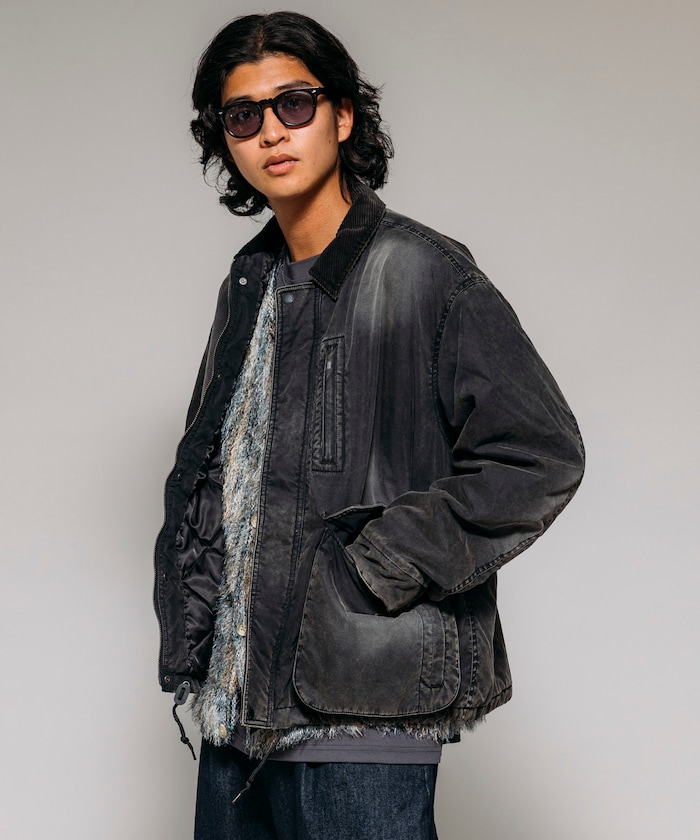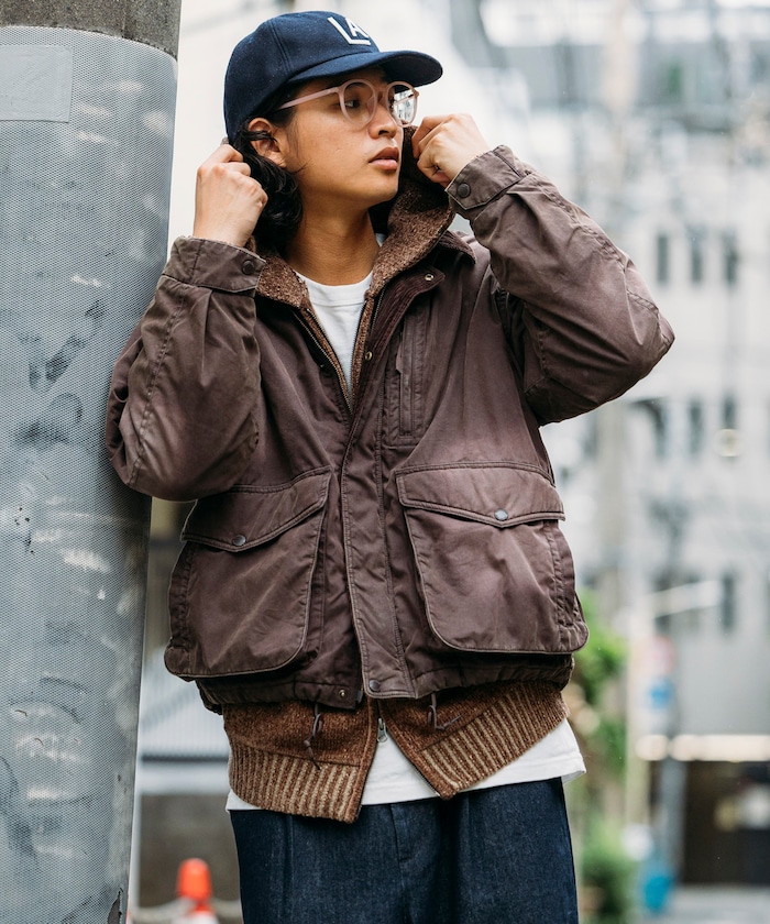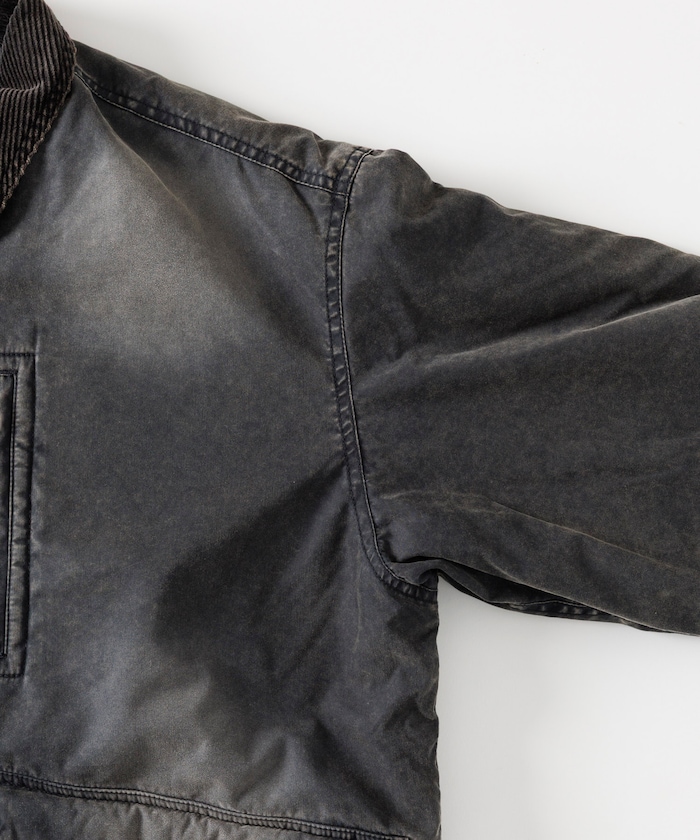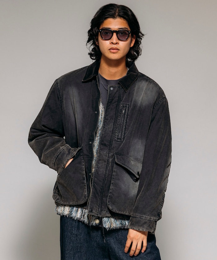 자연스러운 색바램의 빈티지 워싱 가공으로 멋스러운 분위기의 재킷. 피싱 재킷을 베이스로 한 디자인으로 양쪽 사이드에는 플랩이 달린 여유 있는 슬래시 포켓, 가슴에는 지퍼 포켓이 있습니다. 드롭 숄더와 여유로운 품의 실루엣, 짧은 기장의 박스형 디자인입니다.
