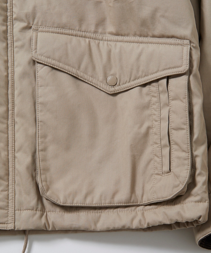 피싱재킷을 모티브로 한 디자인으로 양옆에 슬래시 포켓 겸 플랩 포켓을, 가슴에는 지퍼 포켓을 배치해 수납력이 우수합니다.