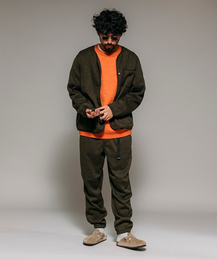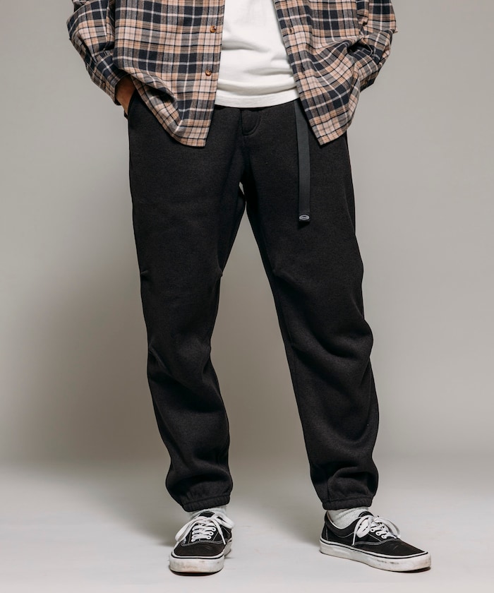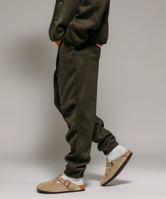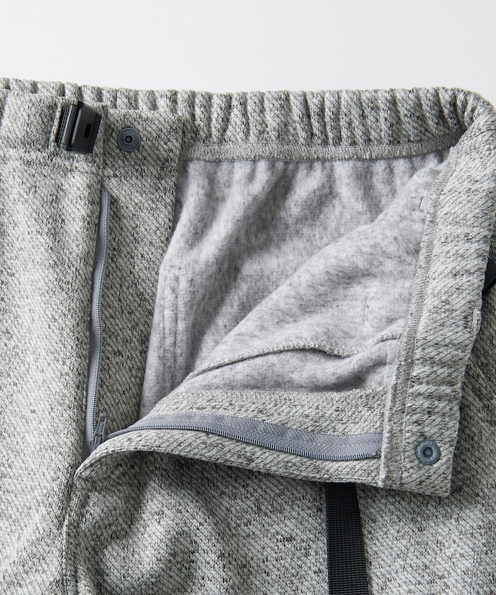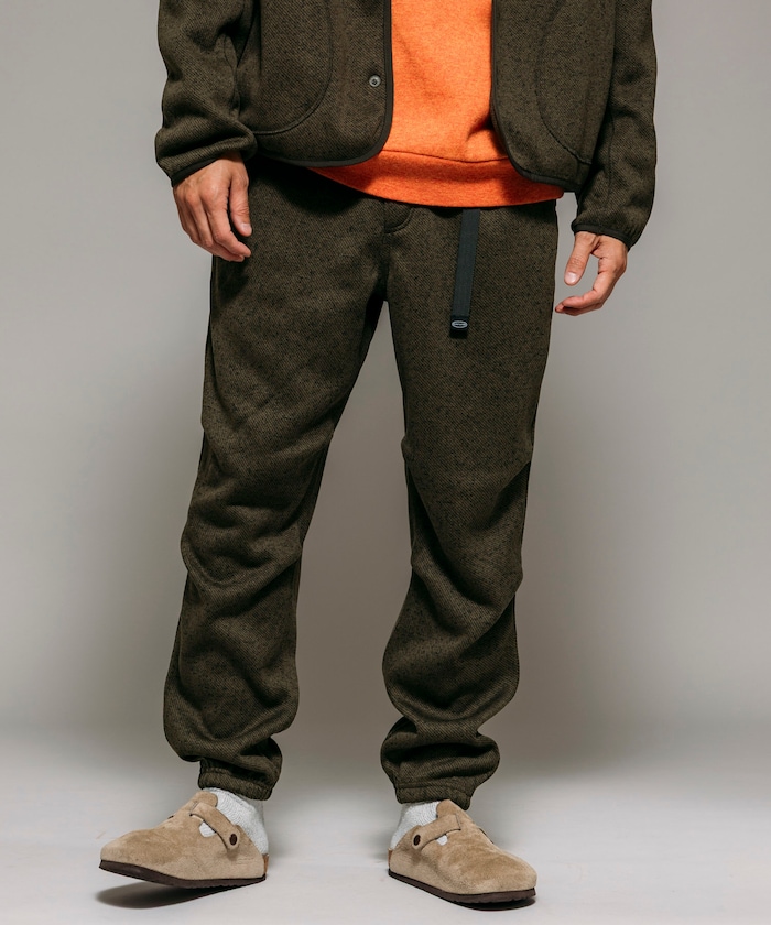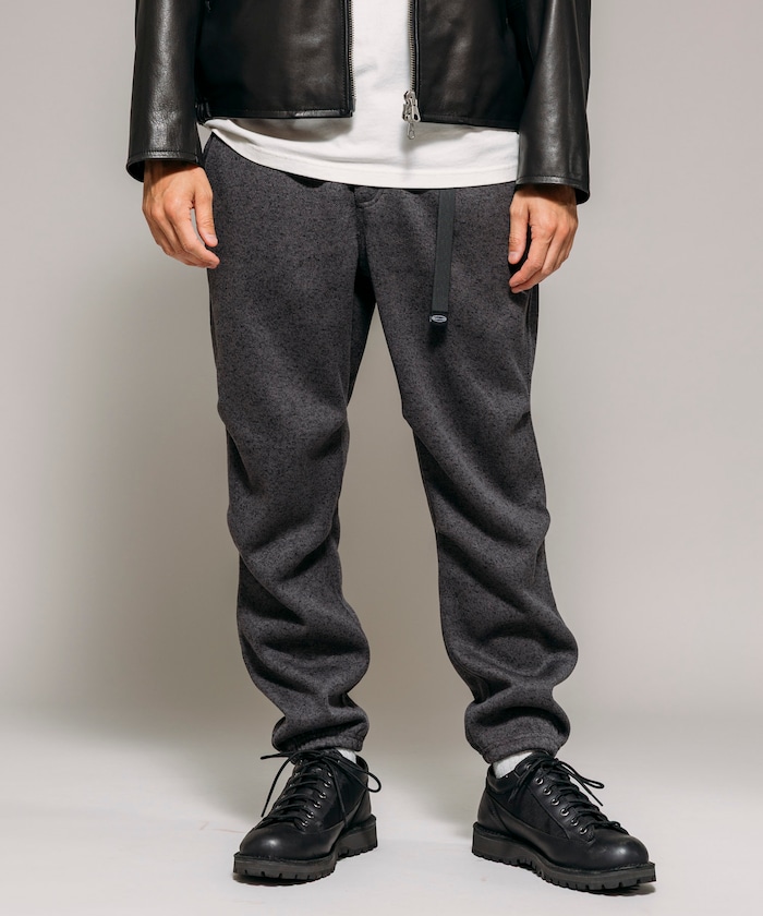 가을·겨울 시즌에 적합한 따뜻하고 부드러운 니트 플리스 소재의 팬츠. 슬림한 실루엣이지만 무릎 주변의 입체 패턴 설계로 활동하기 좋습니다. 전면 지퍼 여밈과 웨이빙 벨트가 있어 착용과 허리 조절이 간편합니다.