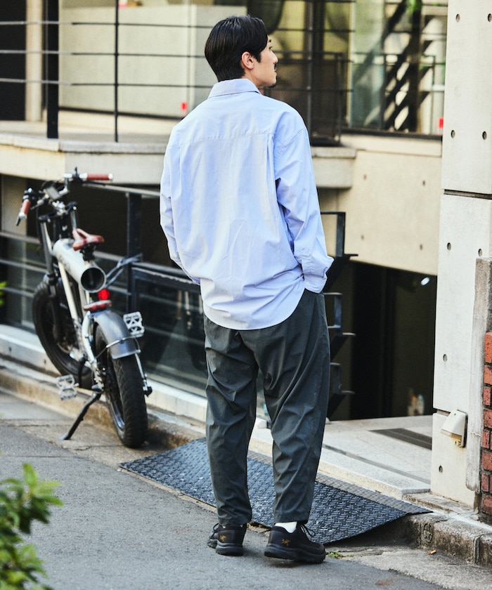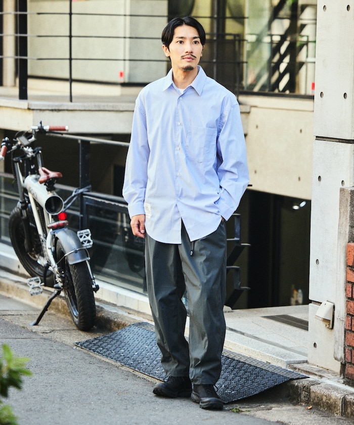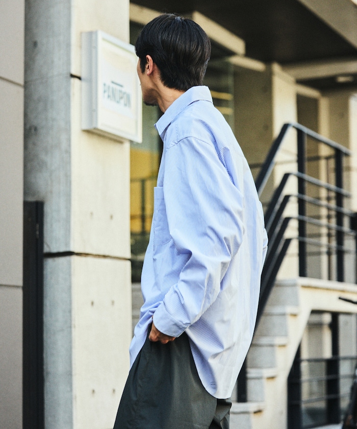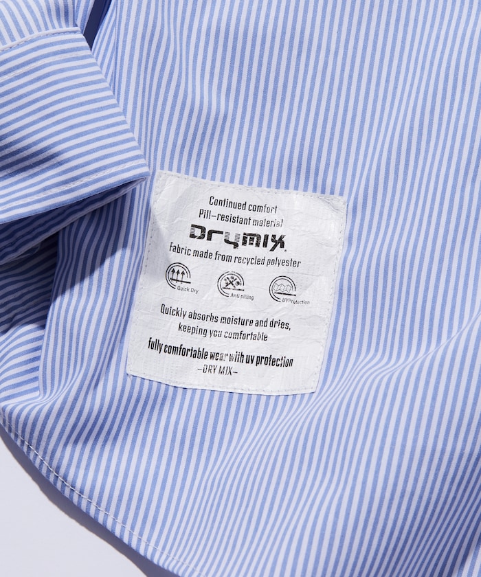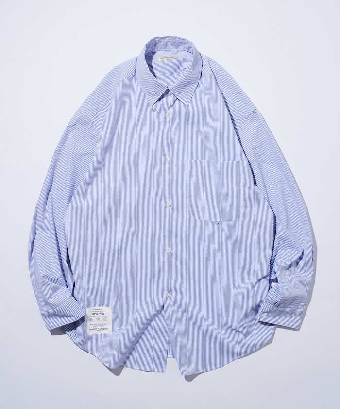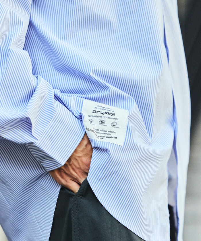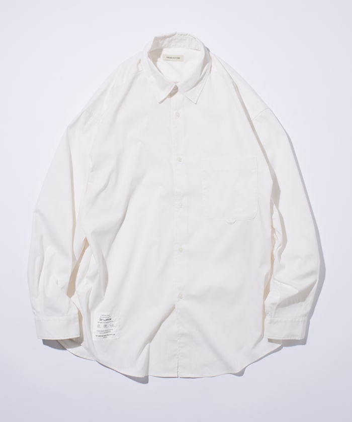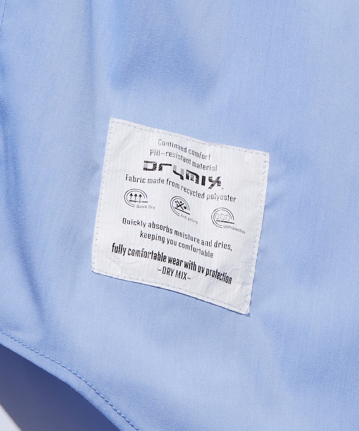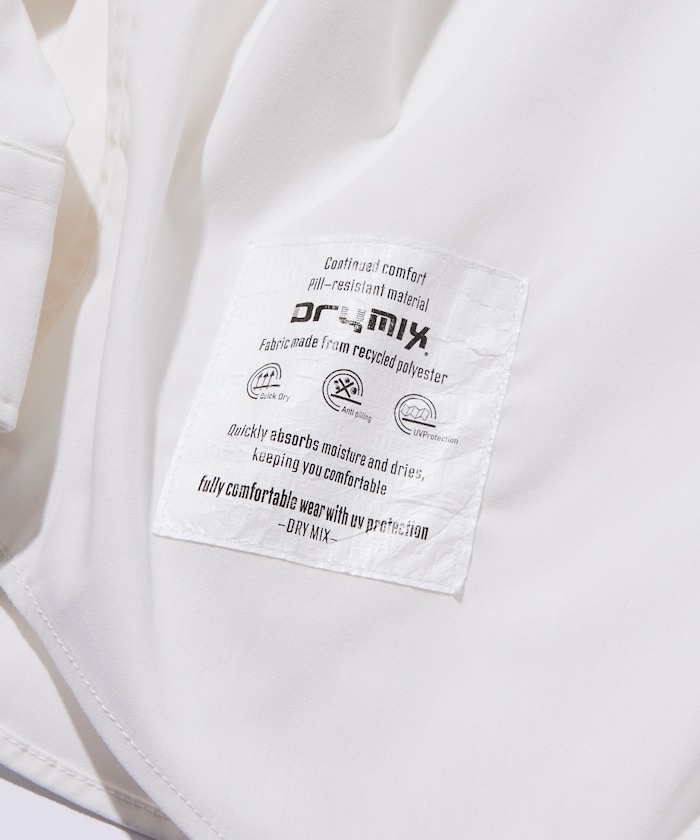 수분을 빠르게 흡수해 상쾌한 착용감을 지속시켜 주는 기능성 소재 드라이믹스를 사용한 셔츠. 오른쪽 밑단에 네임 패치가 있으며 가슴 파치 포켓 하단에 루프 디테일이 있습니다. 오버사이즈 실루엣