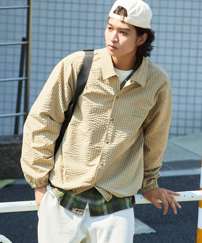 폴리에스테르 시어서커 소재를 사용한 재킷.