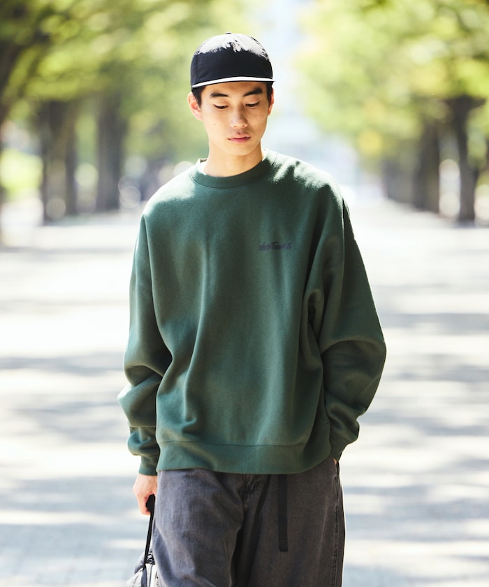 뒷면에 브랜드 로고와 고양이 모티프 패치가 있는 스웨트 티 . 가슴에는 브랜드 로고 포인트가 있습니다. 다양한 스타일에 맞추기 쉬운 적당한 빅 실루엣입니다.