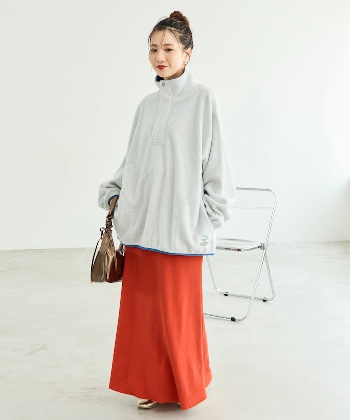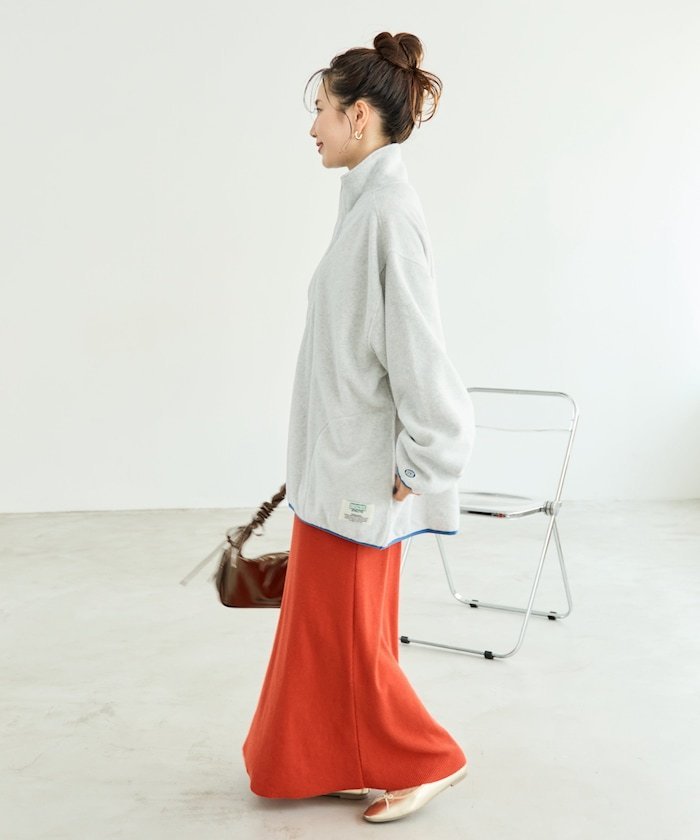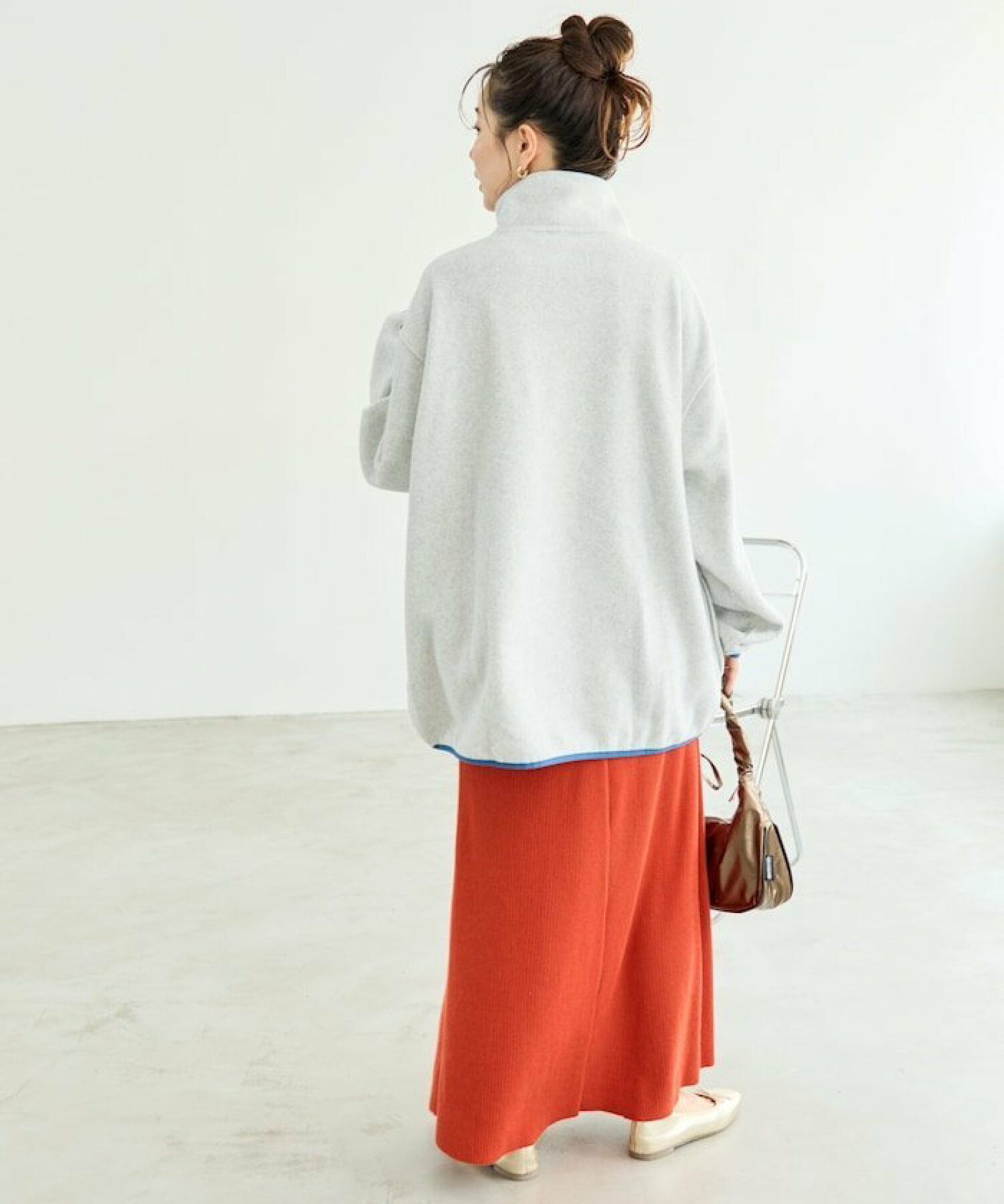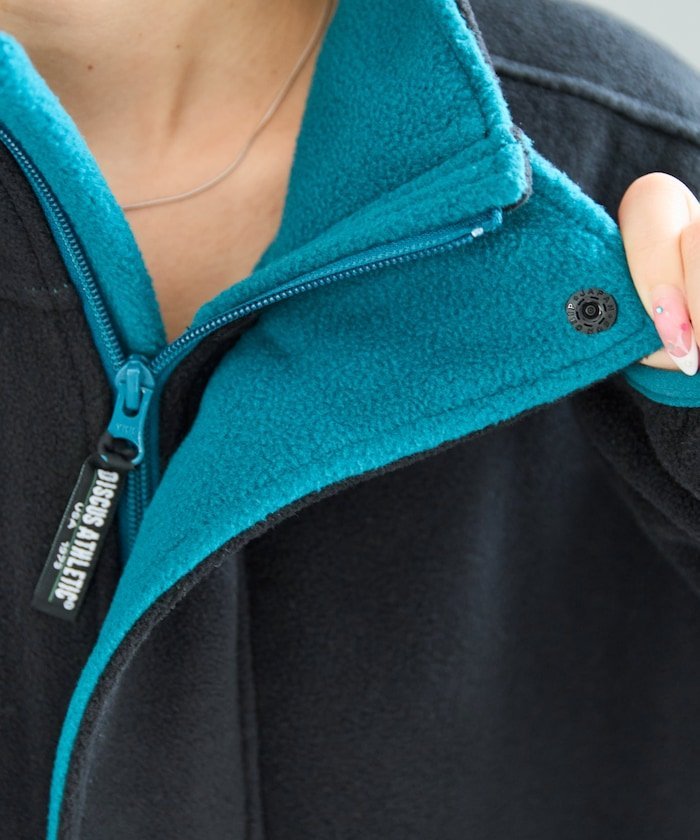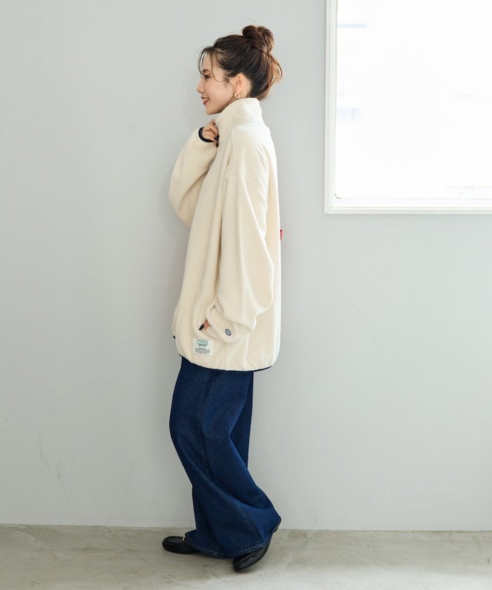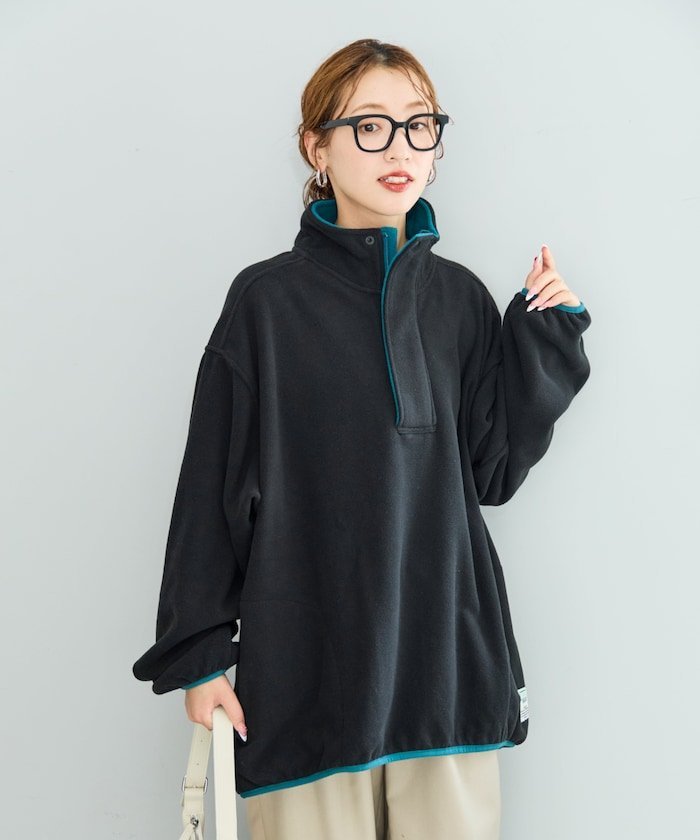 스냅 버튼과 하프 지퍼가 함께 구성되어 취향에 따라 다양한 실루엣 연출이 가능합니다.