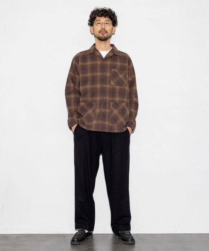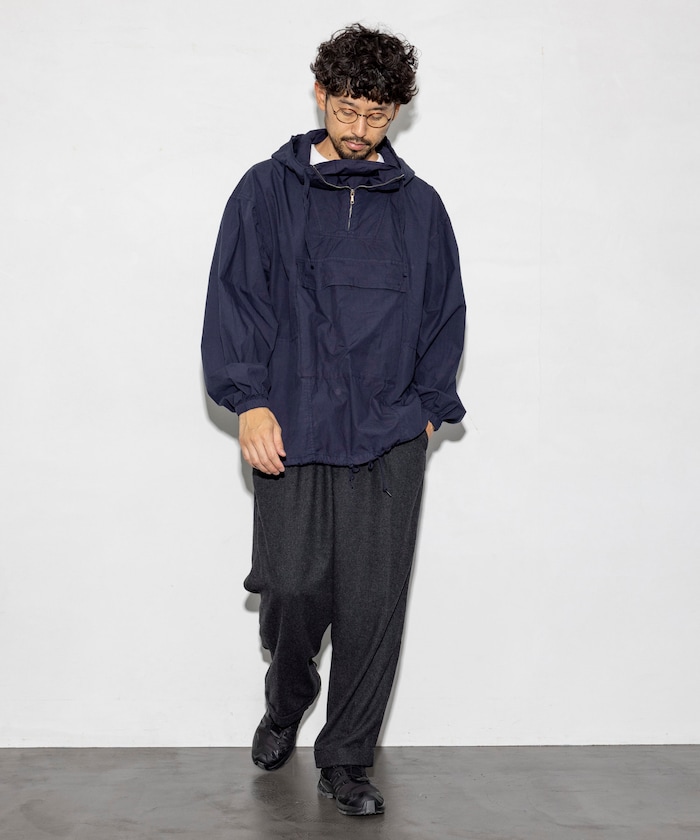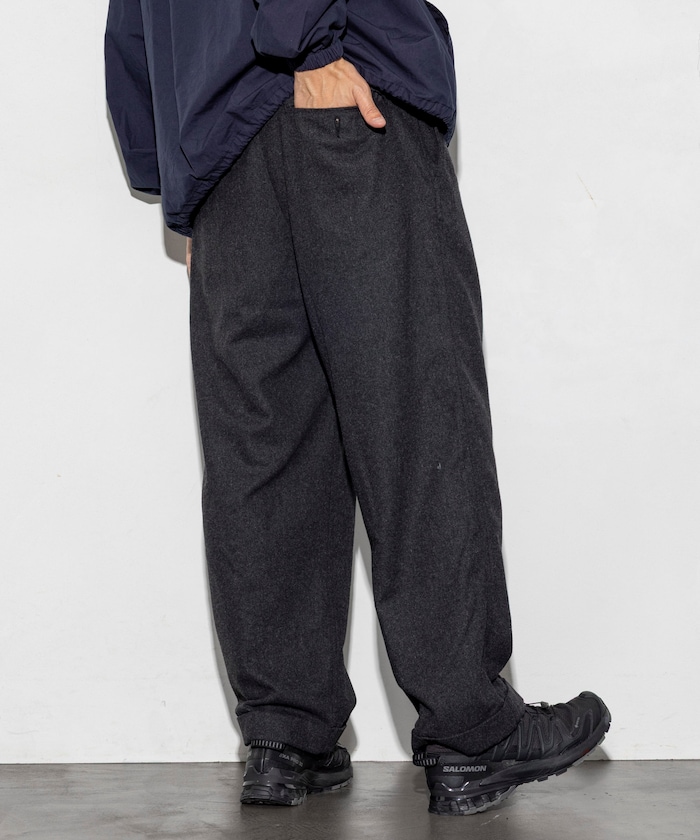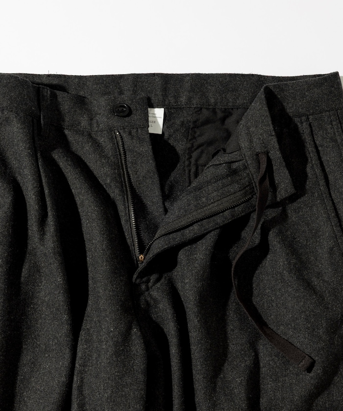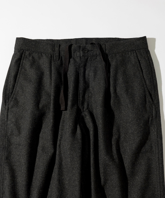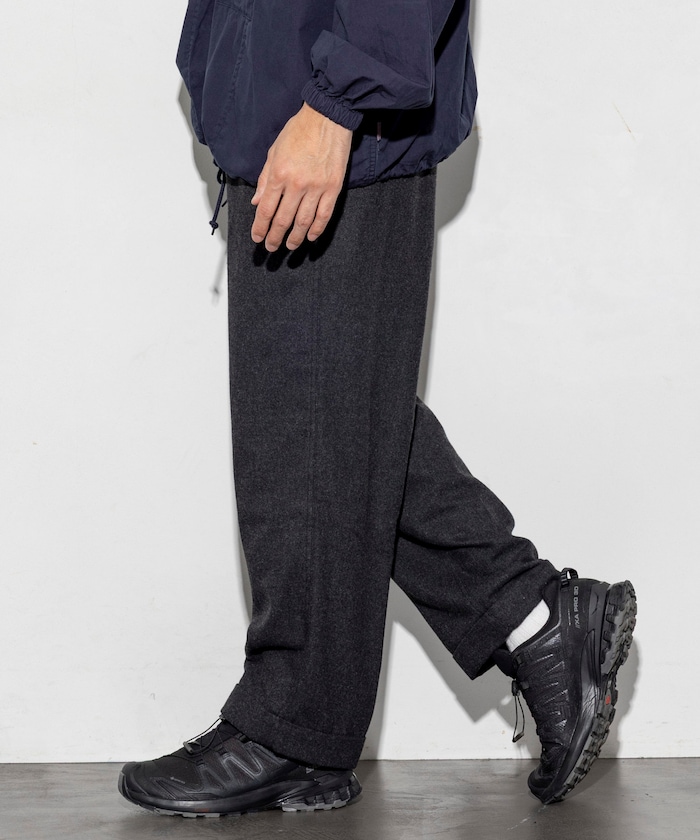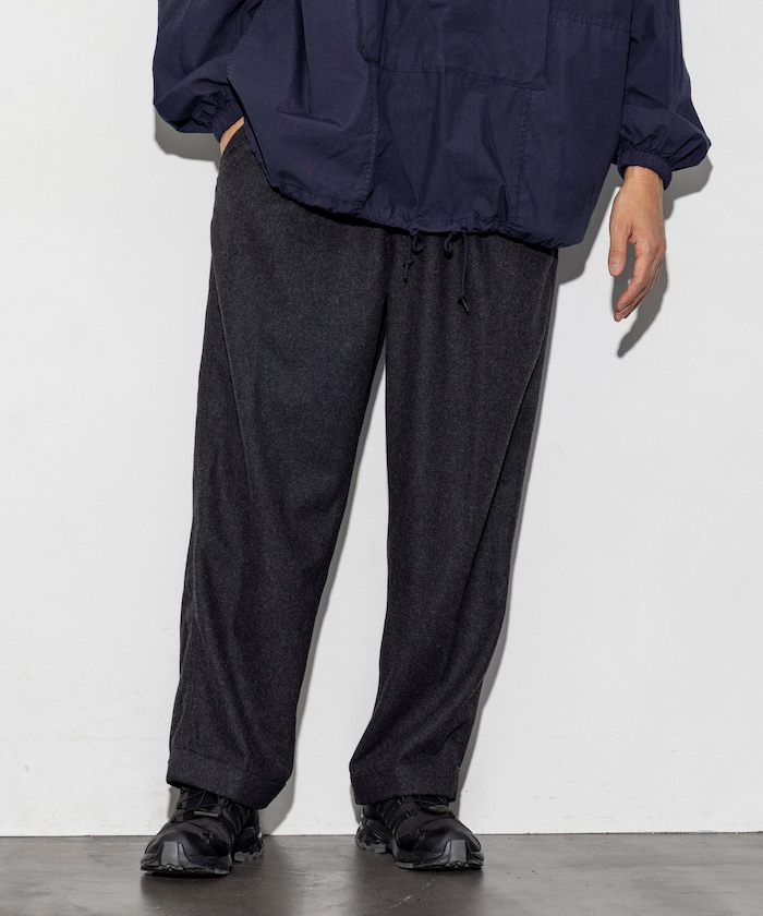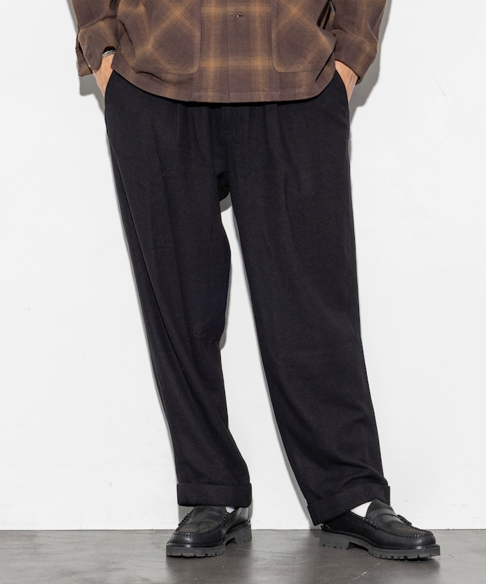 허리에 여유를 준 원턱 디테일이며 밑단으로 갈수록 자연스럽게 좁아지는 테이퍼드 실루엣입니다.