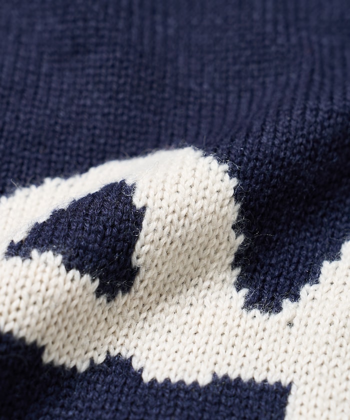 프론트에 큼직한 로고 디자인 을 넣어 포인트를 준 크루넥 니트