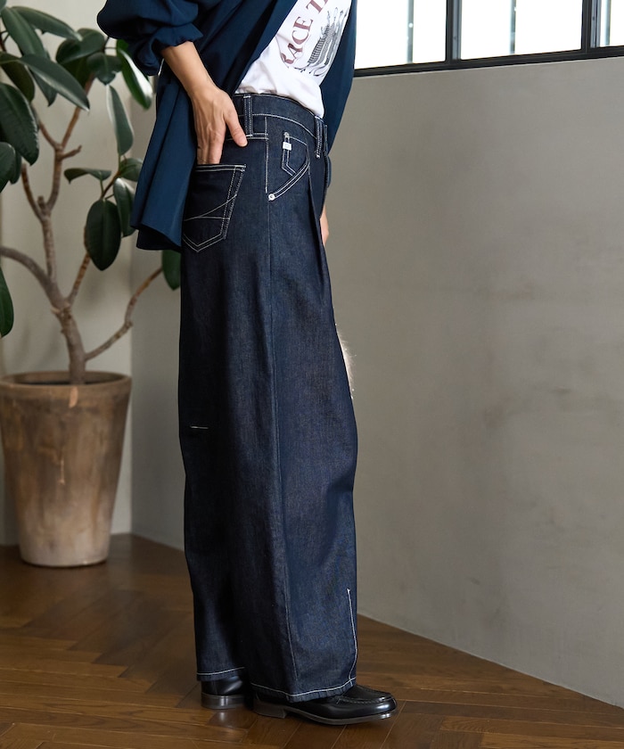 턱 커브 와이드 데님 팬츠