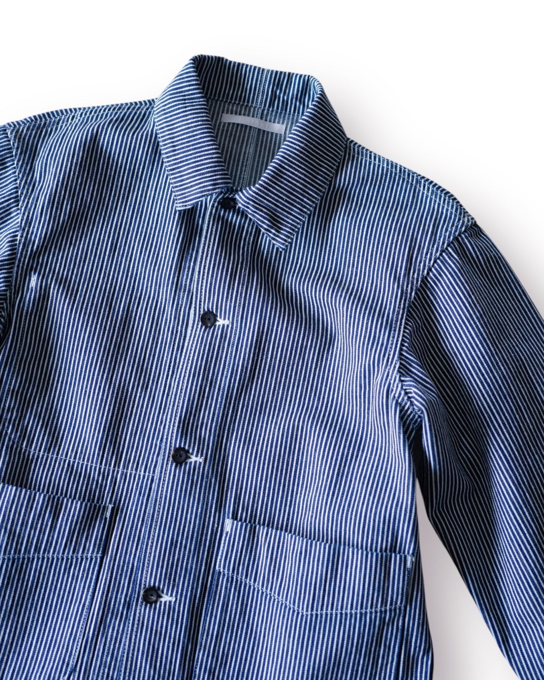 브랜드 오리지널 히코리 헤링본 원단을 사용한 재킷입니다. 프렌치 몰스킨 재킷에 비해 워크웨어 감성을 절제한 심플한 디자인으로 완성되었습니다.