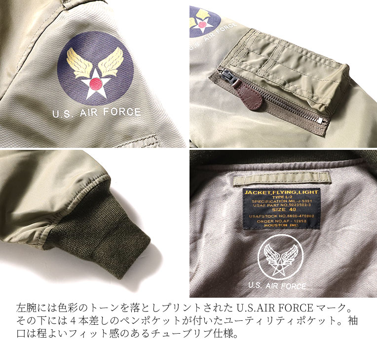 L-2 플라이트 재킷은 기존의 가죽 소재 A-2 플라이트 재킷의 후계 모델로서, 약 1945년경에 등장한 가벼운 경량 존(10~30℃)용 재킷입니다. 그 뛰어난 가벼움과 활동성 덕분에 당시 많은 파일럿들에게 사랑받았던 재킷을 기반으로, HOUSTON이 이를 현대적으로 재구성했습니다.