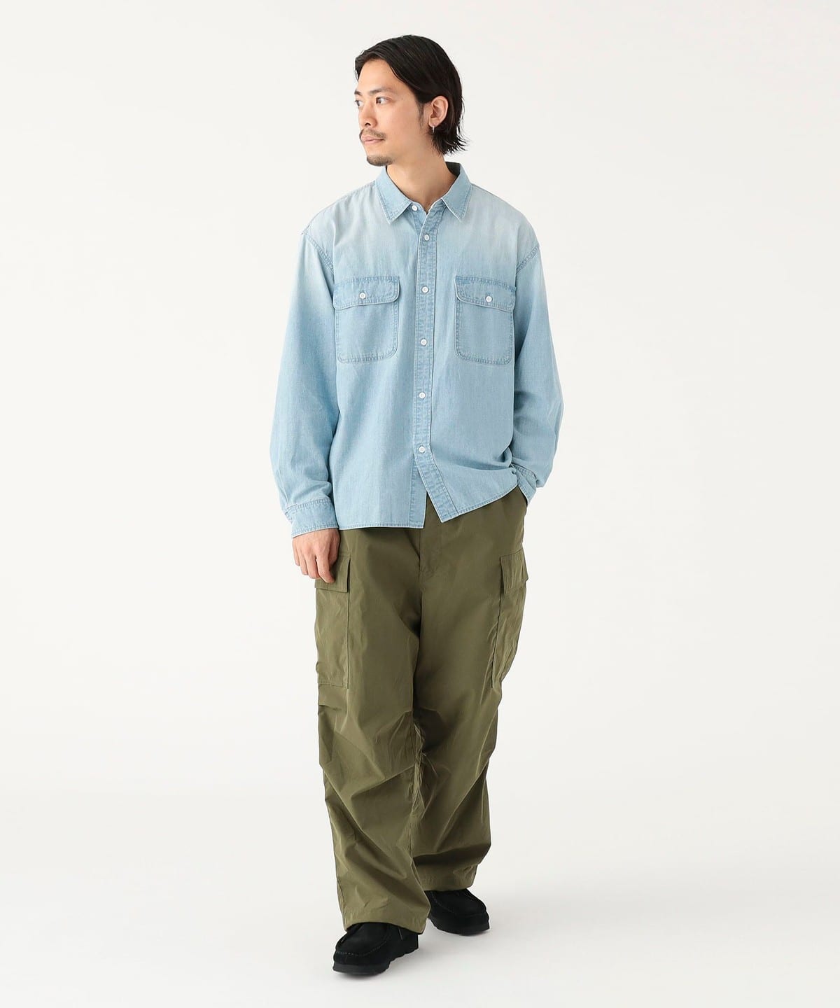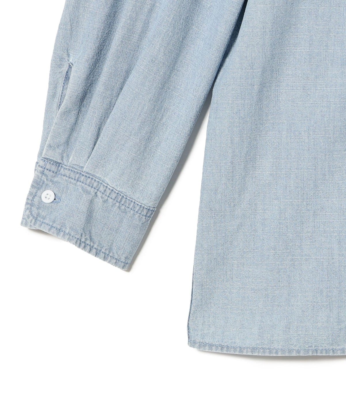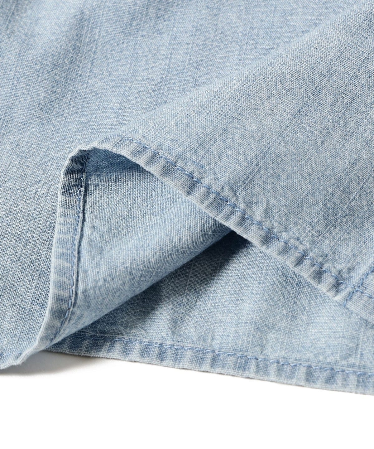 - 자연스러운 색바램 과 마모감을 표현한, 샴브레이 코튼 셔츠