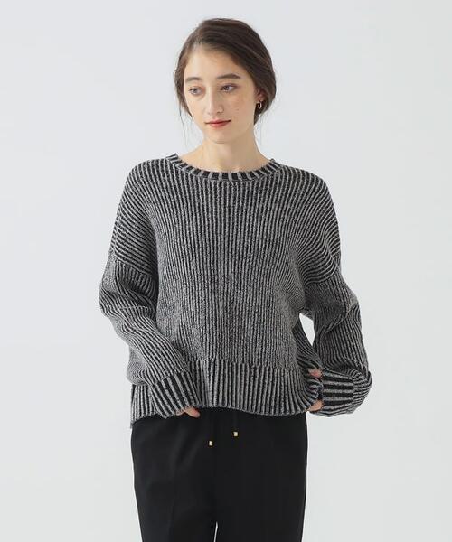 서로 다른 두 가닥의 실을 섞어 짠 멜란지 니트로, 은은한 색감과 깊이감 있는 질감을 느낄 수 있습니다.