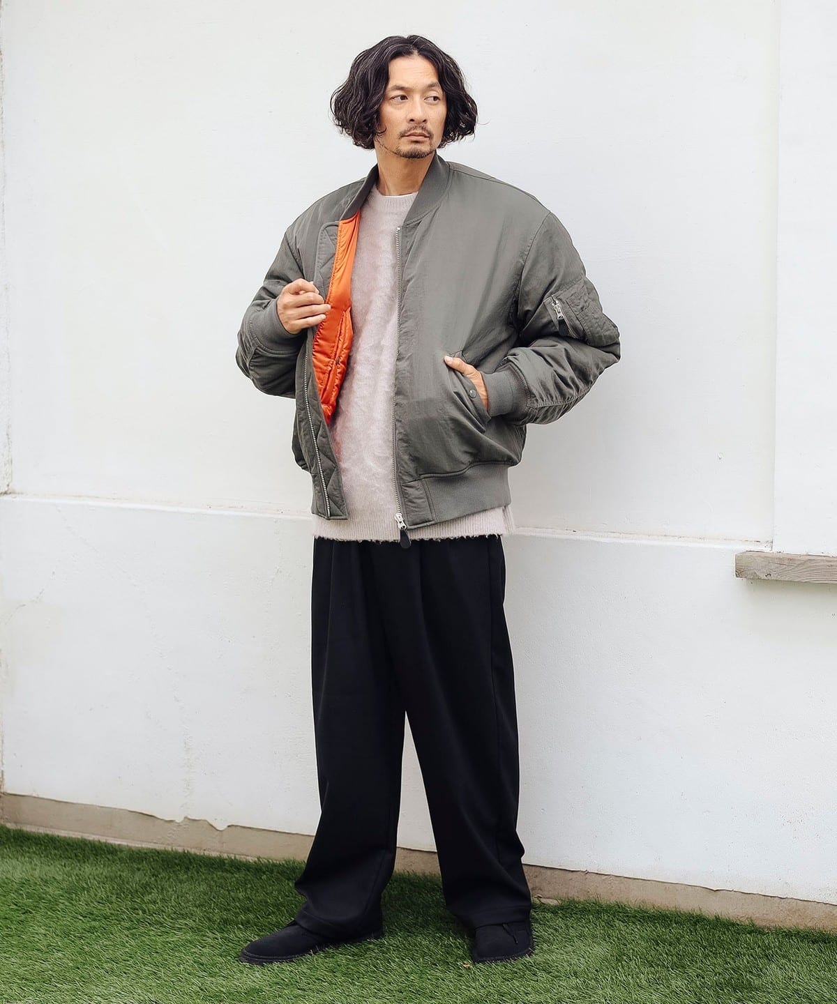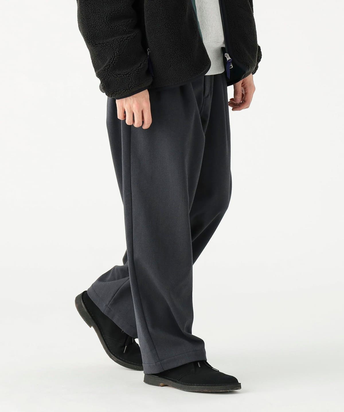 겉면은 플랫하고 깔끔한 인상의 소재를 사용했으며, 안쪽에는 촉감이 부드러운 기모 플리스 소재를 본딩 처리해 보온성이 우수한 와이드 팬츠입니다.