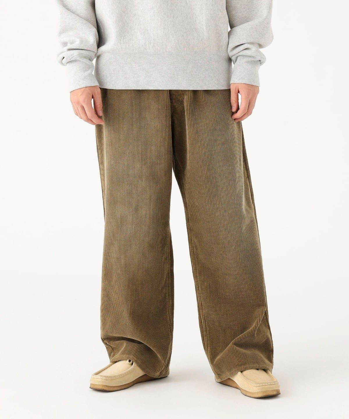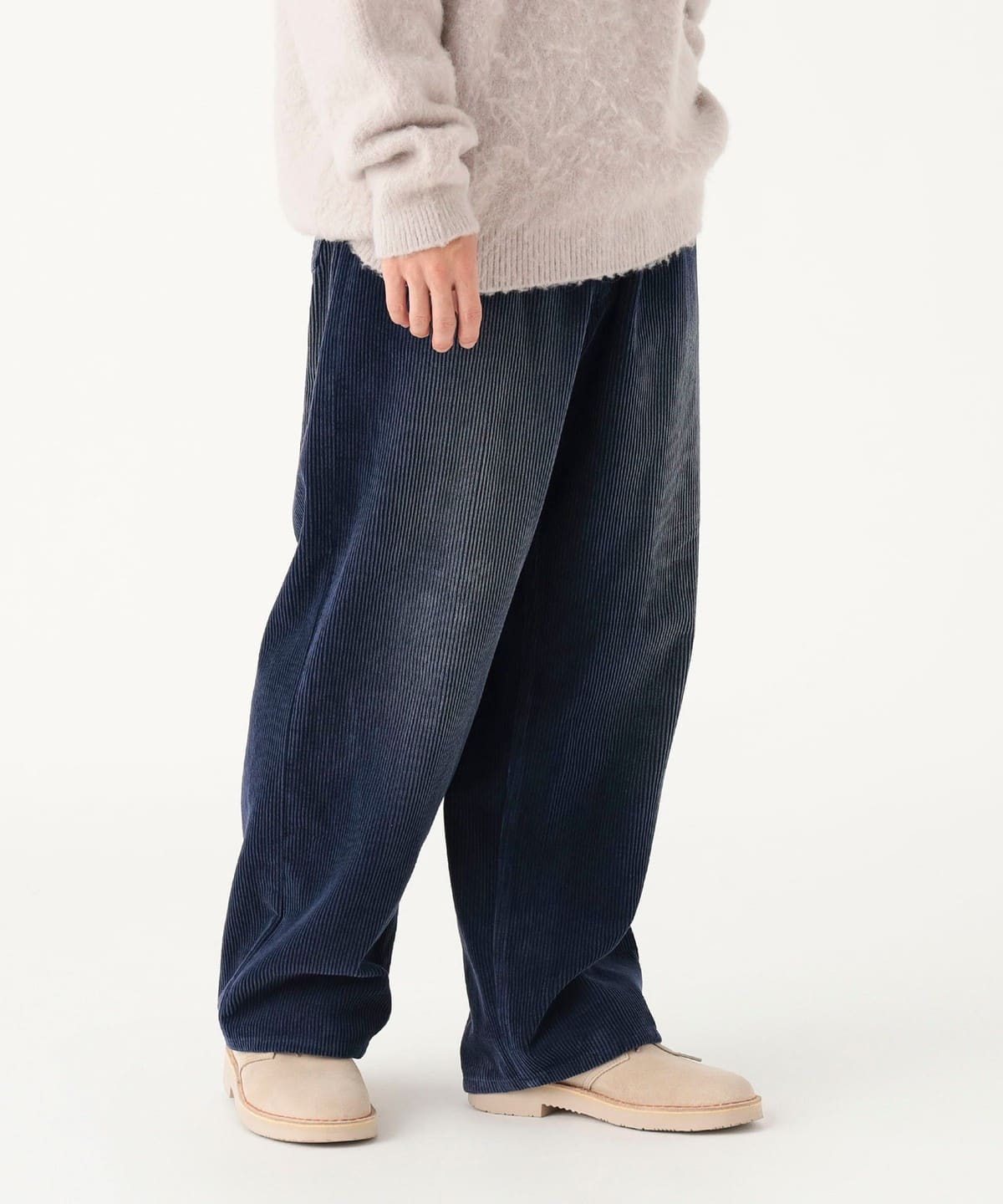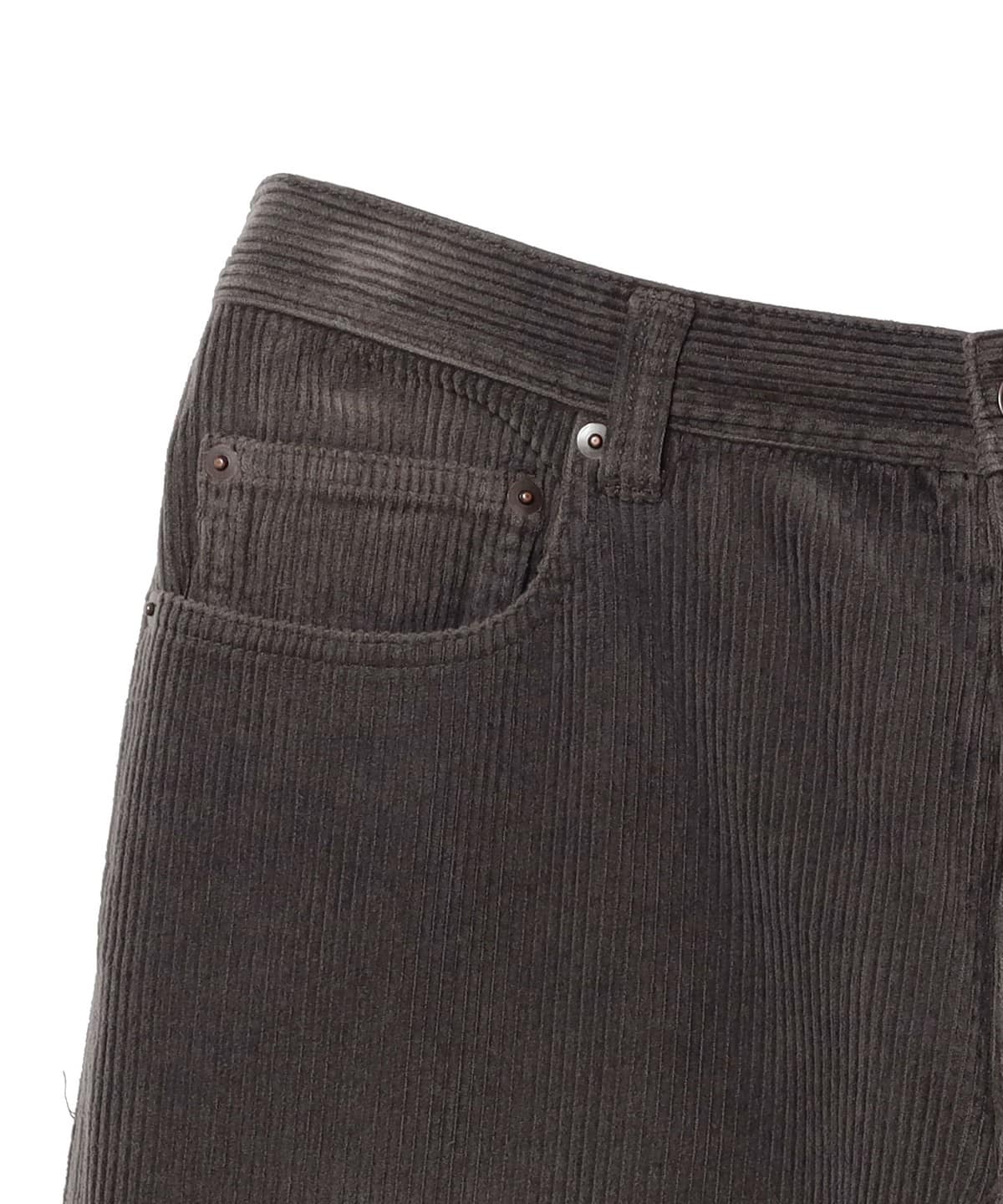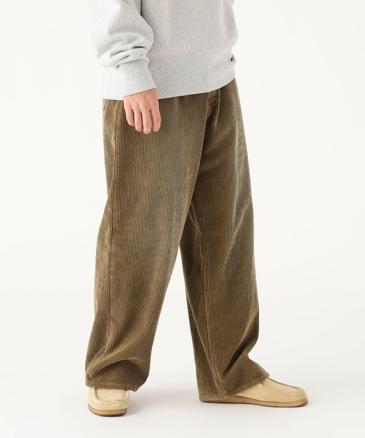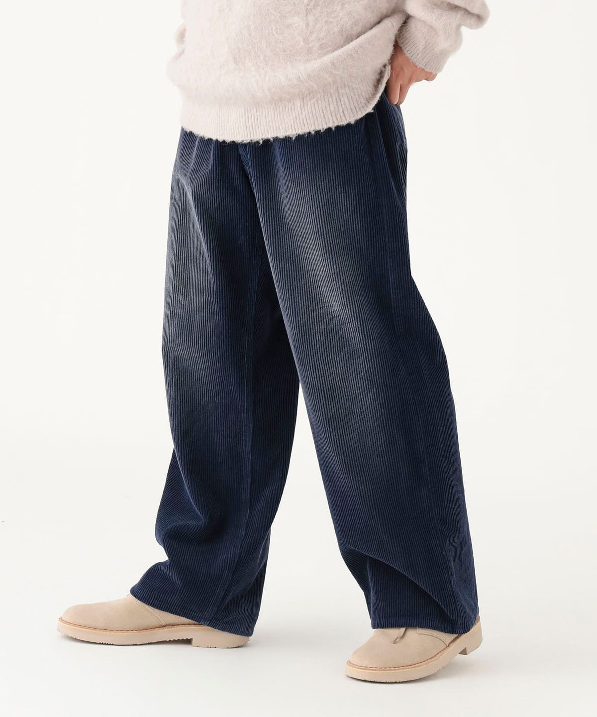 굵은 골의 8웰 코듀로이를 사용한 존재감 있는 와이드 팬츠