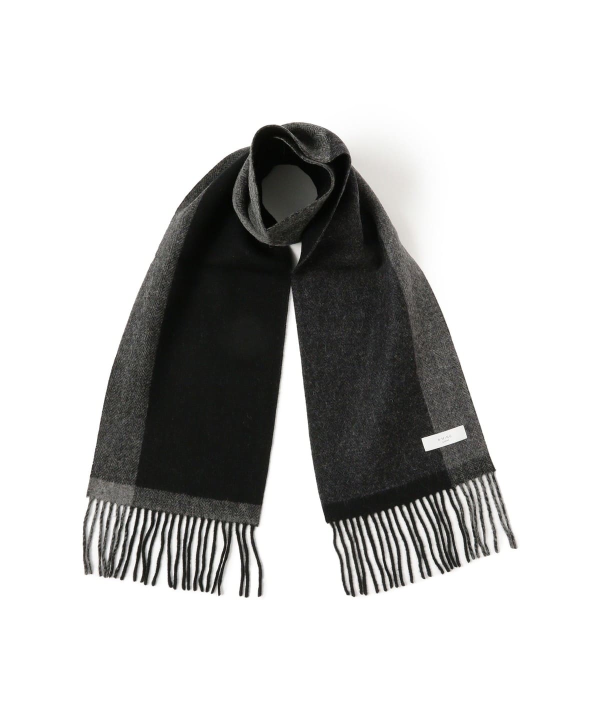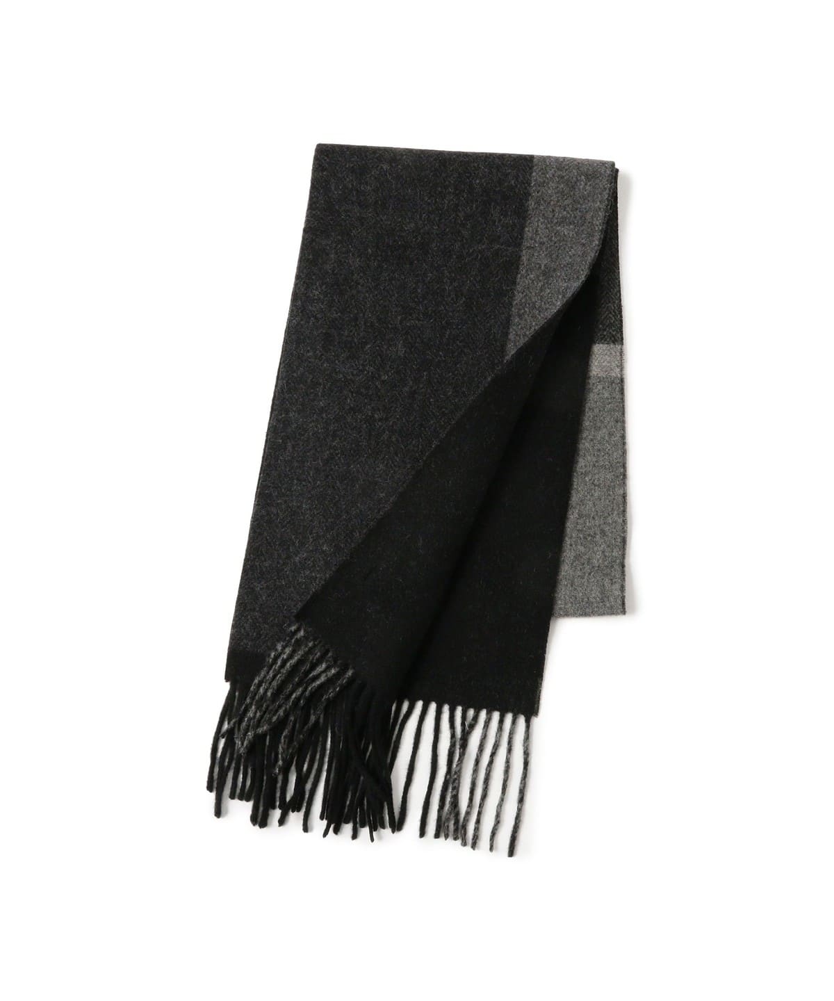 불규칙한 패널 패턴의 울 머플러. 착용하는 방식에 따라 서로 다른 패턴으로 연출이 가능합니다.